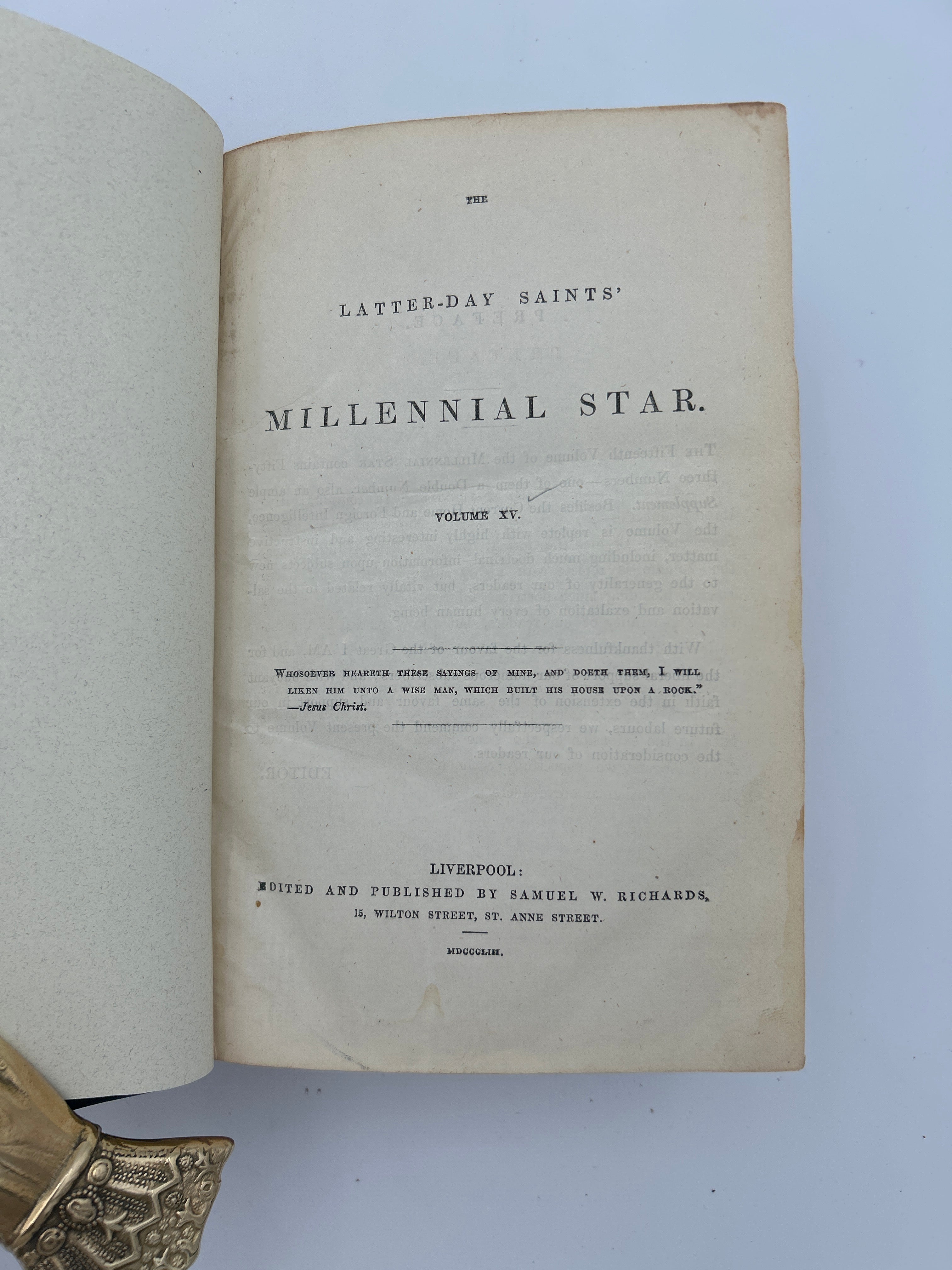 The Millennial Star Volume 15, published in 1853, is a significant historical publication of The Church of Jesus Christ of Latter-day Saints (LDS Church). As one of the church's earliest periodicals, it served as a vital communication tool for the church, especially for its members in Europe. Edited in Liverpool, England, this volume contains doctrinal teachings, church news, missionary reports, and responses to critics. It reflects the church's efforts to consolidate its beliefs and expand its influence during a period of rapid growth and migration to Utah.