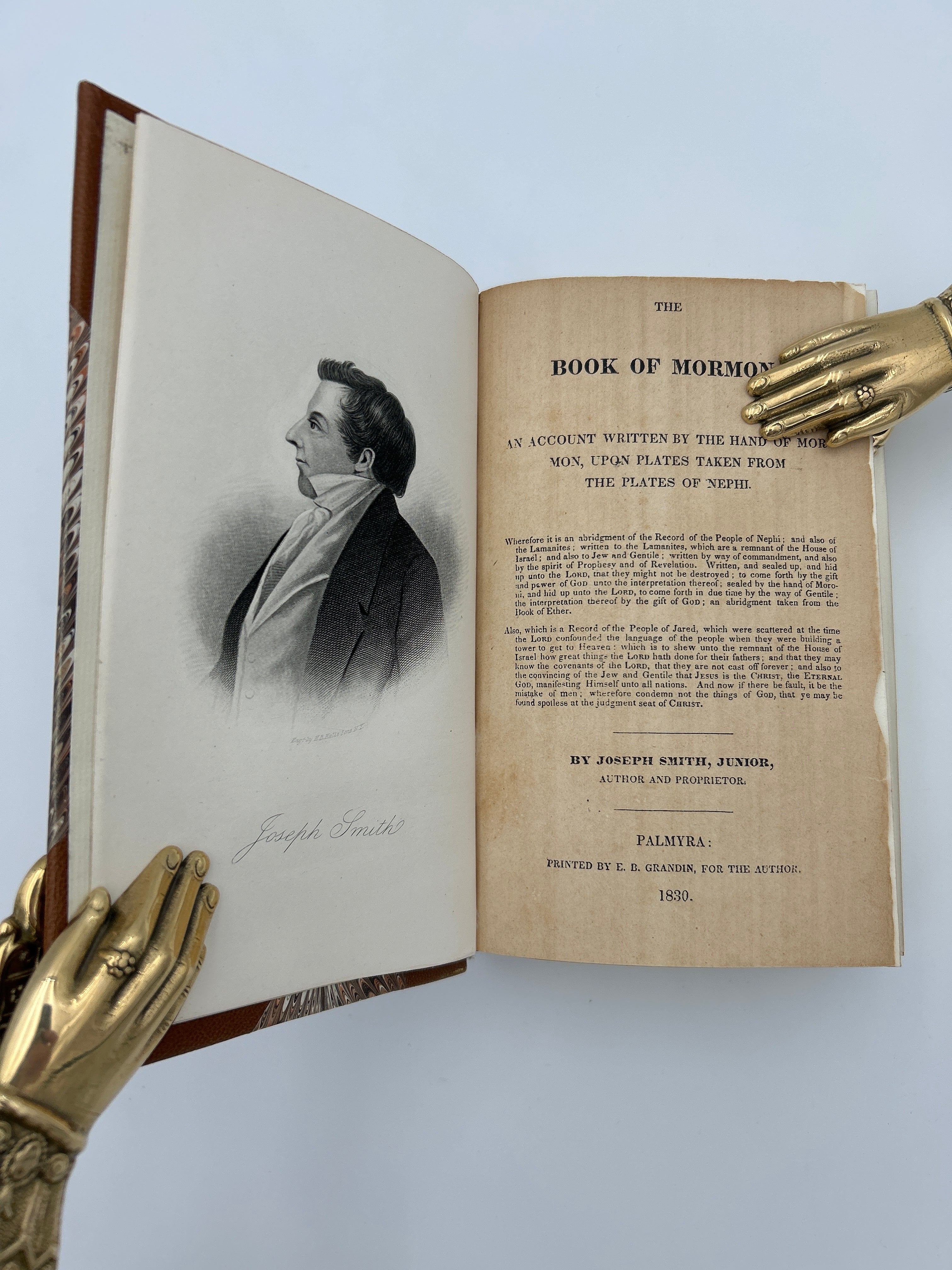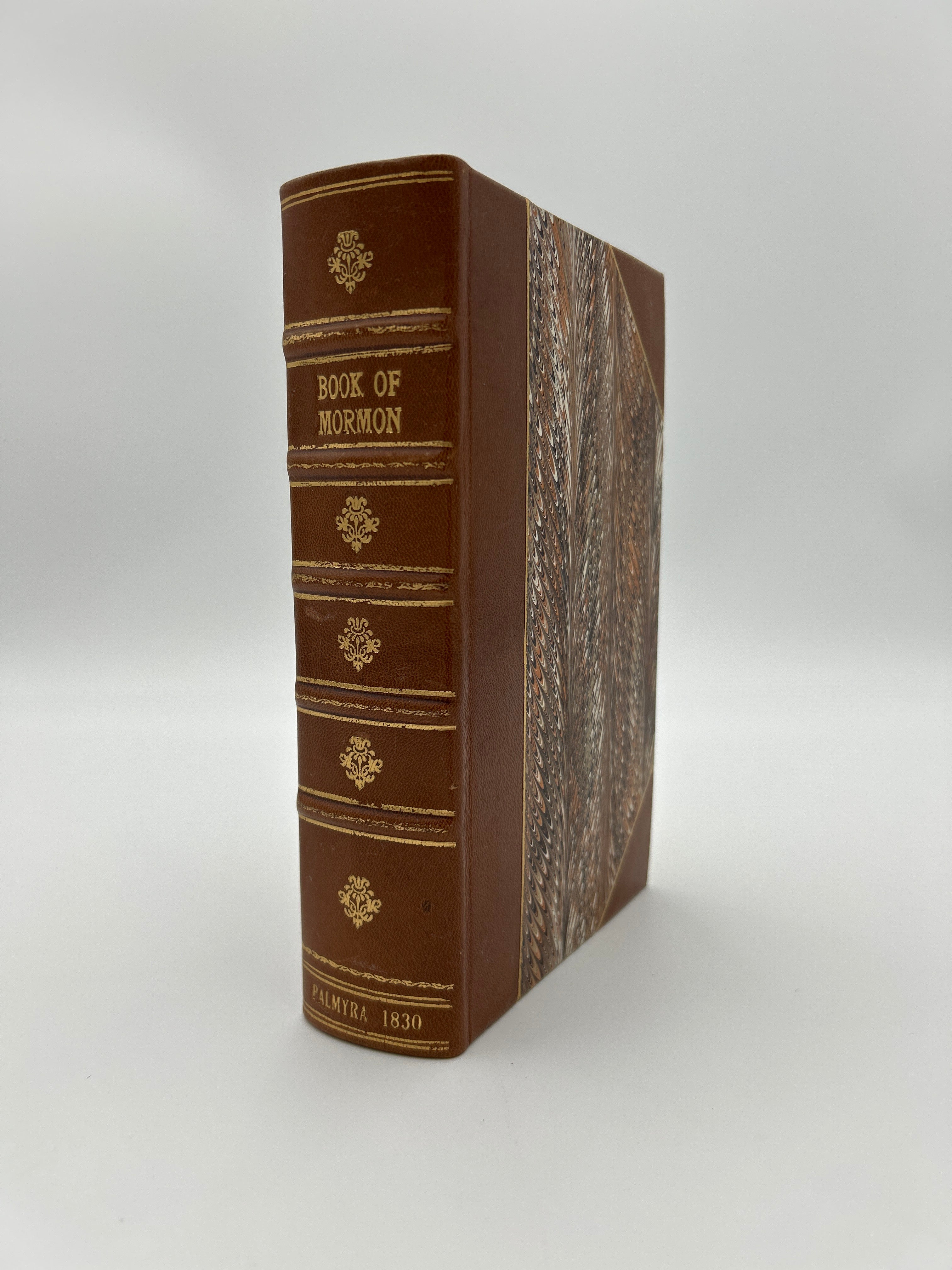 This is a replica of the first edition of the Book of Mormon that was published in March 1830 in Palmyra, New York. The First Edition, often referred to as the "1830 edition," consisted of 5,000 copies printed by E.B. Grandin. Joseph Smith, the founder of The Church of Jesus Christ of Latter-day Saints, translated the text from gold plates that were delivered to him by an angel named Moroni. The first edition is a single volume and differs in format from later editions, including minor grammatical and typographical corrections made in subsequent printings. Today, surviving copies of the 1830 edition are rare and highly valuable, treasured as significant historical and religious artifacts.