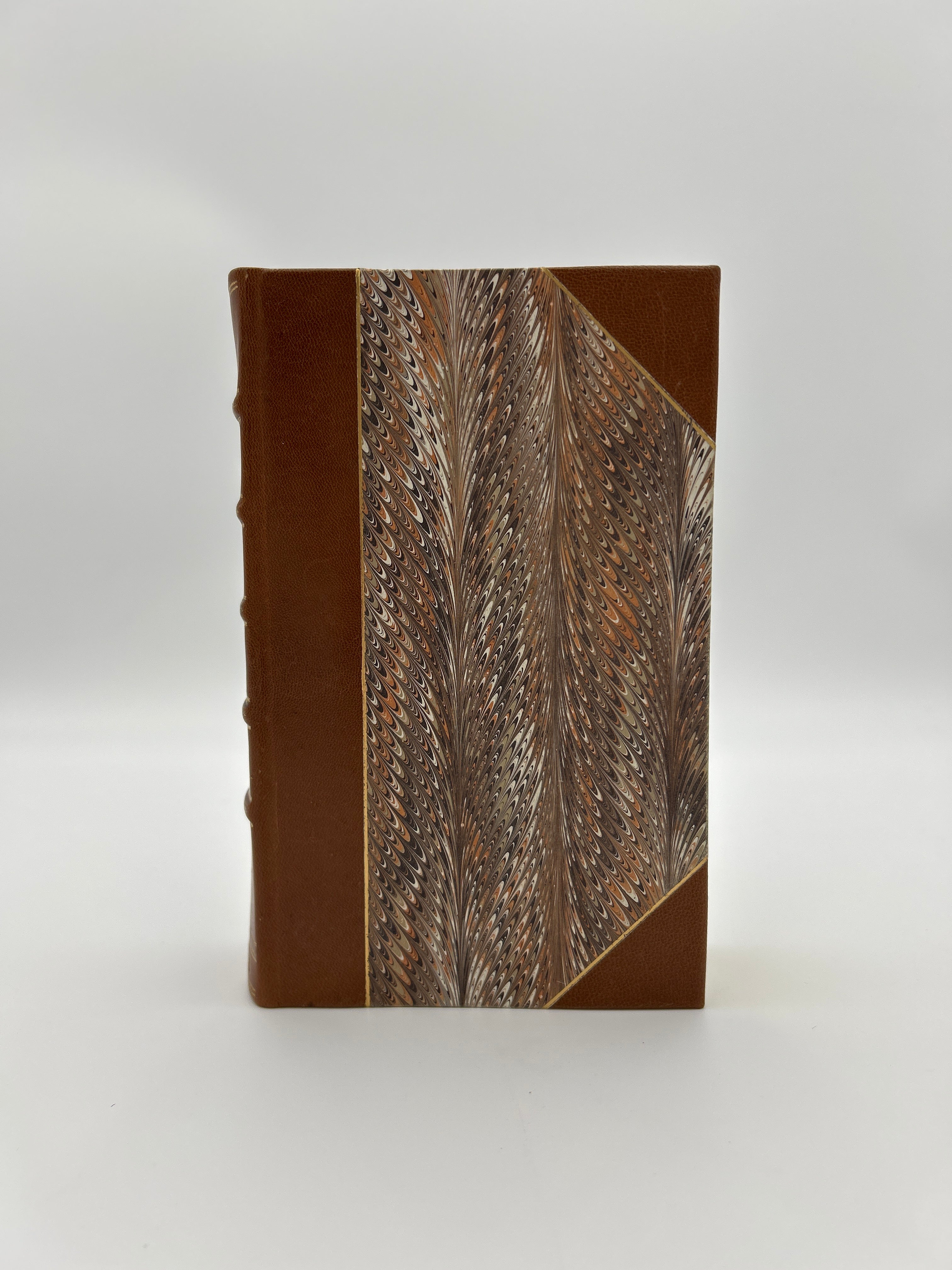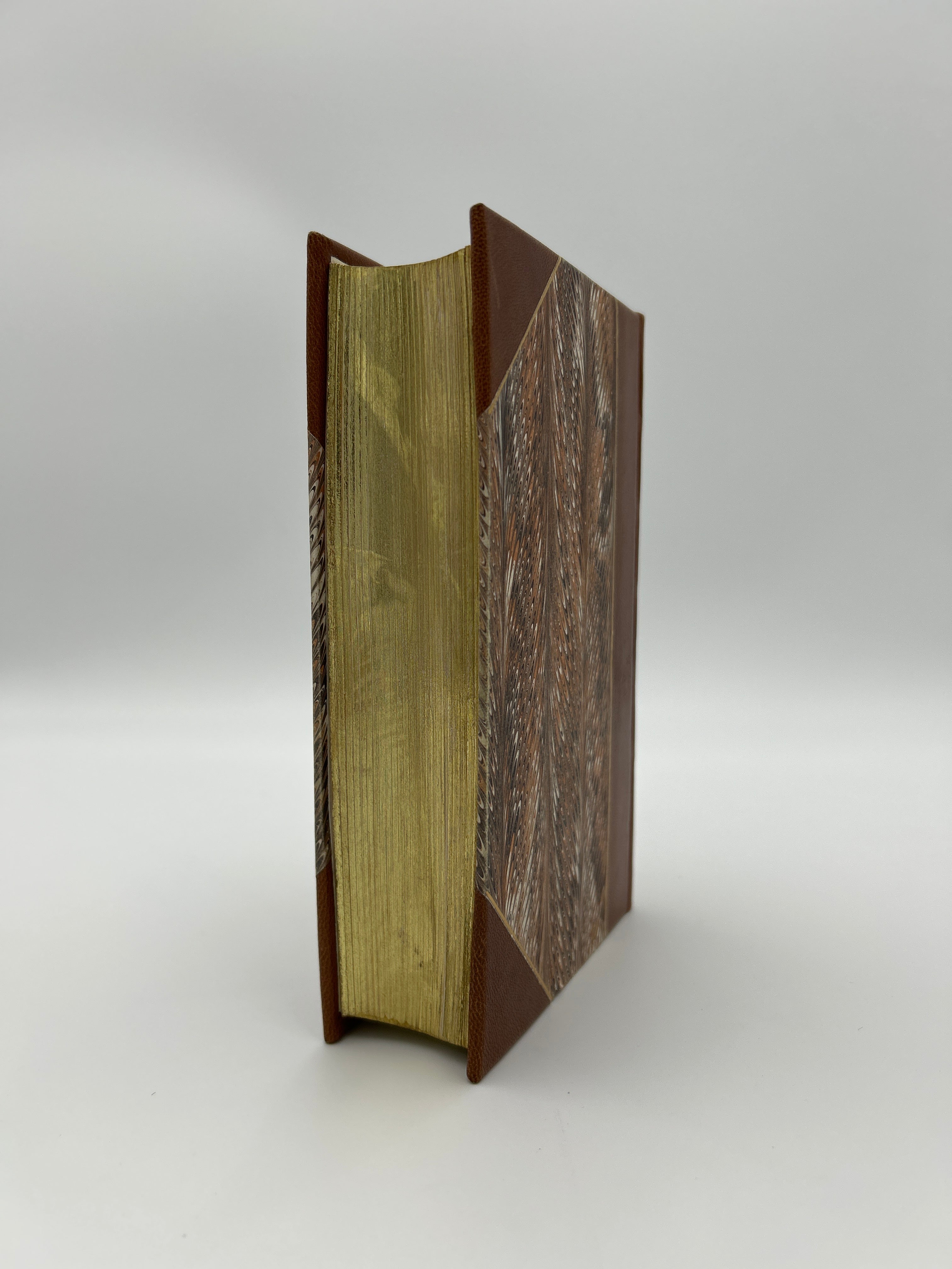 3/4 leather binding with marble front and back boards. gilded edges, very good condition