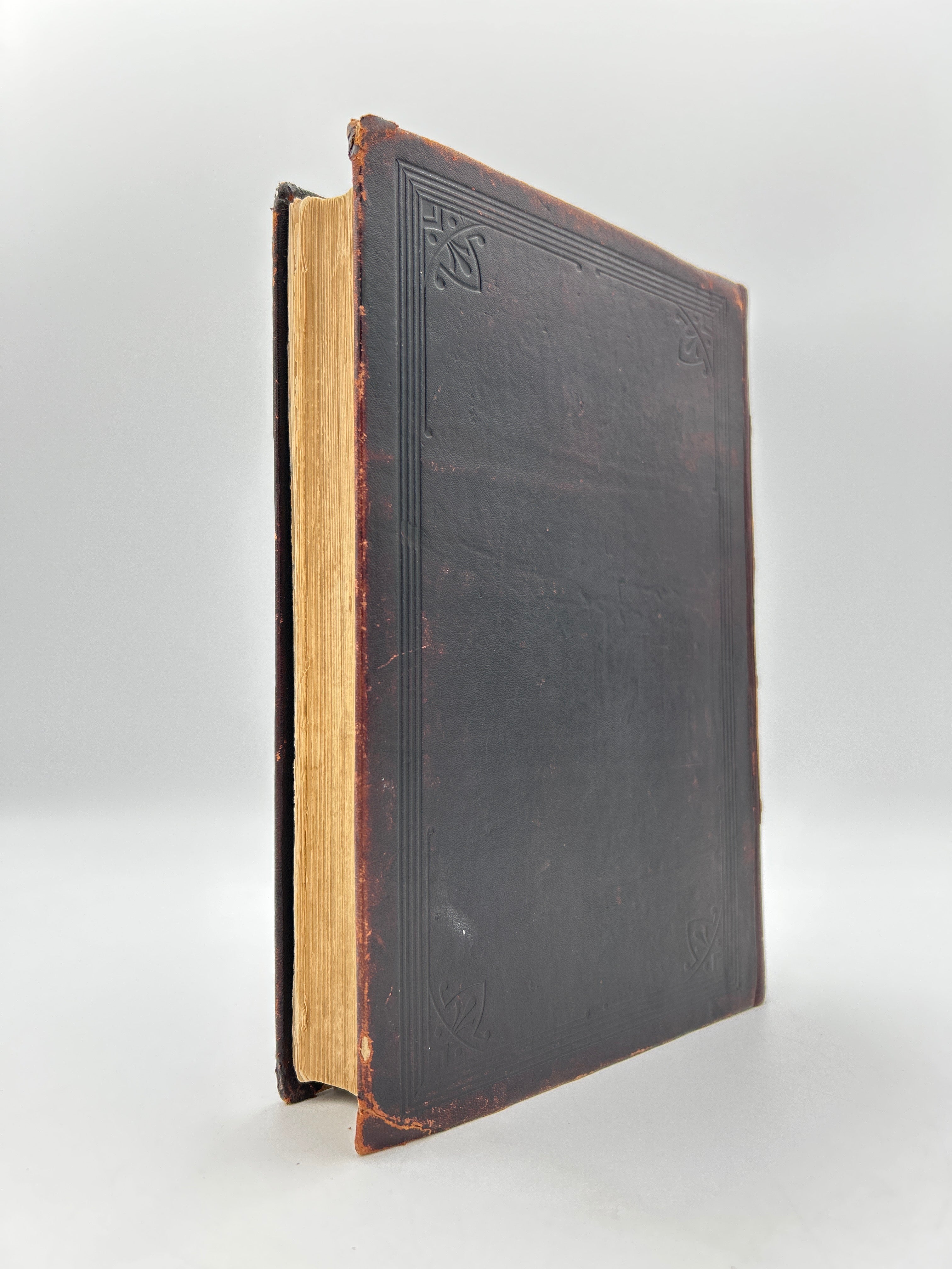 Brown leather hardback with gold title tooling on front and spine, considered "pulpit edition", intact, a little rubbing on upper and lower edges of front and back covers and raised bands on spine, otherwise good condition.