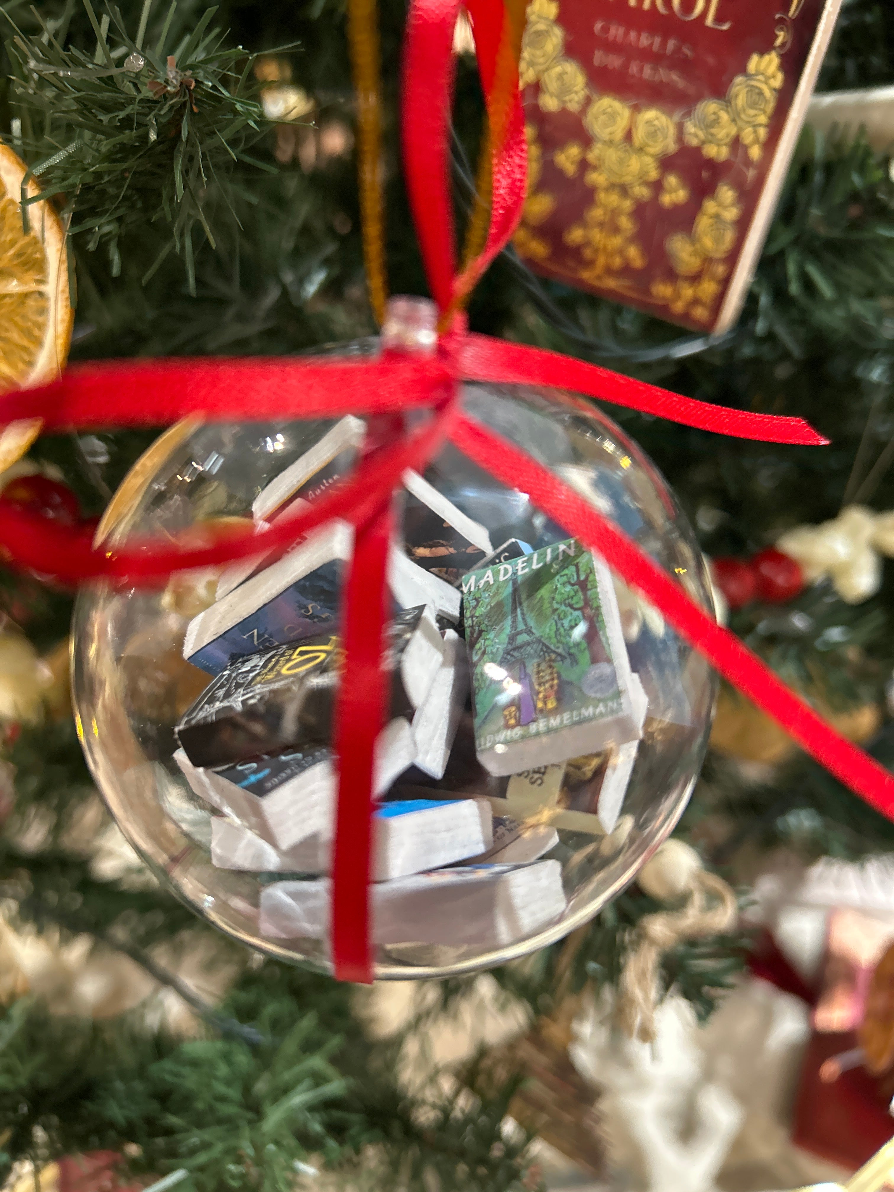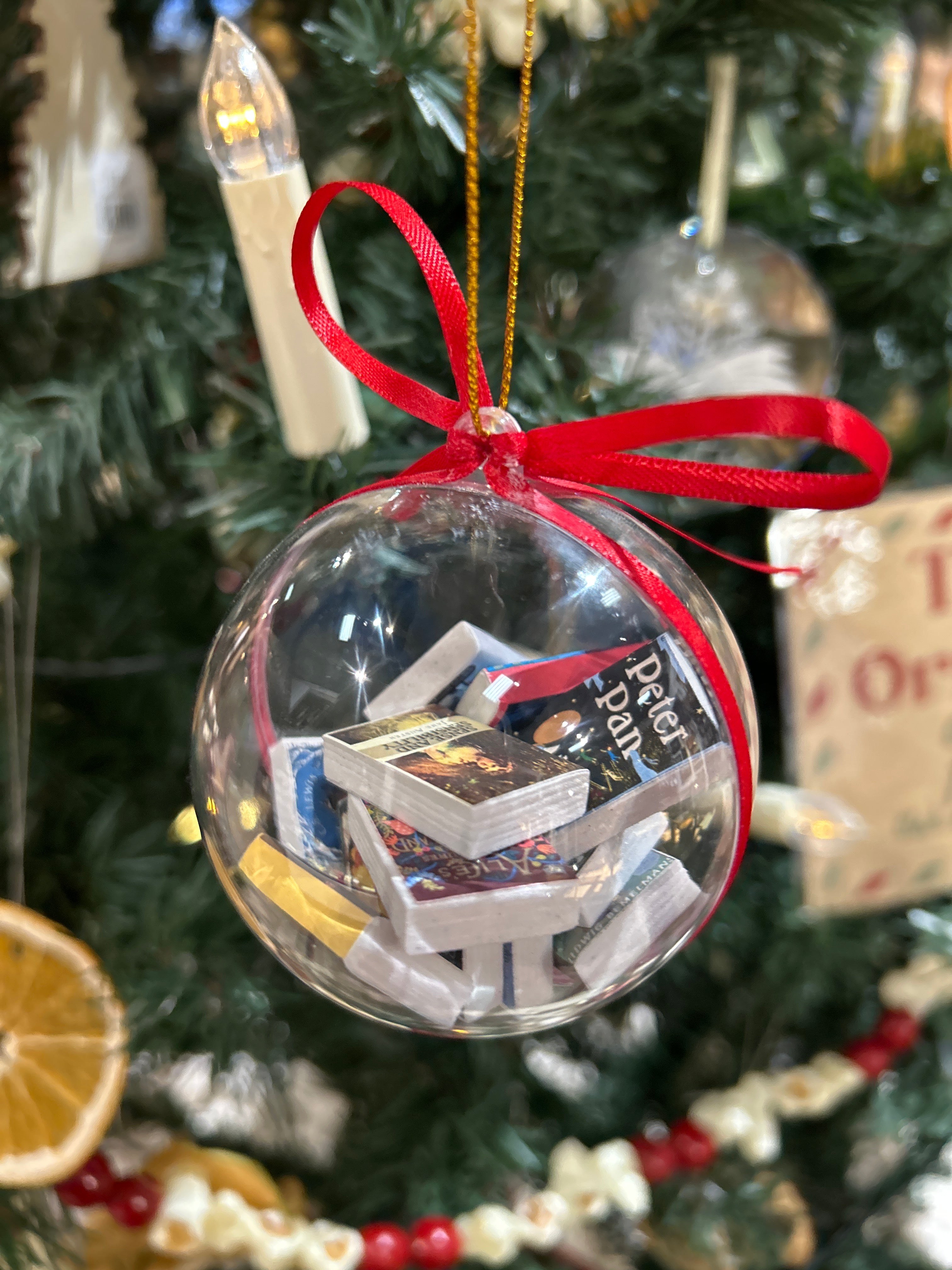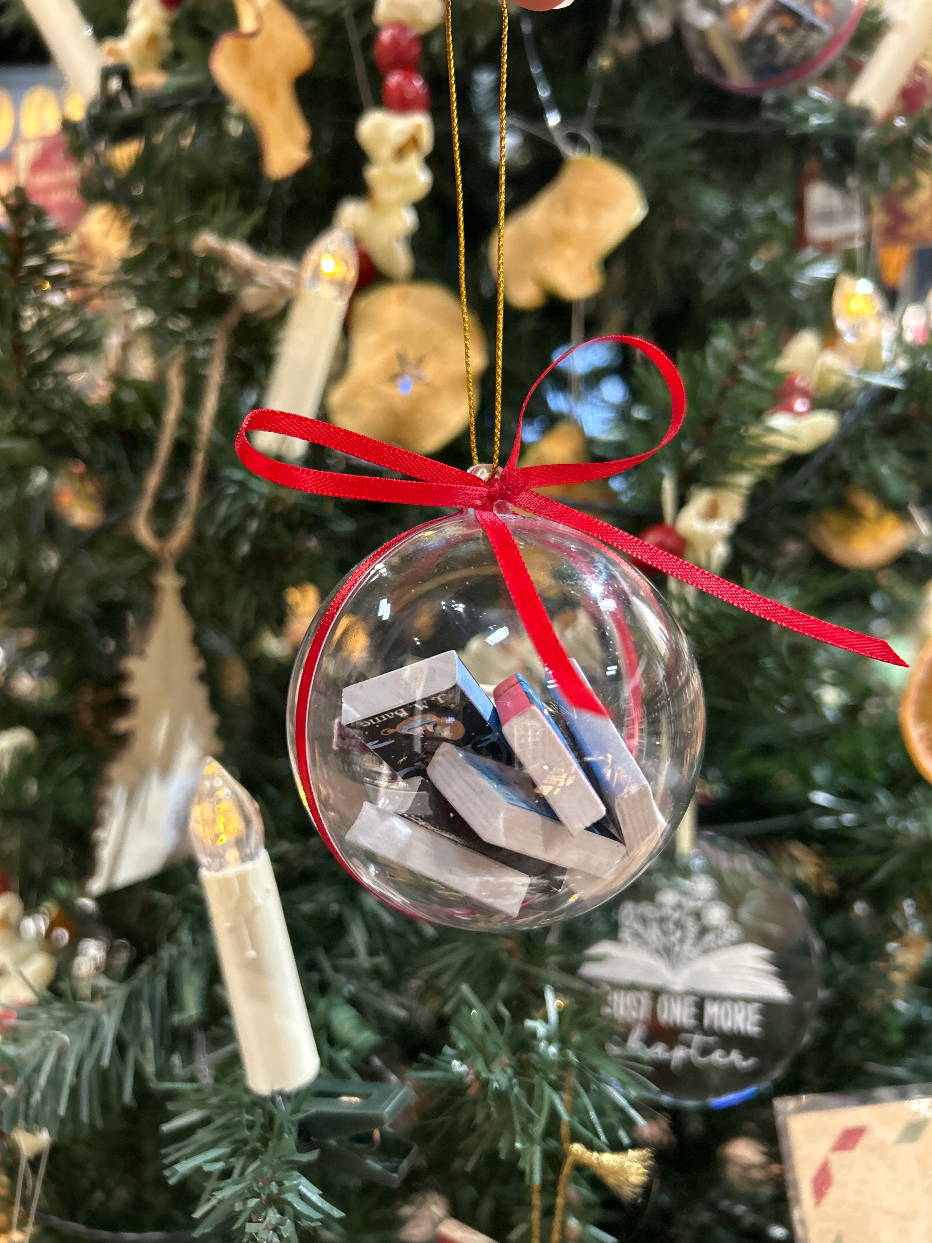 5e, Clear Christmas ball with 15 tiny little books inside. Handmade.