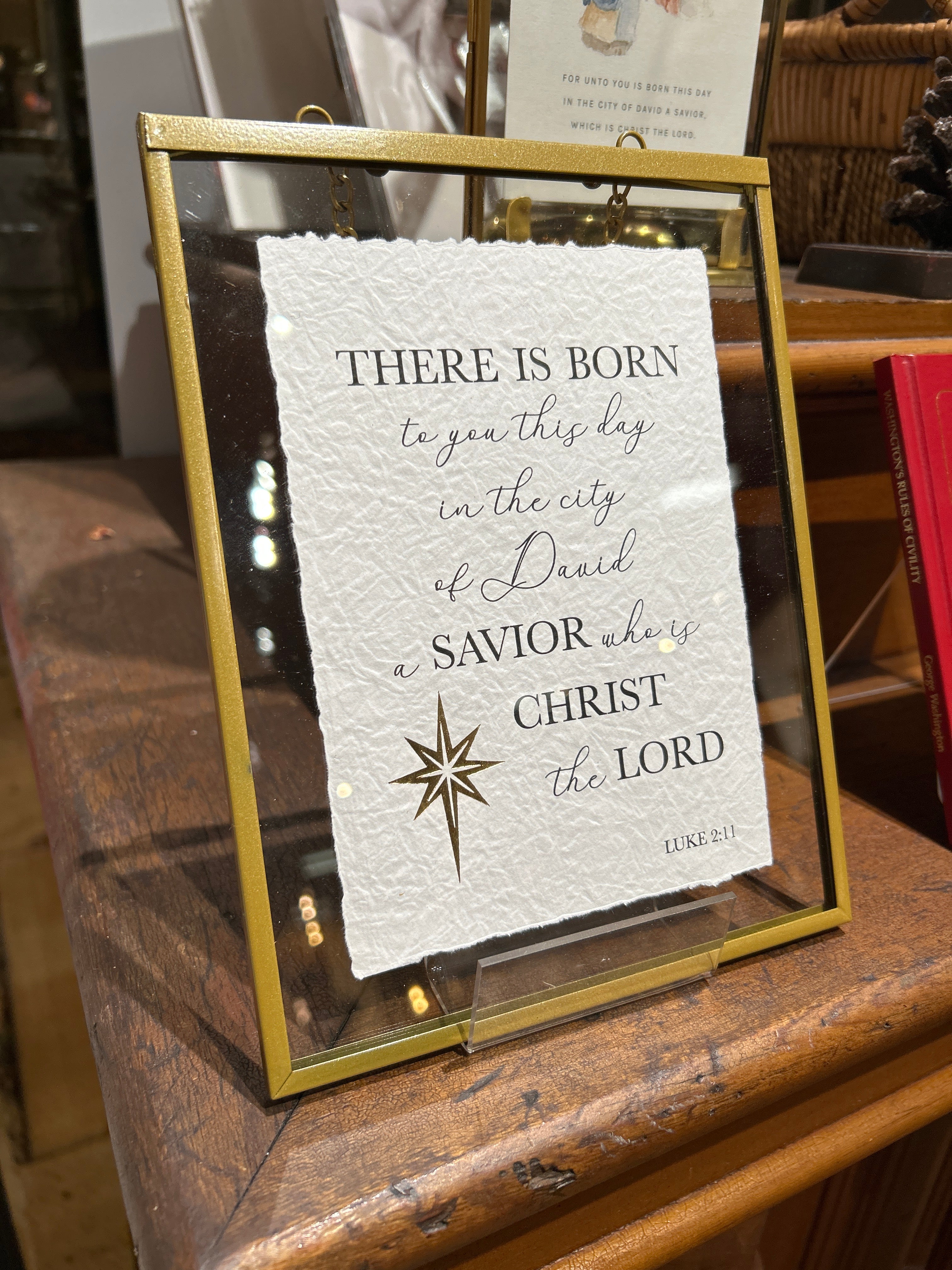 5e, Brass frame with chain to hang this charming Christmas scene from Luke 2:11