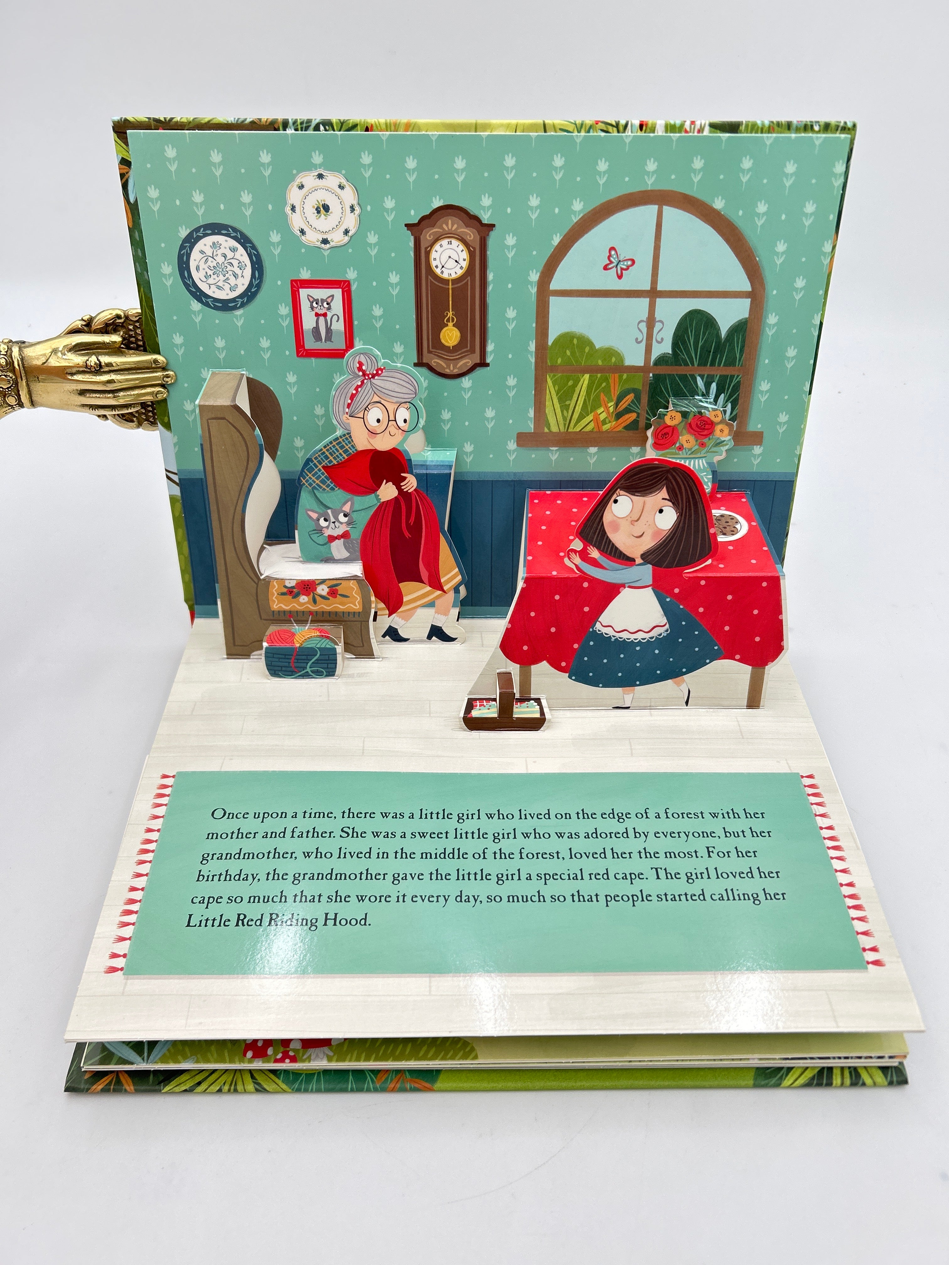 Modern reprint hardback pop up book with pop up elements on every page. QR code on the back with access to an audiobook version to listen along as well.