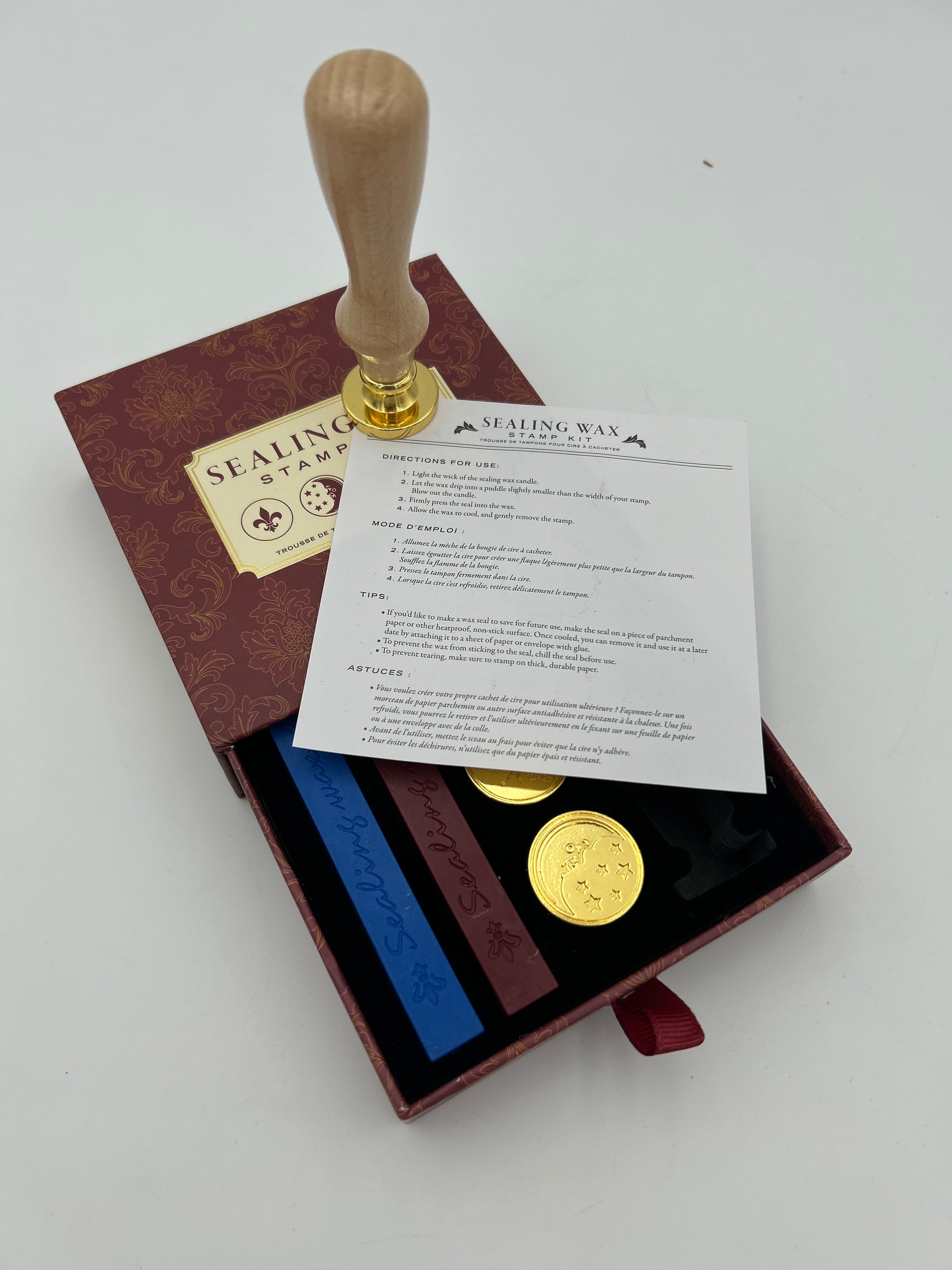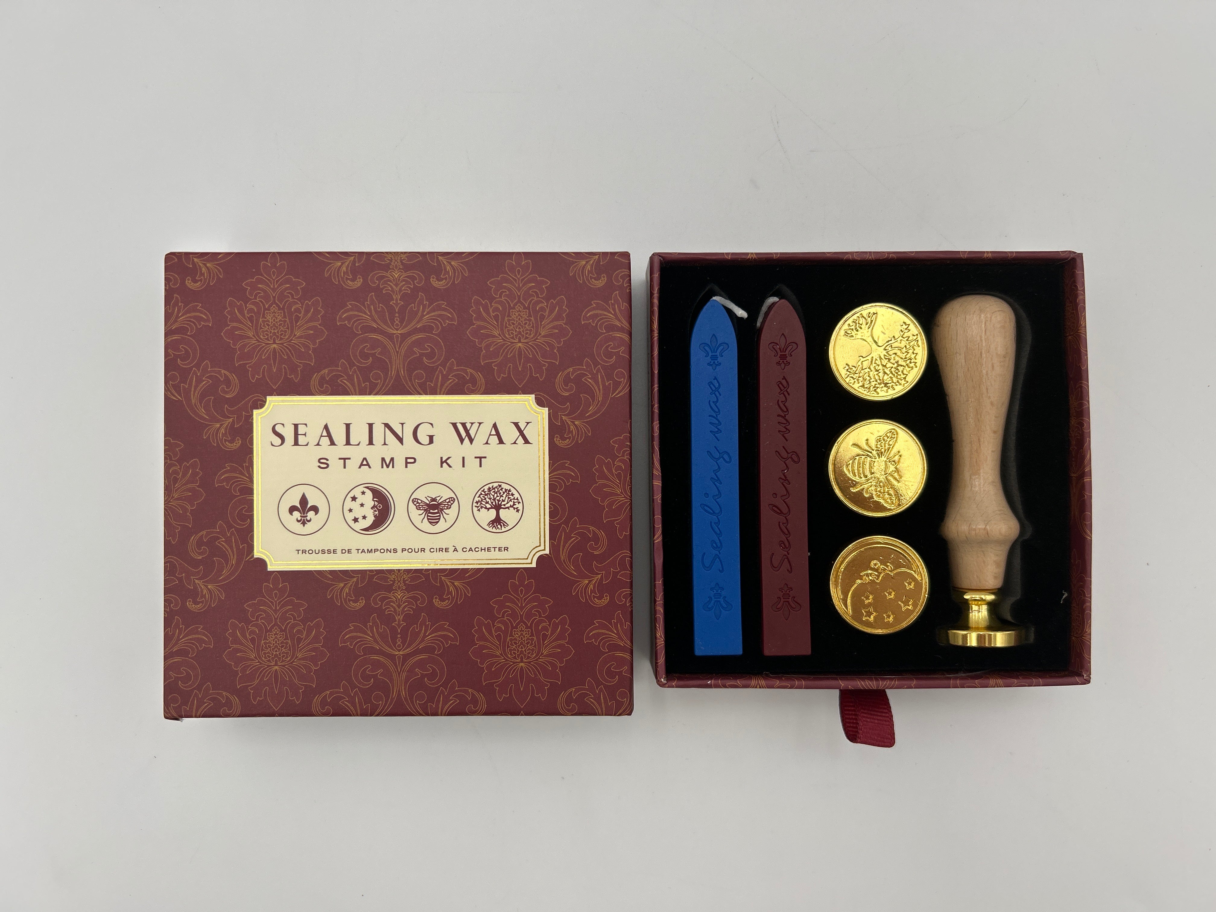 One wooden handle with four unique, high-quality seals and two wax sticks. Four seal designs included: fleur-de-lis, crescent moon and stars, lifelike bumblebees and tree of life. Removable metal stamp is easy to change and install.