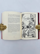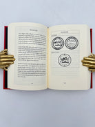 Hardcover bound in red buckram printed on 115g wood-free, age resistant arena ivory rough paper sewn book block.