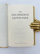 The Enchiridion Leonis Papae (Handbook of Pope Leo) is a mystical and magical grimoire traditionally attributed to Pope Leo III, though its true authorship and origins are uncertain. First appearing in the 17th century, the text claims to have been given by Pope Leo to Charlemagne as a spiritual and protective manual. It contains prayers, invocations, and charms intended for protection, health, and success, often invoking Christian imagery alongside magical intentions. Despite its ecclesiastical veneer, the Enchiridion blends Christian devotion with folk magic, making it a curious example of how religious and occult traditions were often intertwined in early modern Europe. It was widely circulated and used as a talismanic book, sometimes carried or worn for its supposed protective powers.