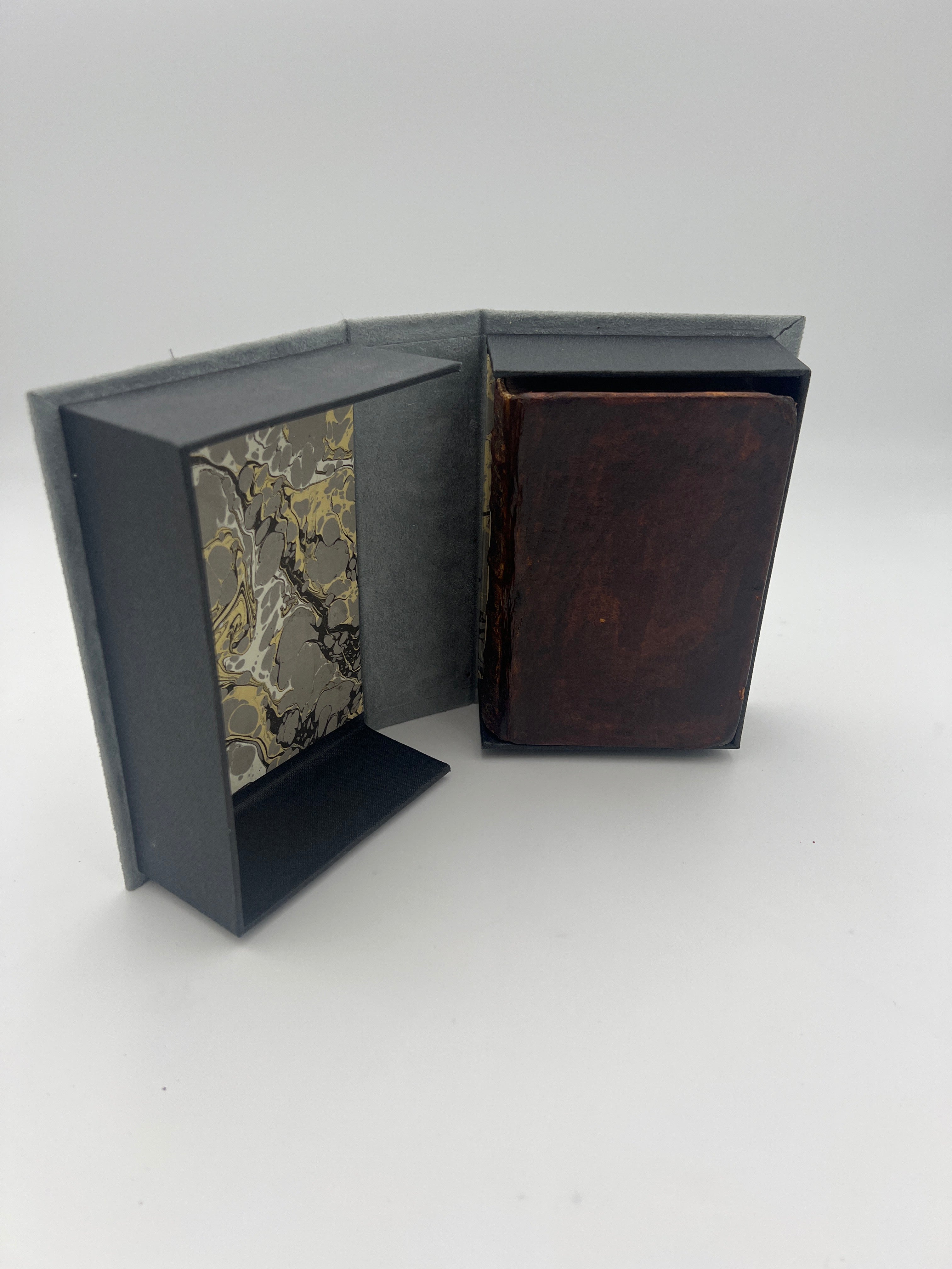 Brown contemporary calfskin leather. Five raised bands with gilt designs and lettering on the spine. 10x50mm chip along the lower spine, bumping to the corners, creasing along the spine. Water stain on the title page and very slight browning, some foxing to the edges, still in good condition. Woodcut design on the colophon page (Dd7r), and woodcut decorated initials and tailpieces. Housed in protective illustrated clamshell.