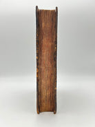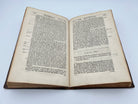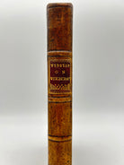 Brown leather boards with embossed detail on the front and back boards. Four raised bands with gilt lettering on a red leather label in the second compartment. Red fore edge. Some browning within and minimal foxing. Bumped corners and rubbed extremities. Some chipping along the edges. Fine condition overall.