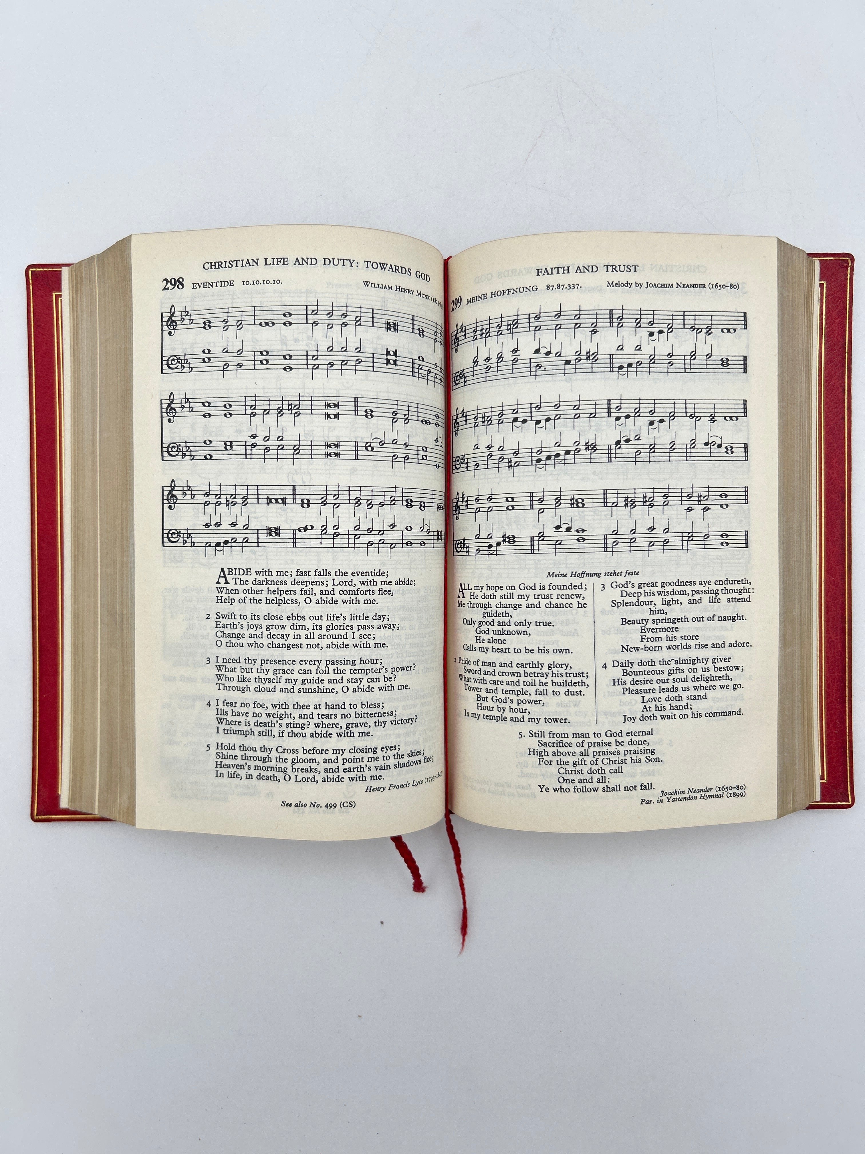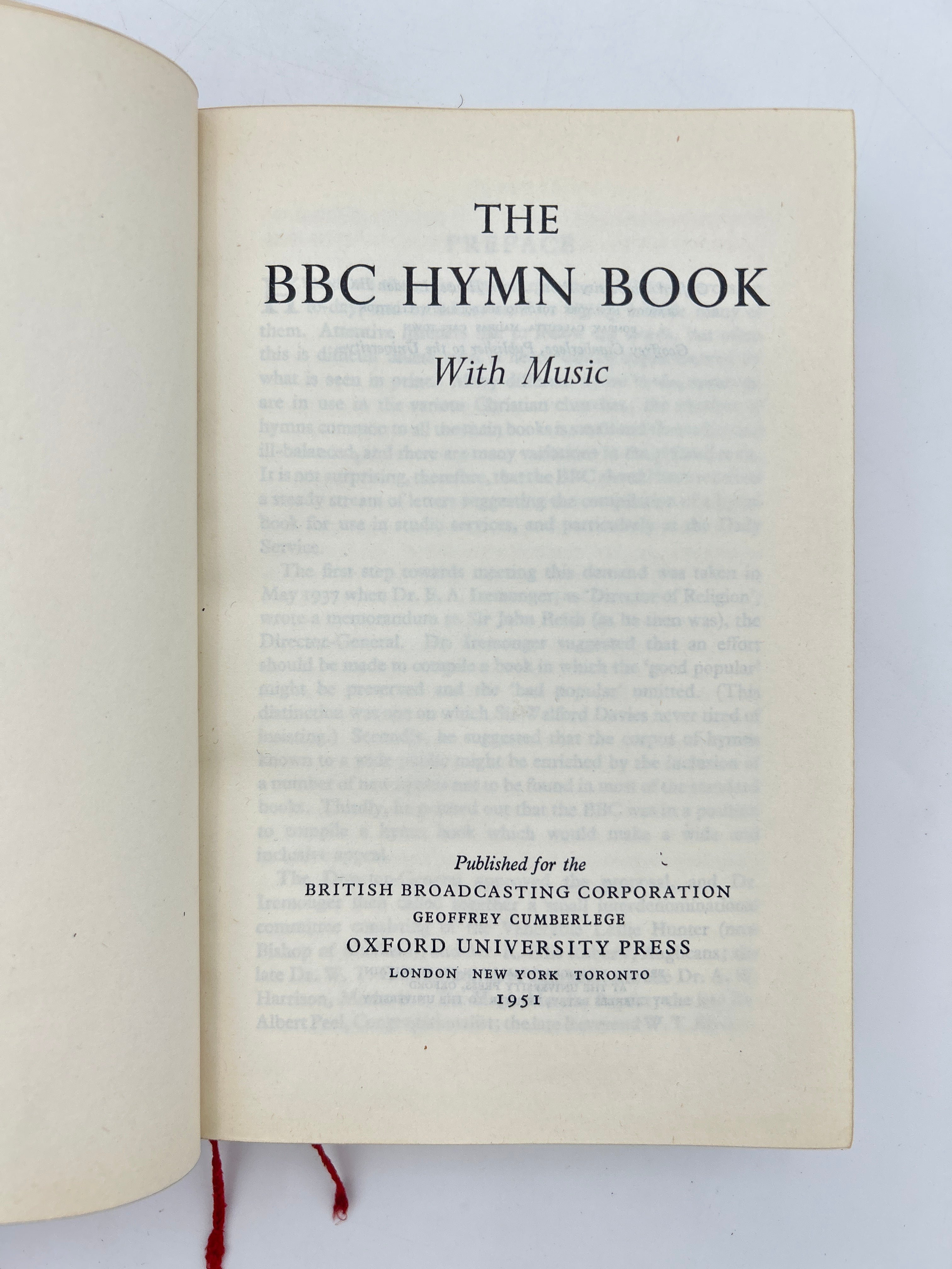The BBC Hymn Book of 1951 was compiled for use in the BBC's radio broadcasts of Christian worship, particularly the long-running program Sunday Half Hour. Edited by music scholar Percy Dearmer and others, the hymnal reflected a desire to unify and elevate the quality of hymn-singing across the UK during the post-war years. It brought together a carefully curated selection of traditional hymns, gospel songs, and newer compositions, with an emphasis on theological clarity, poetic strength, and congregational accessibility. The book served not only as a resource for religious broadcasts but also became a staple in many homes and churches, representing the BBC's commitment to cultural and spiritual life through music.