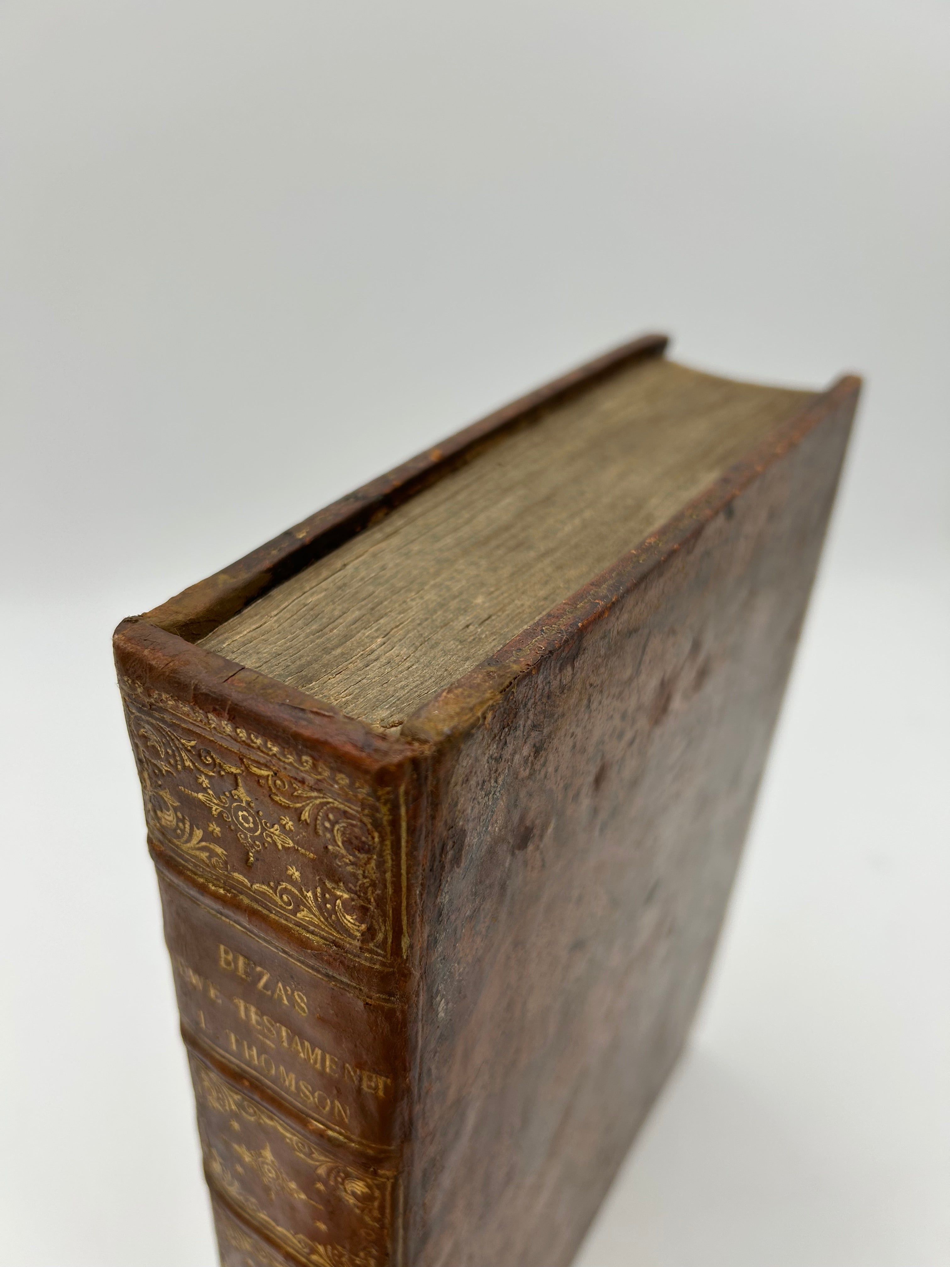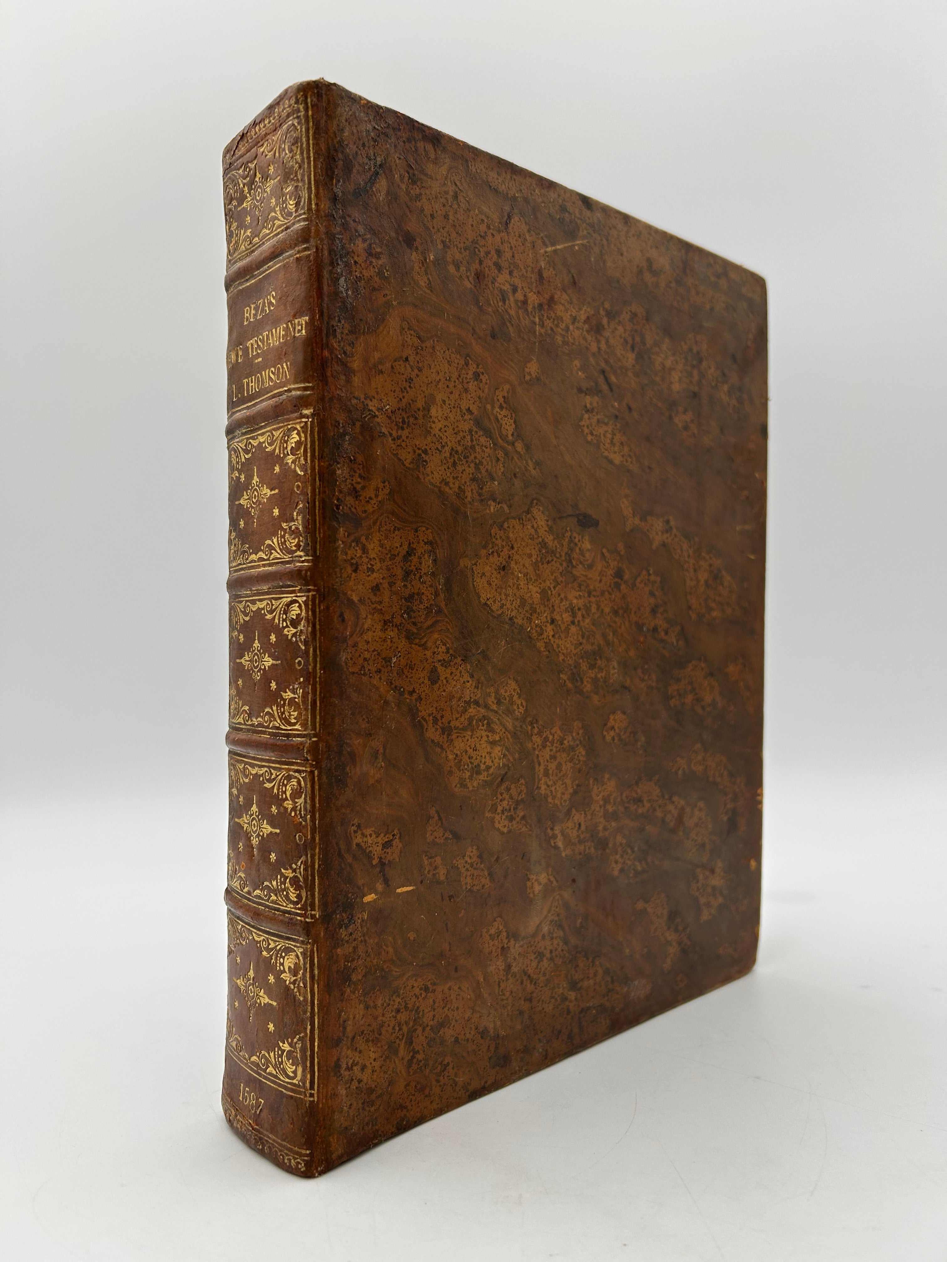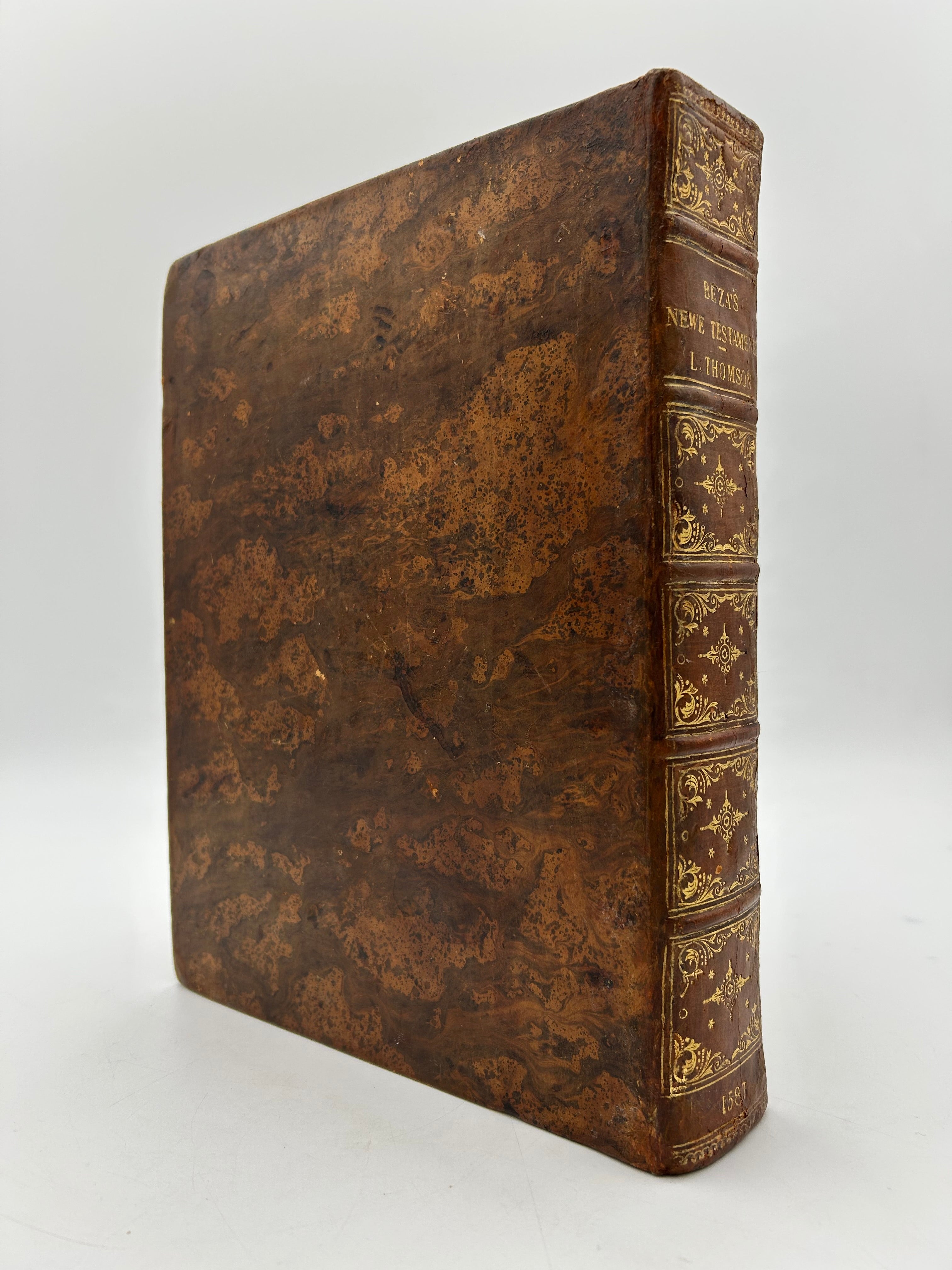18th Century calfskin binding. Five raised bands and compartments decorated in gilt. Second compartment lettered in gilt and date for 1587 in gilt at foot of spine (in fact, this is incorrect as the date is 1583). Clear pages with original wide margin and extensive notes.