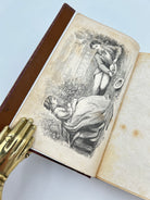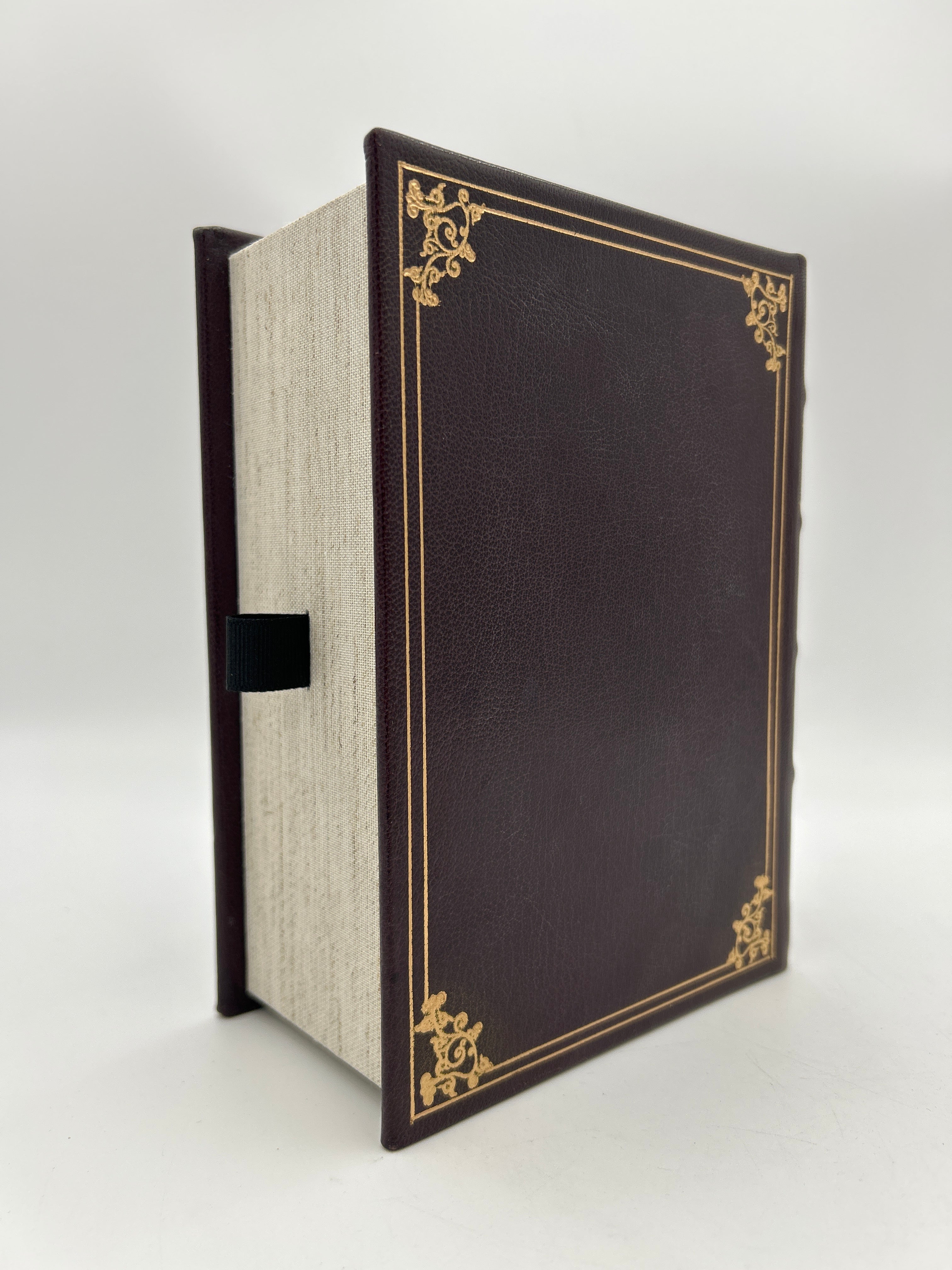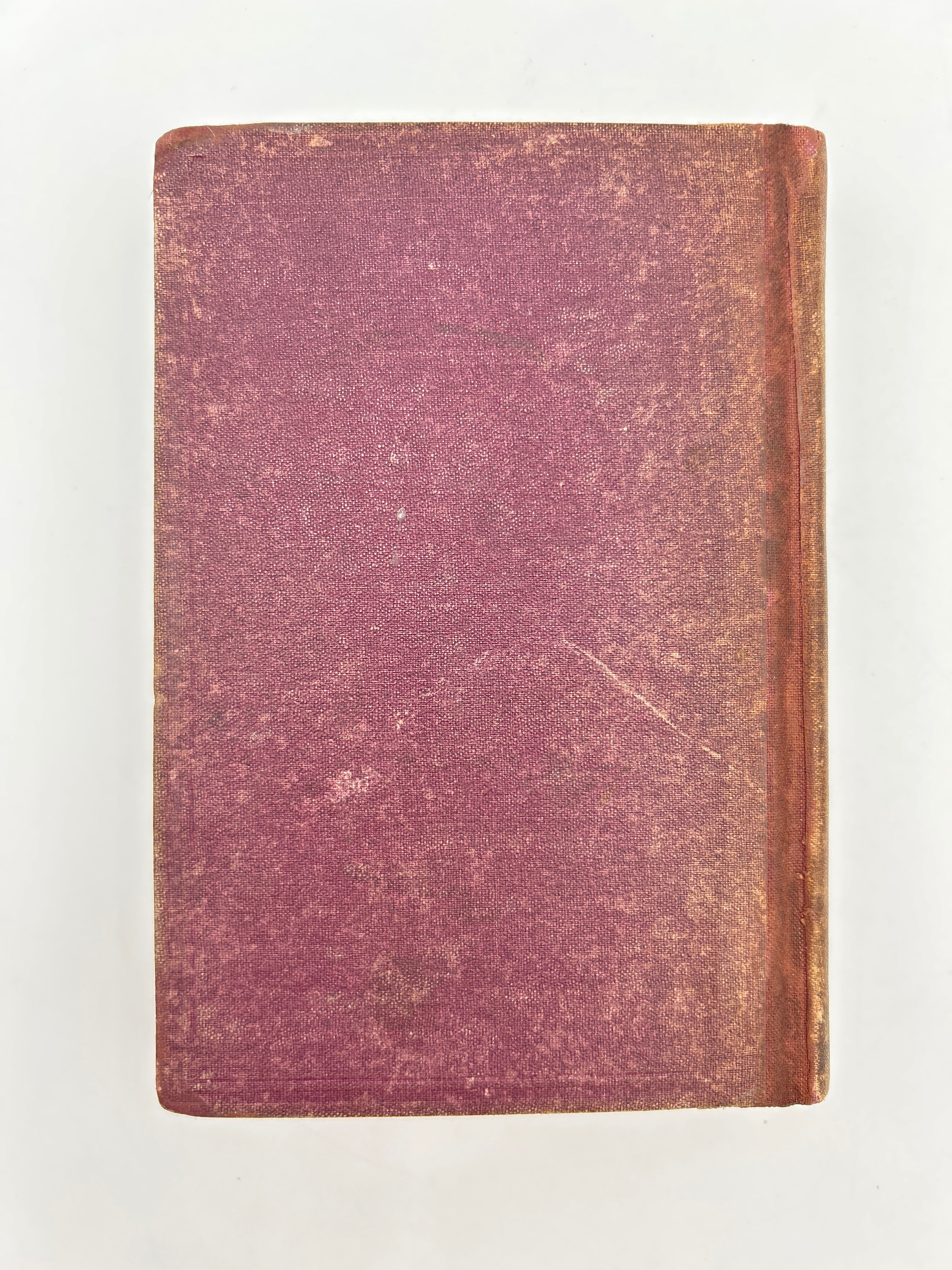 Original terra-cotta cloth binding with gilt oval on upper boards with gilt lettering within. Gilt lettering on the spine as well. Brown coated endpapers. Housed in a custom brown clamshell with gilt details, lettering, and four raised bands.