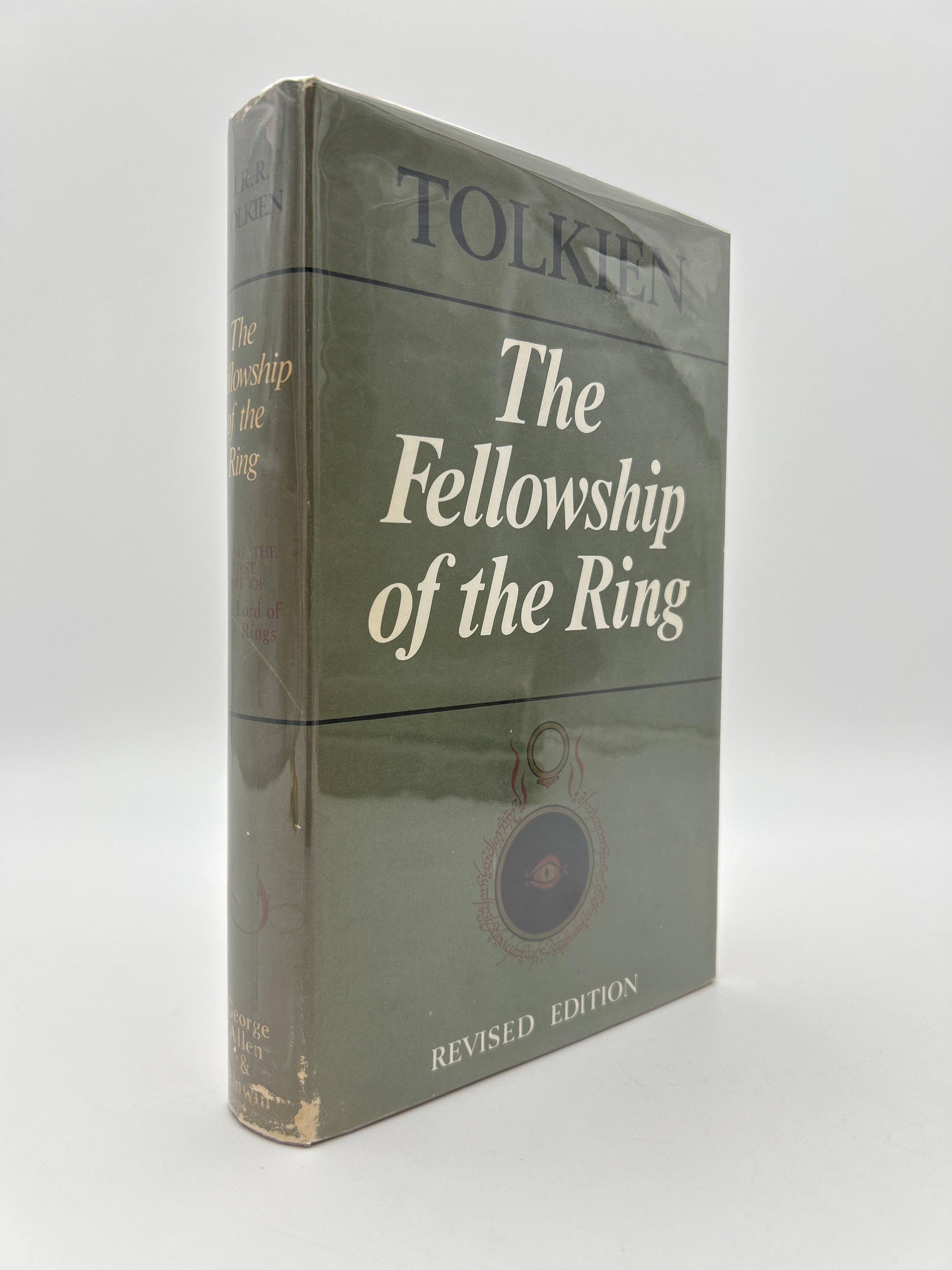 Second revised edition SIGNED by author J.R.R. Tolkien on the title page of The Fellowship of the Ring. All in red cloth binding with gilt lettering on the spine and original dust jackets. Some wear to head and foot of dust jackets. Some rubbing to the extremities and general yellowing to the back of dust wrapper. Very fine condition overall.