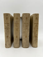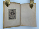 Full vellum binding. Corners of the covers are decorated with two crossed “L”s surmounted by a crown embossed in gilt the monogram of Princes Louise Augusta of Schleswig-Holstein. The spines are decorated with two gilt floral elements and gilt lettering. All edges gilt. White silk doublures with double fillet gilt boarders of a wavy line inside a straight one with a flower decorationion in the former and lavishly decorated turn-ins. Front bookplate has the paste down bookplate of Princess Louisa Augusta. Frontispiece portrait of Tennyson in volume one.