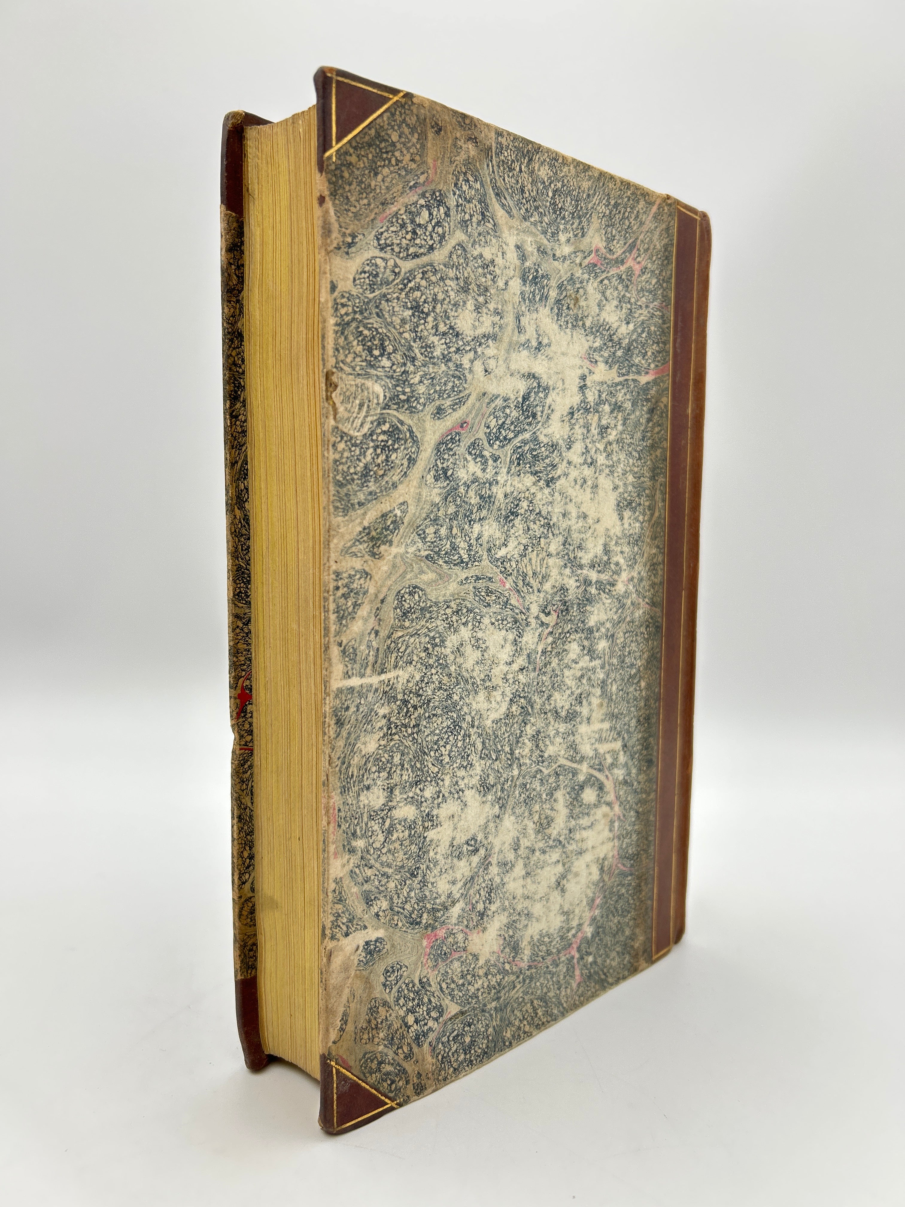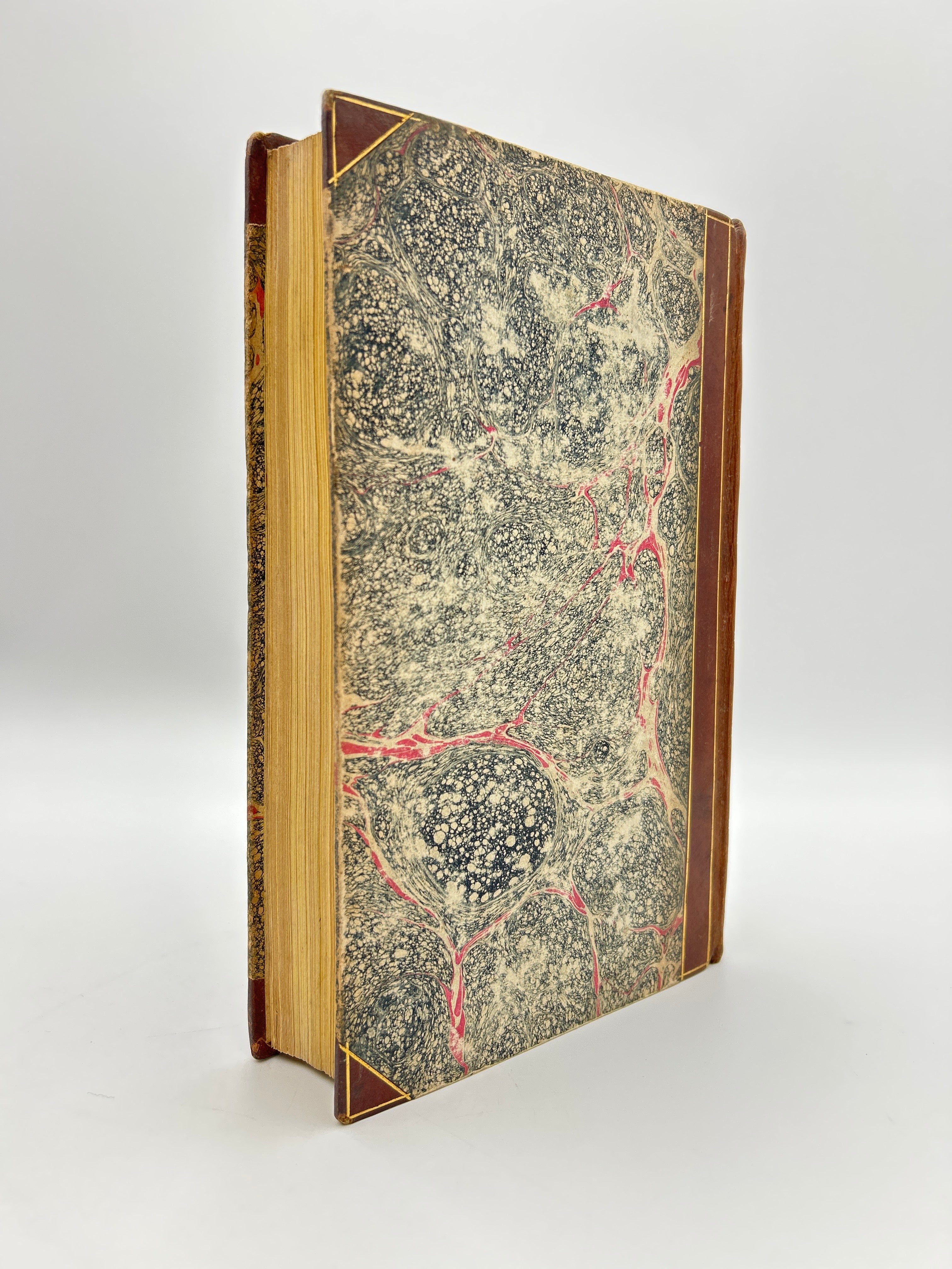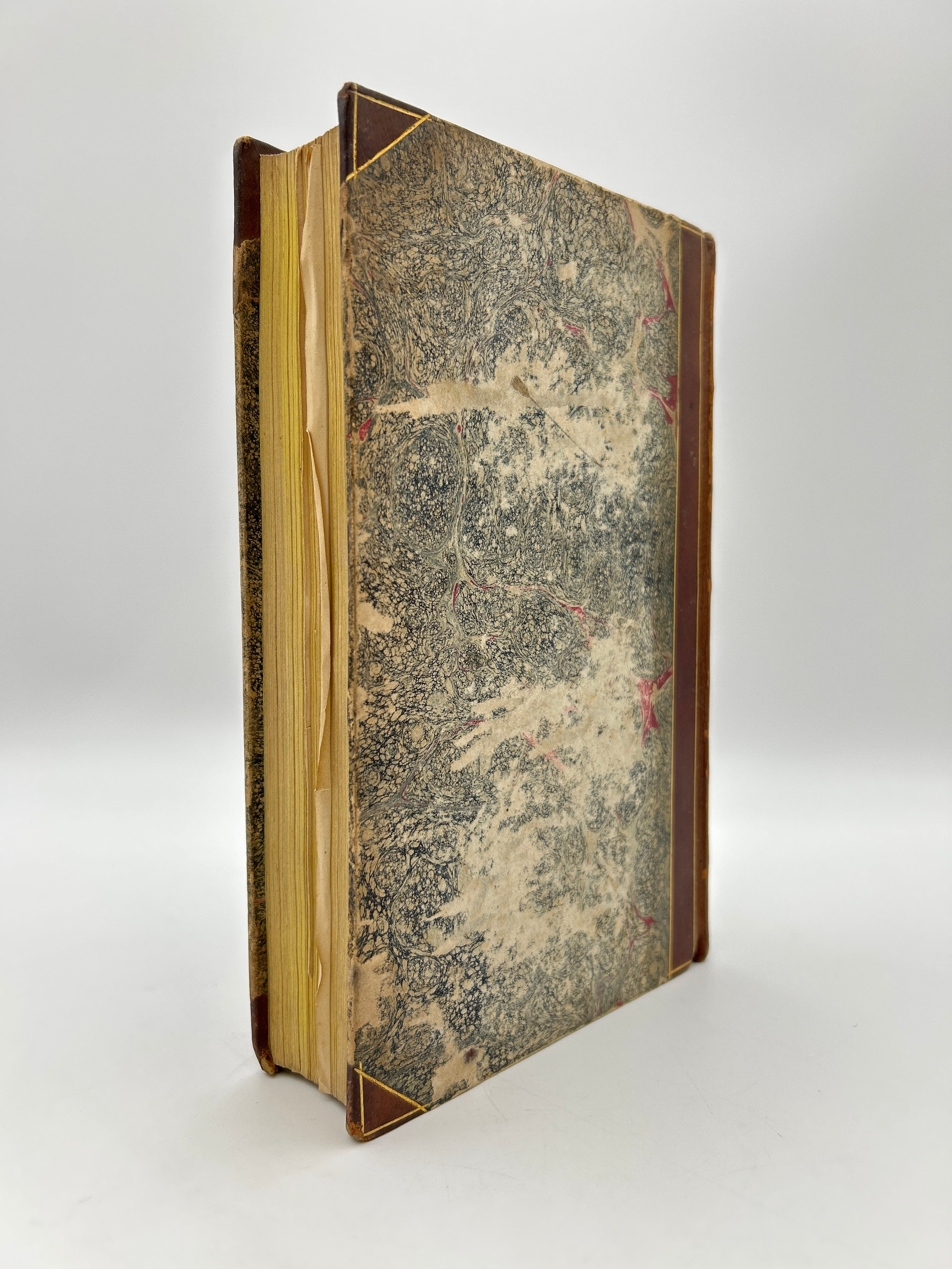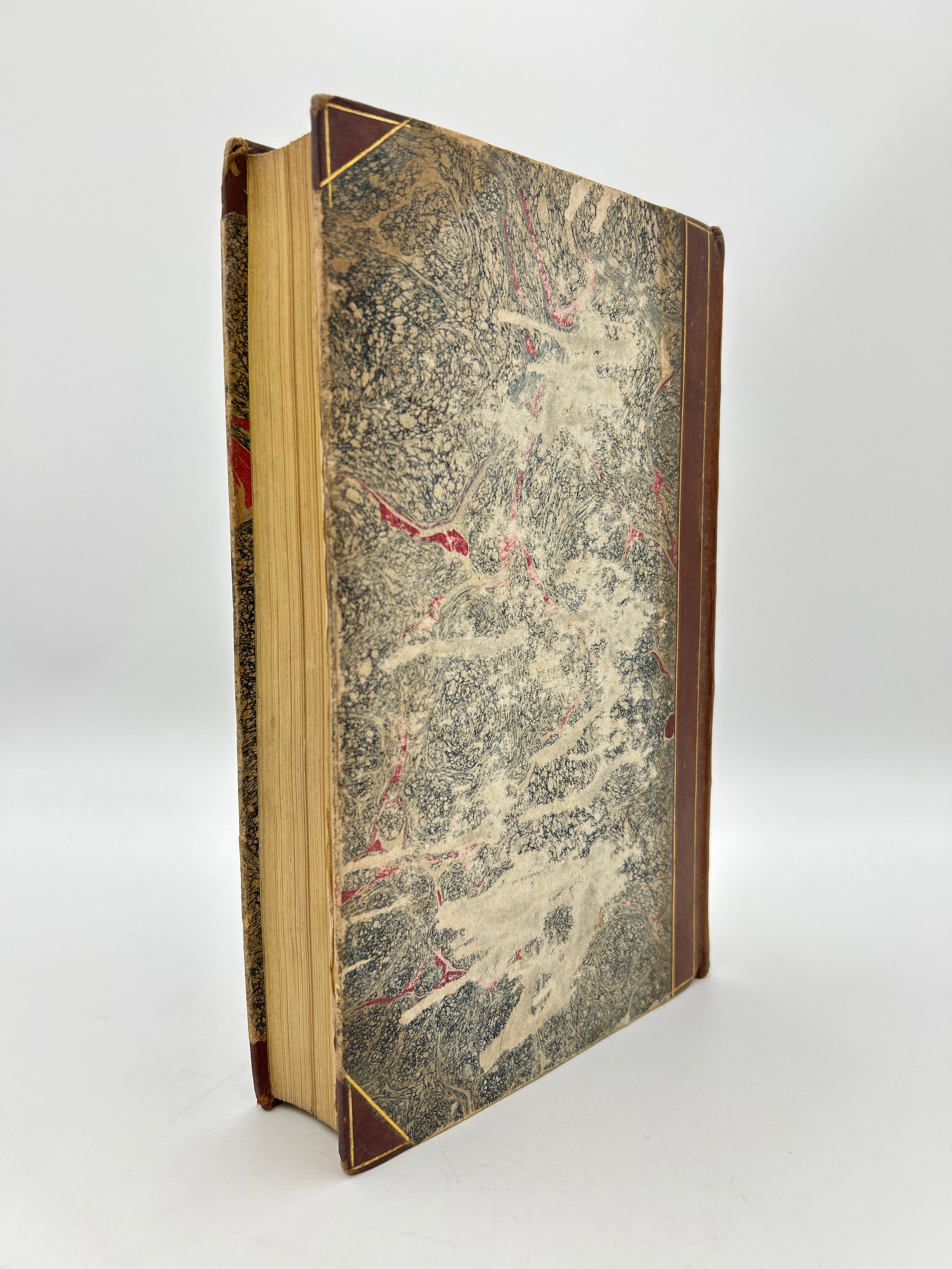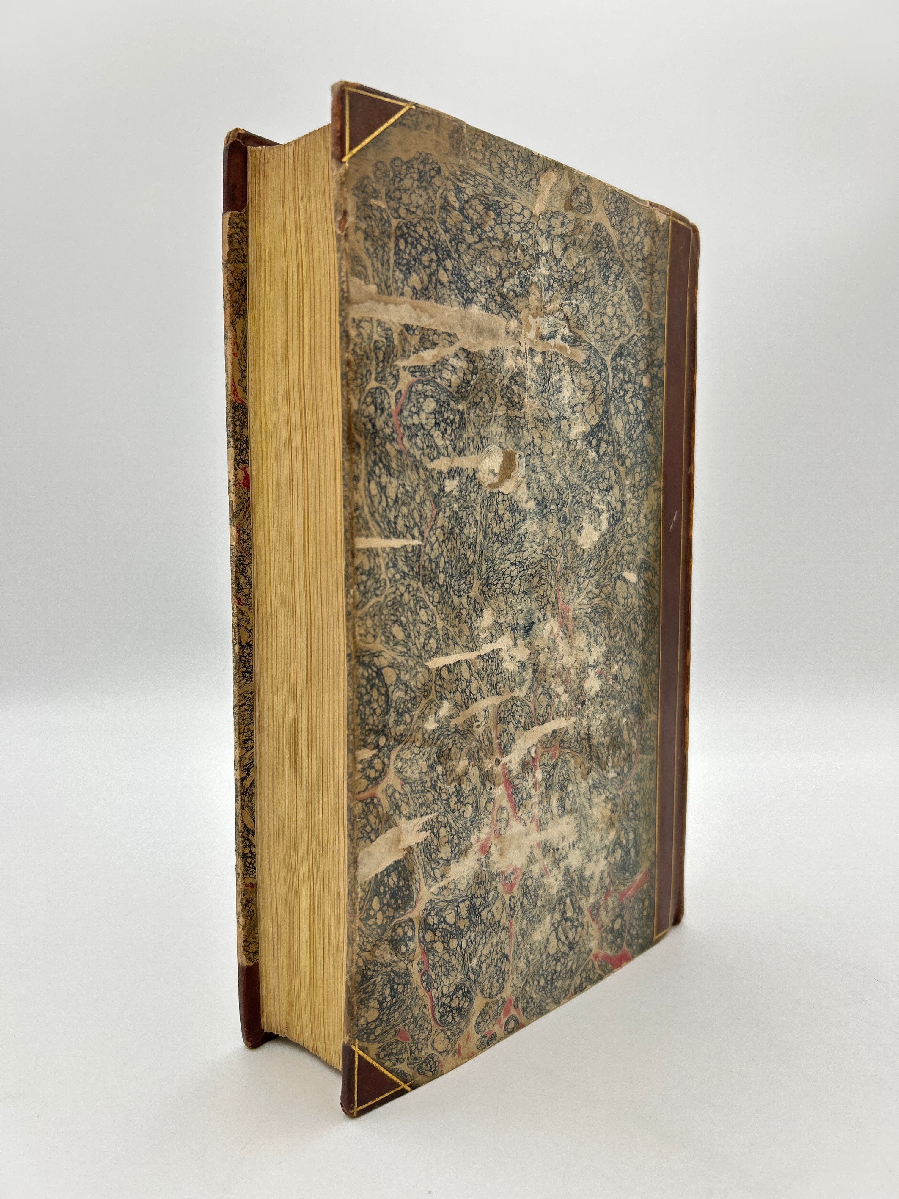 Eight volumes. 8vo in 4s. 232x140mm. Volume I, January to June 1799 has 13 plates including one folding map and two diagrams. Volume II, July to December 1799 has 12 plates and six charts and diagrams. Loosely inserted is an engraved portrait of Nelson with his signature on the endpaper. Volume III, January to July 1800 has 13 plates, plans, and diagrams. Volume IV July to January 1801 has 13 plates and maps. Volume V. January to July 1801 has 8 of 15 plates. Volume VI. July to December 1801 has 14 plates and diagrams. Volume VII January to July 1802 has 12 plates and maps including a chart of Newfoundland and a View of Wampooh in China. Volume VIII. July to December 1802. pp. viii, 520, [8]. 12 plates. Bound in half calf, marbled paper covered boards, flat spines decorated in gilt with anchor motifs and lettered in gilt. Volume V is bound with different marbled paper and spine and is from a different set but the other seven are uniformly bound. Fine condition overall.