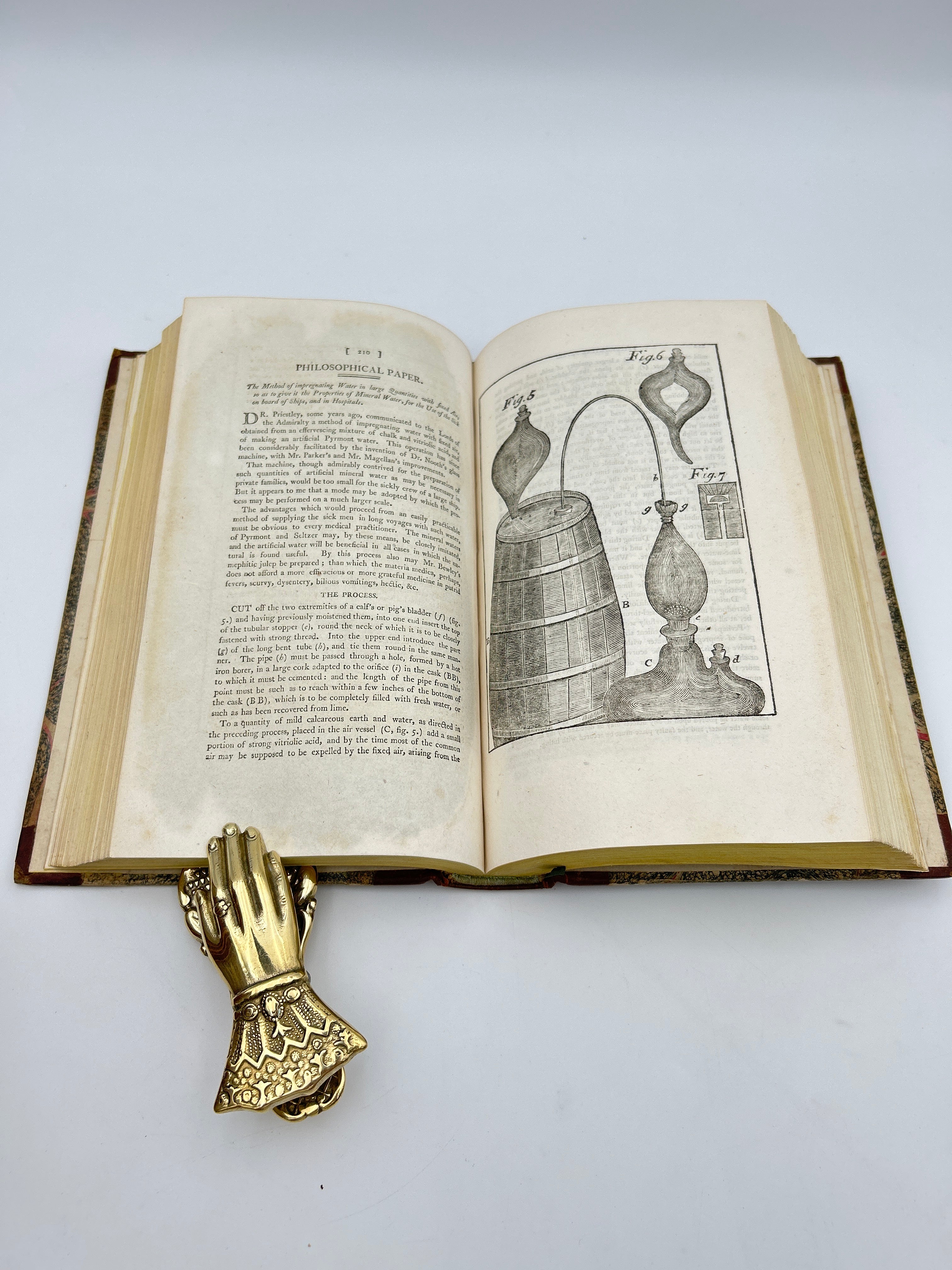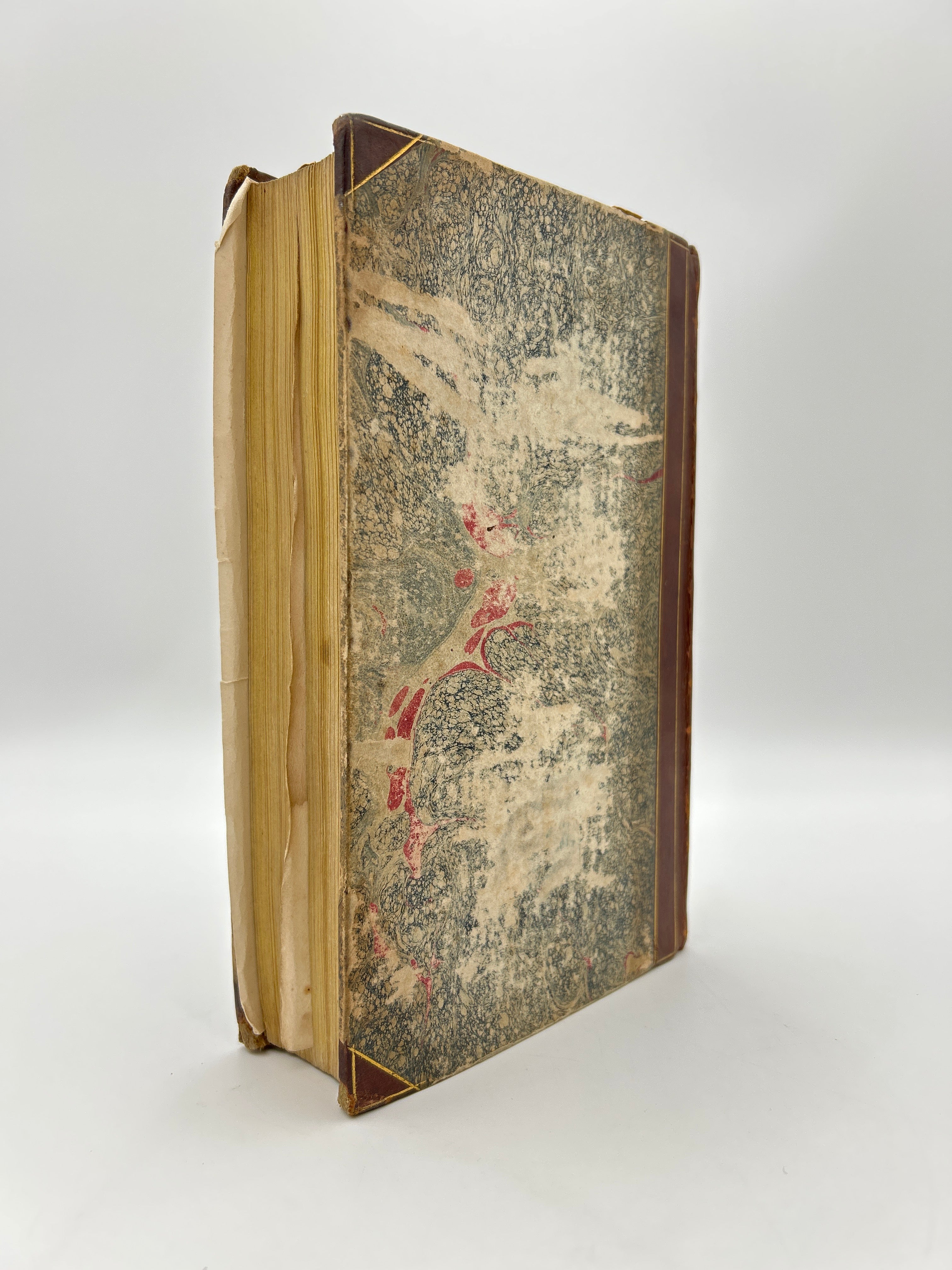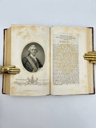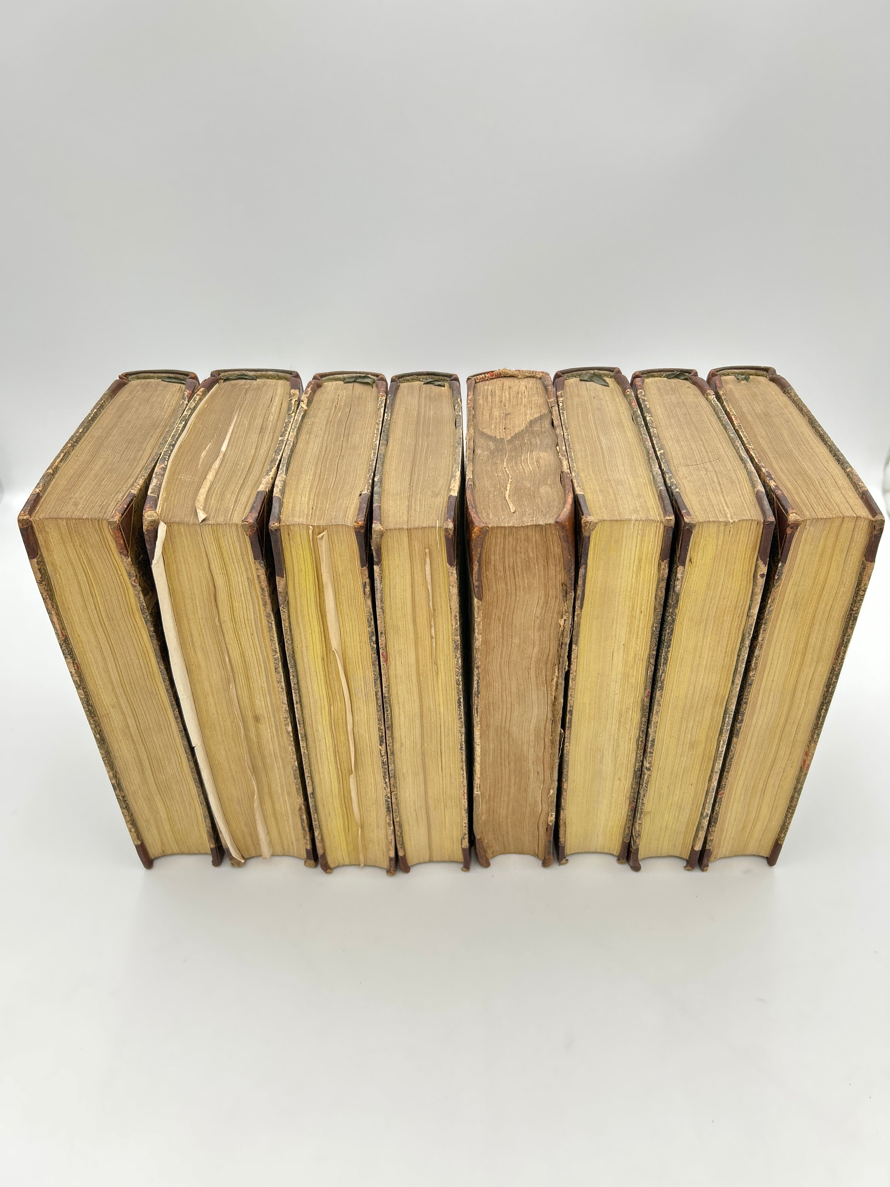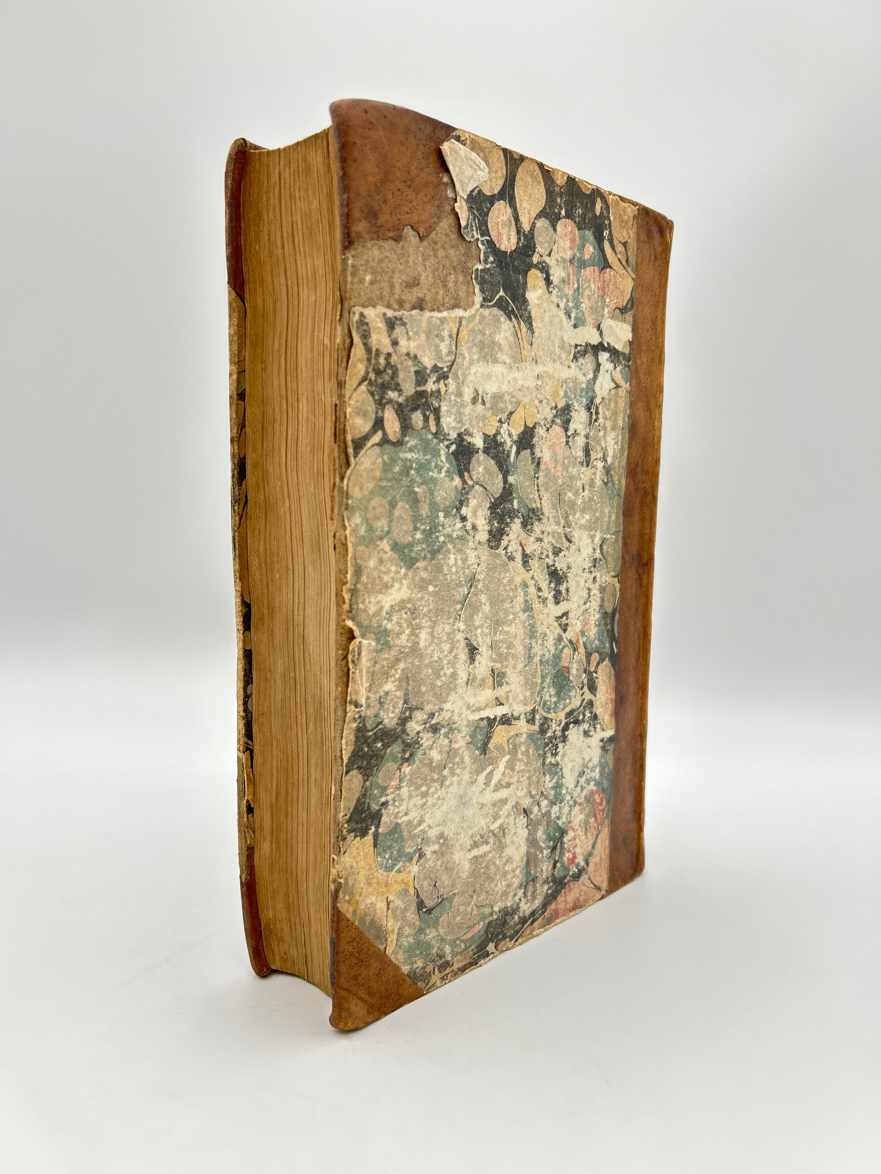 Eight volumes. 8vo in 4s. 232x140mm. Volume I, January to June 1799 has 13 plates including one folding map and two diagrams. Volume II, July to December 1799 has 12 plates and six charts and diagrams. Loosely inserted is an engraved portrait of Nelson with his signature on the endpaper. Volume III, January to July 1800 has 13 plates, plans, and diagrams. Volume IV July to January 1801 has 13 plates and maps. Volume V. January to July 1801 has 8 of 15 plates. Volume VI. July to December 1801 has 14 plates and diagrams. Volume VII January to July 1802 has 12 plates and maps including a chart of Newfoundland and a View of Wampooh in China. Volume VIII. July to December 1802. pp. viii, 520, [8]. 12 plates. Bound in half calf, marbled paper covered boards, flat spines decorated in gilt with anchor motifs and lettered in gilt. Volume V is bound with different marbled paper and spine and is from a different set but the other seven are uniformly bound. Fine condition overall.