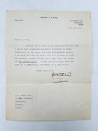 J. R. R. Tolkien was notably conscientious about replying to fan letters, especially after the success of The Hobbit and later The Lord of the Rings. Although the growing volume of correspondence in the 1950s and 1960s eventually made it impossible for him to answer everyone, he made a genuine effort to respond personally to many readers. The letter accompanying this first edition of the Silmarillion even mentions the Silmarillion thirteen years prior to the books publication and nine years prior to Tolkien’s passing. Closing the letter is a very nice signature in Tolkien’s iconic sprawling lettering.