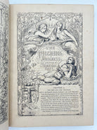 Pebbled green leather boards with brown three-quarter binding with gilt details. Gilt designs and lettering on spine. Slight split to upper spine. Some general wear to boards. Illustrations throughout and illustrative elements on each page.