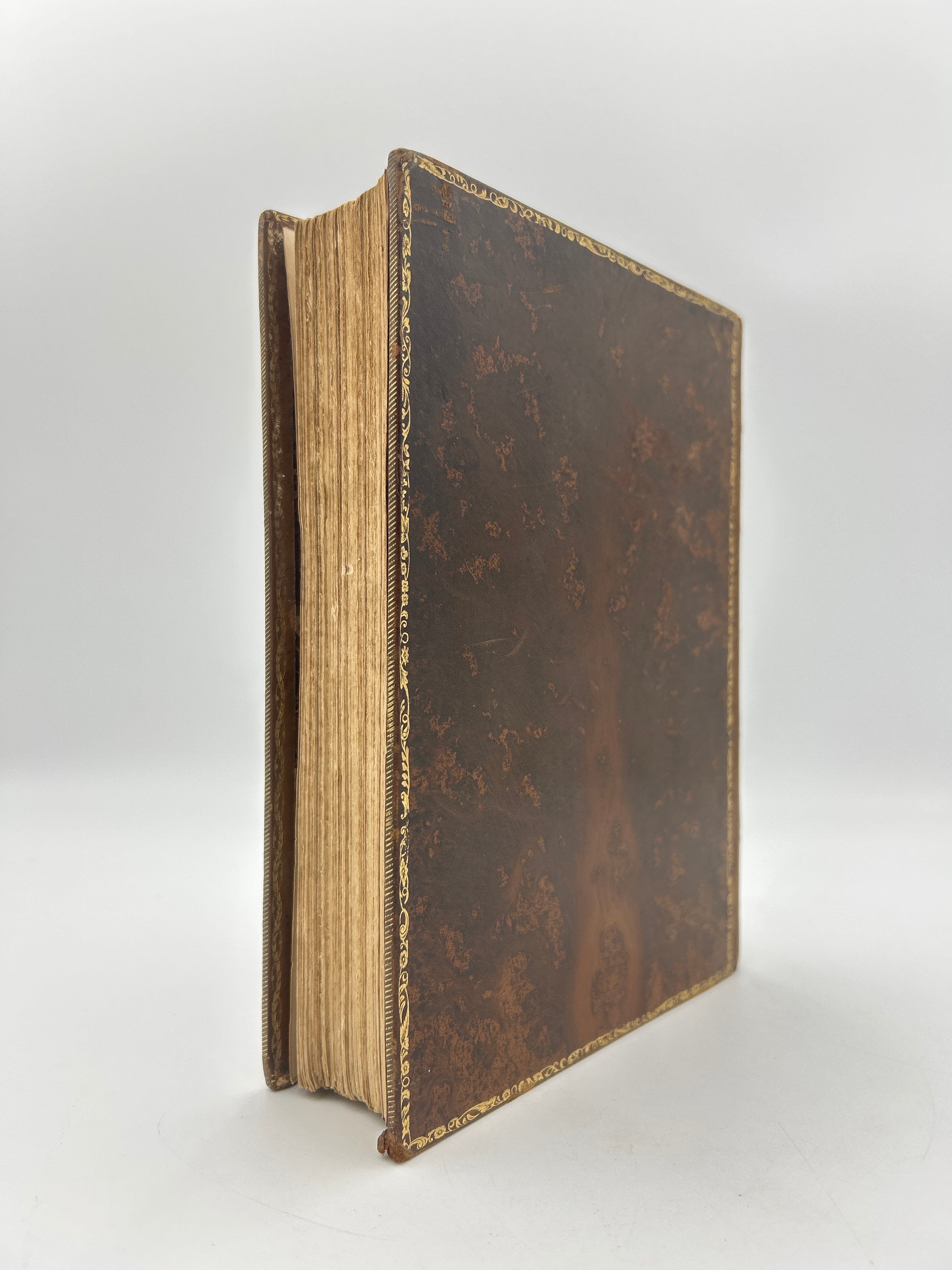 Tree calf leather with gilt boarder on boards. Five raised bands with gilt ornamentation in each compartment and red leather label in second with gilt lettering. Illustrated throughout. Marbled endpapers. Gilt top edge. some scuffing to boards.