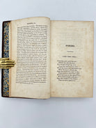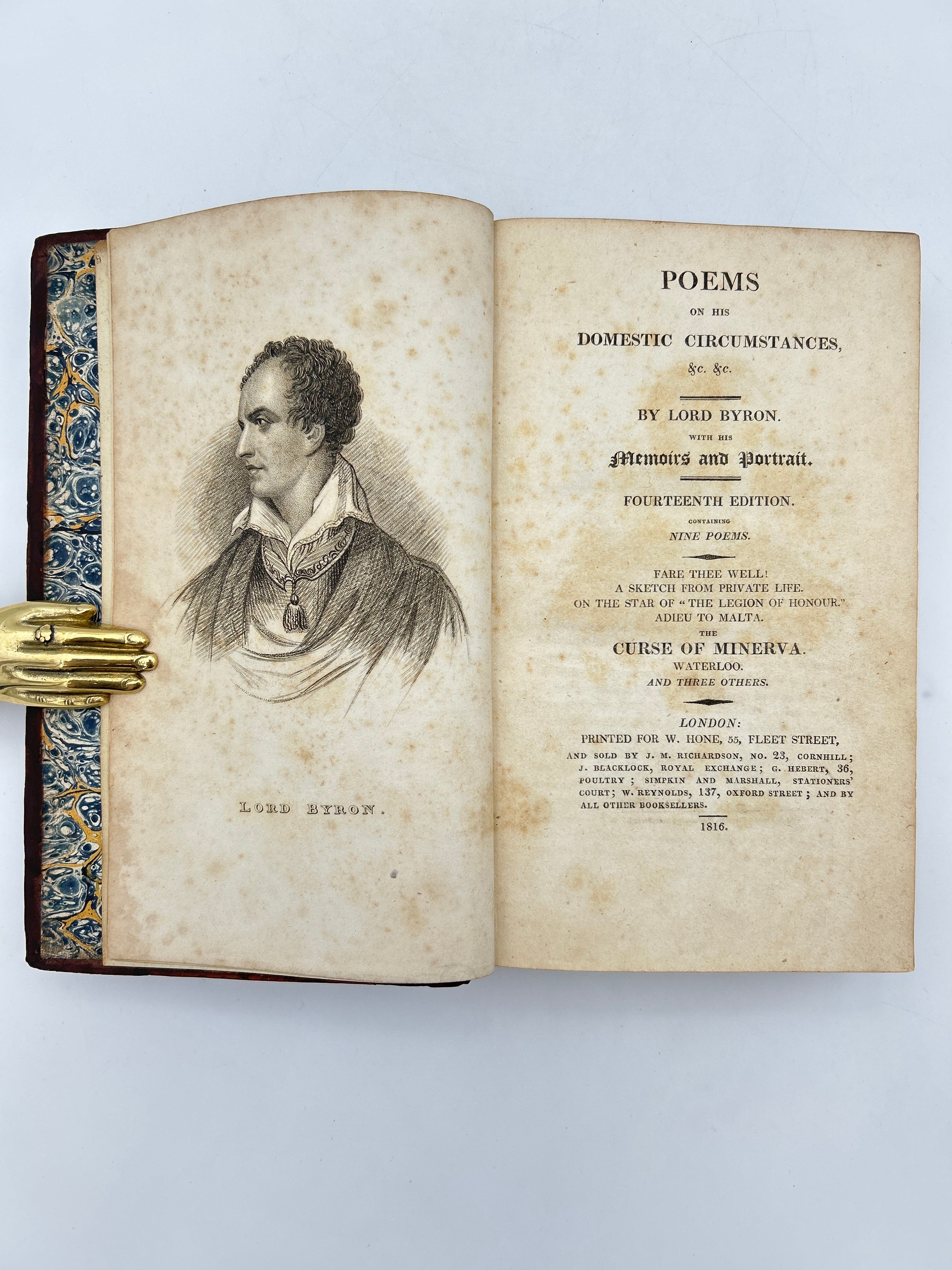 Rich brown leather with gold tooling on spine, gold title tooled on spine, intact, marble end papers, intact, good condition.