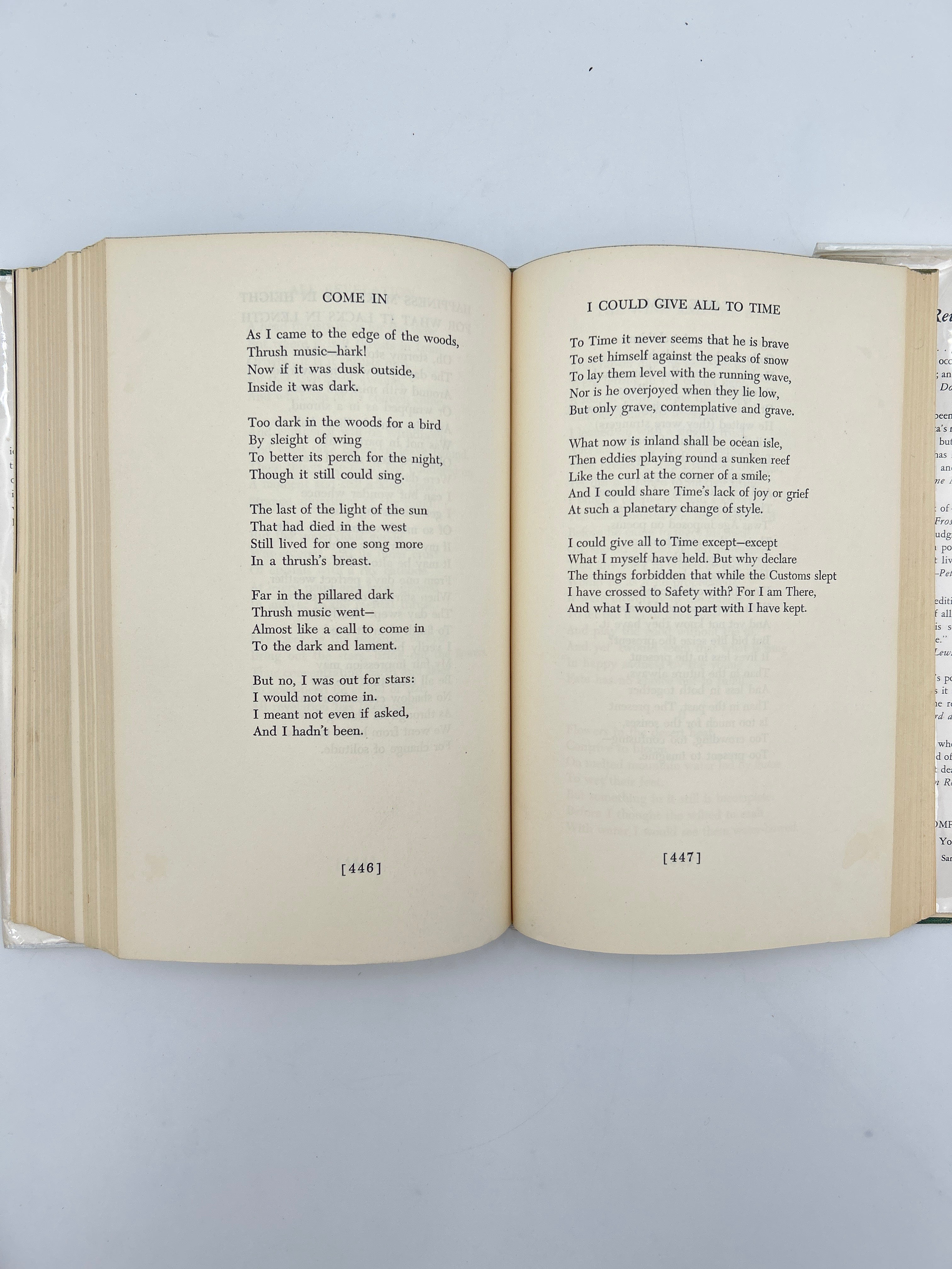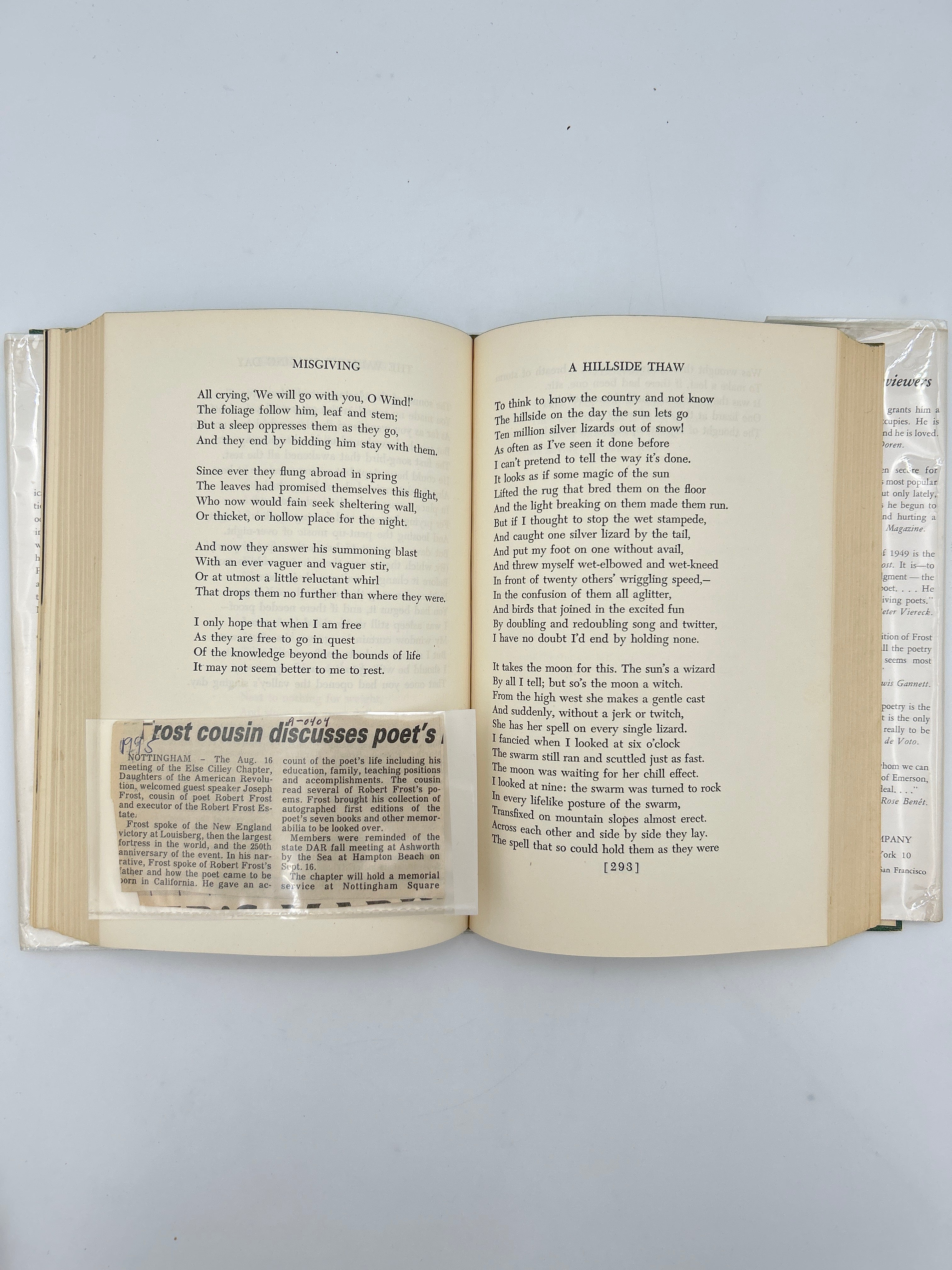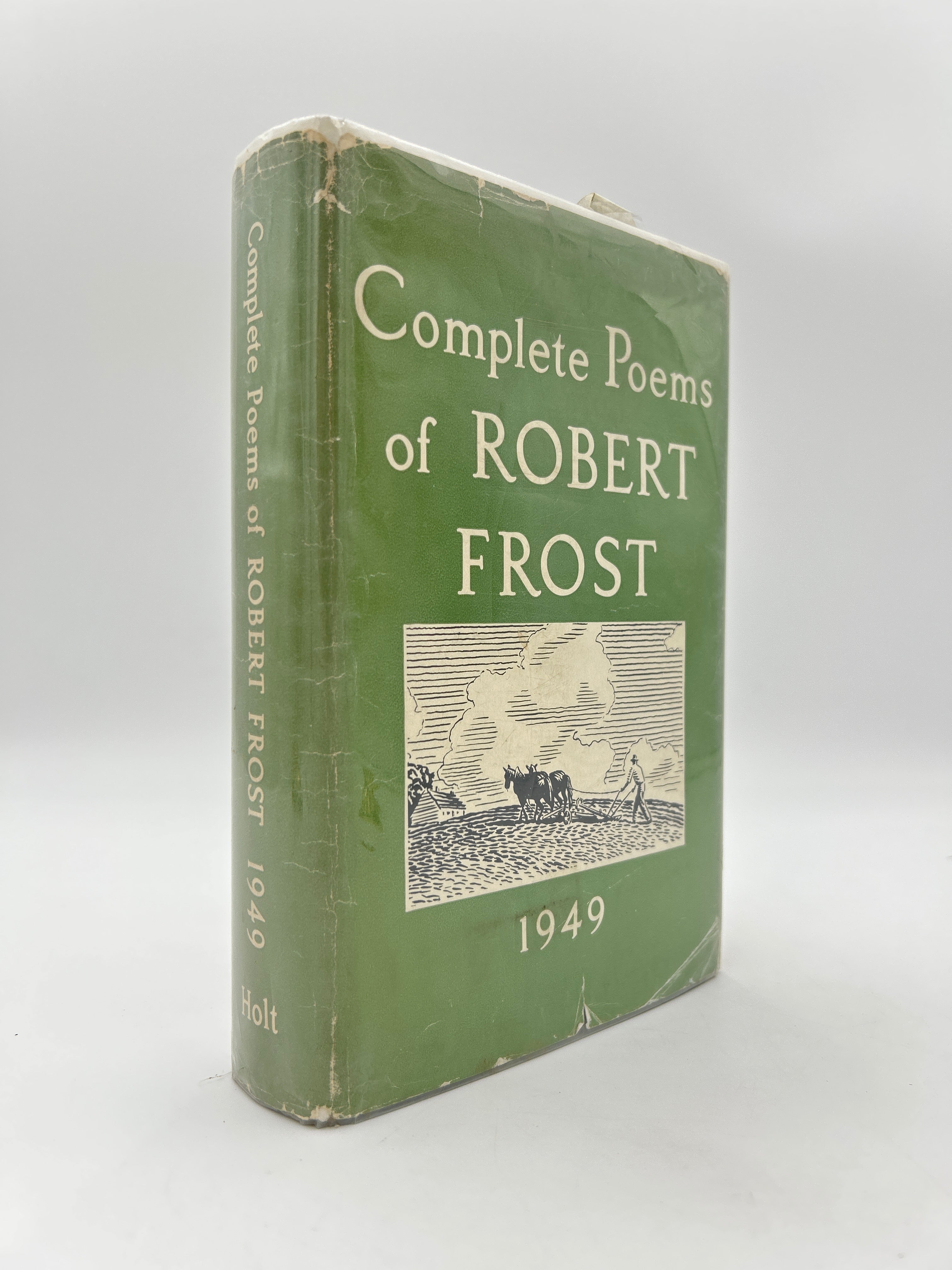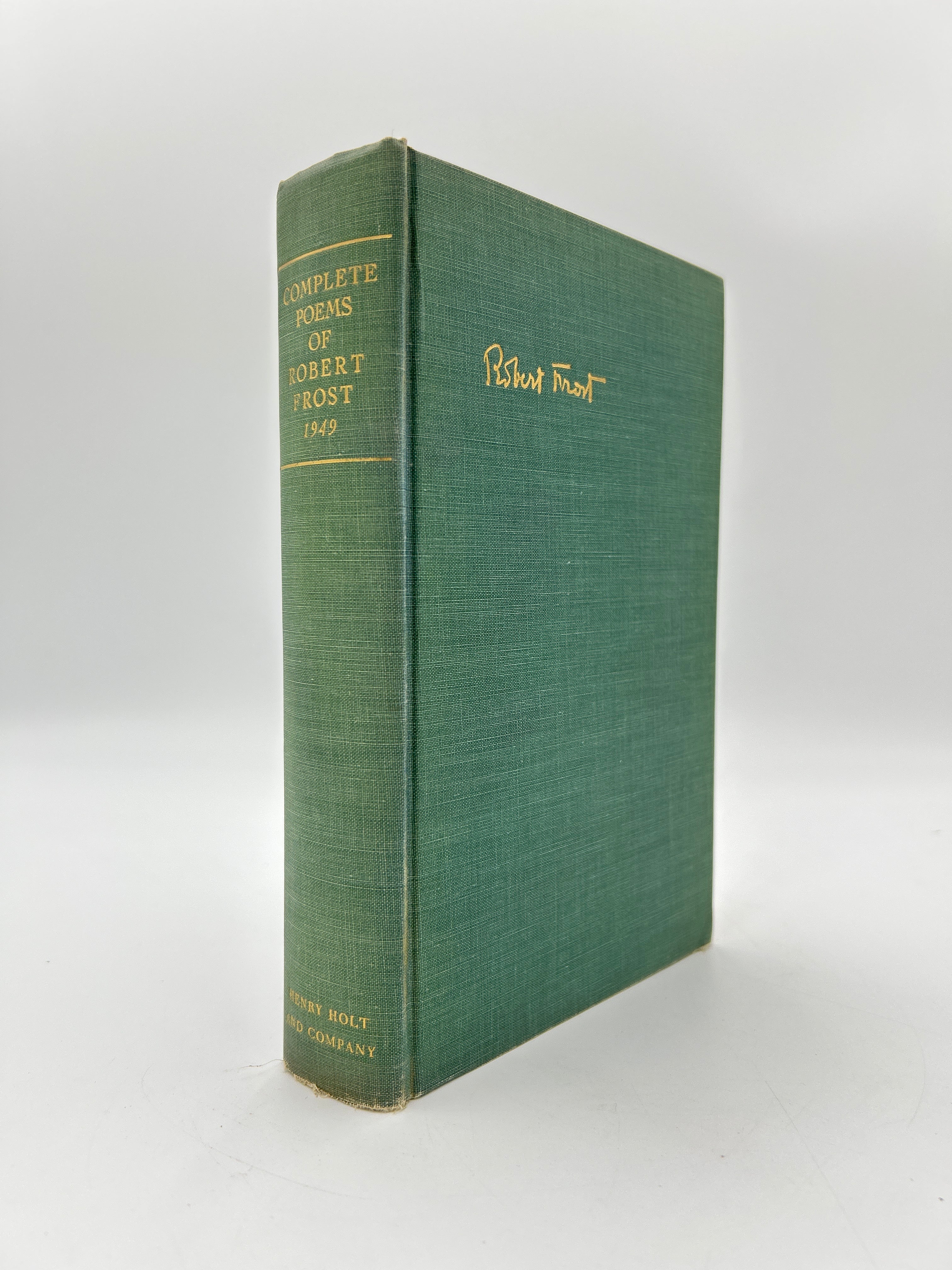 Green fabric binding, gold tooling on front and spine, intact, some soil lower bottom corner, original dust jacket with some wear but otherwise in good condition. PERSONAL POEM HANDWRITTEN BY AUTHOR