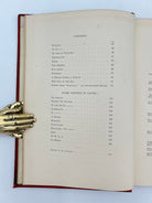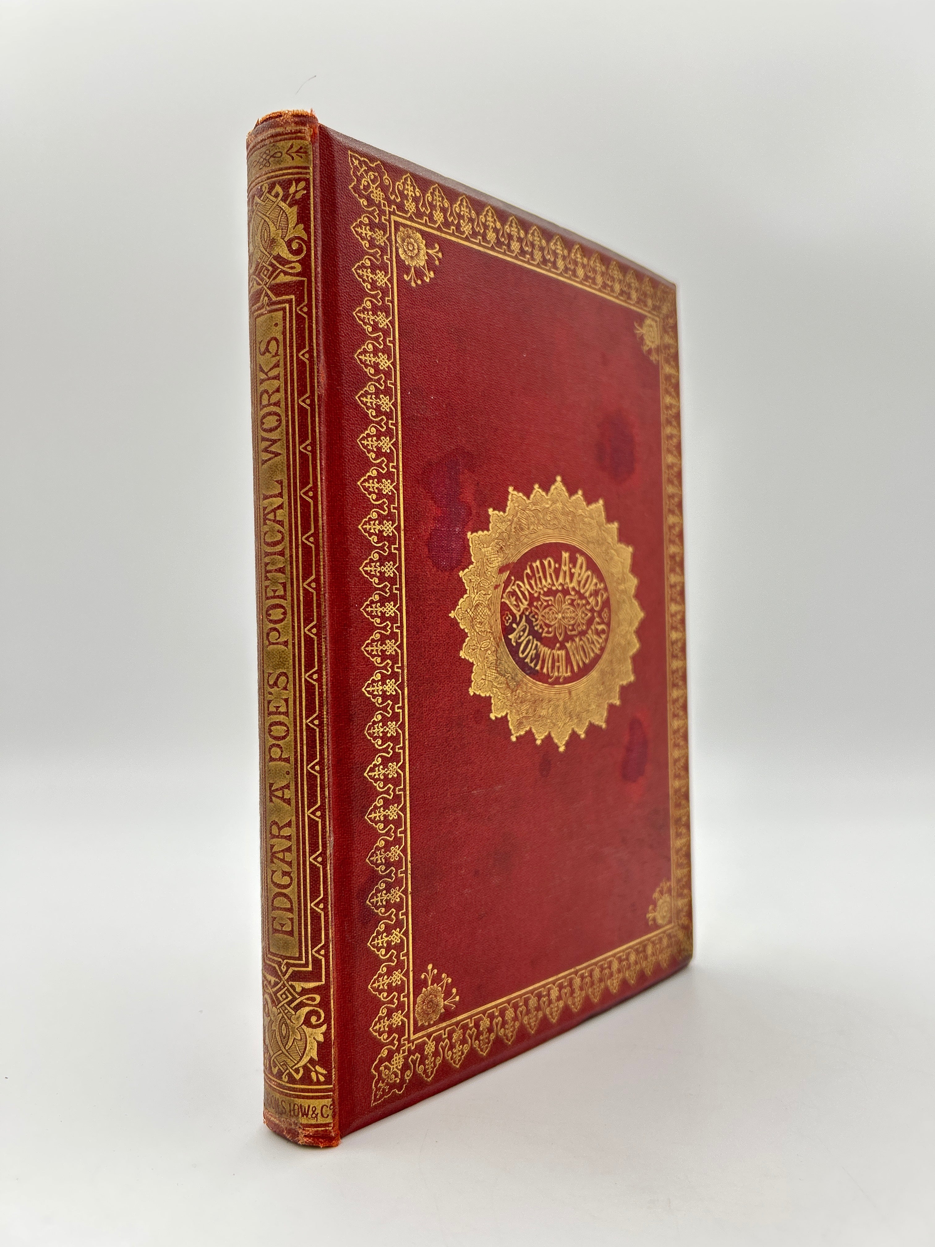 Beautiful red leather with gold embossing front, back and spine, clear plastic dust jacket, three stain spots on front, otherwise very fine condition.