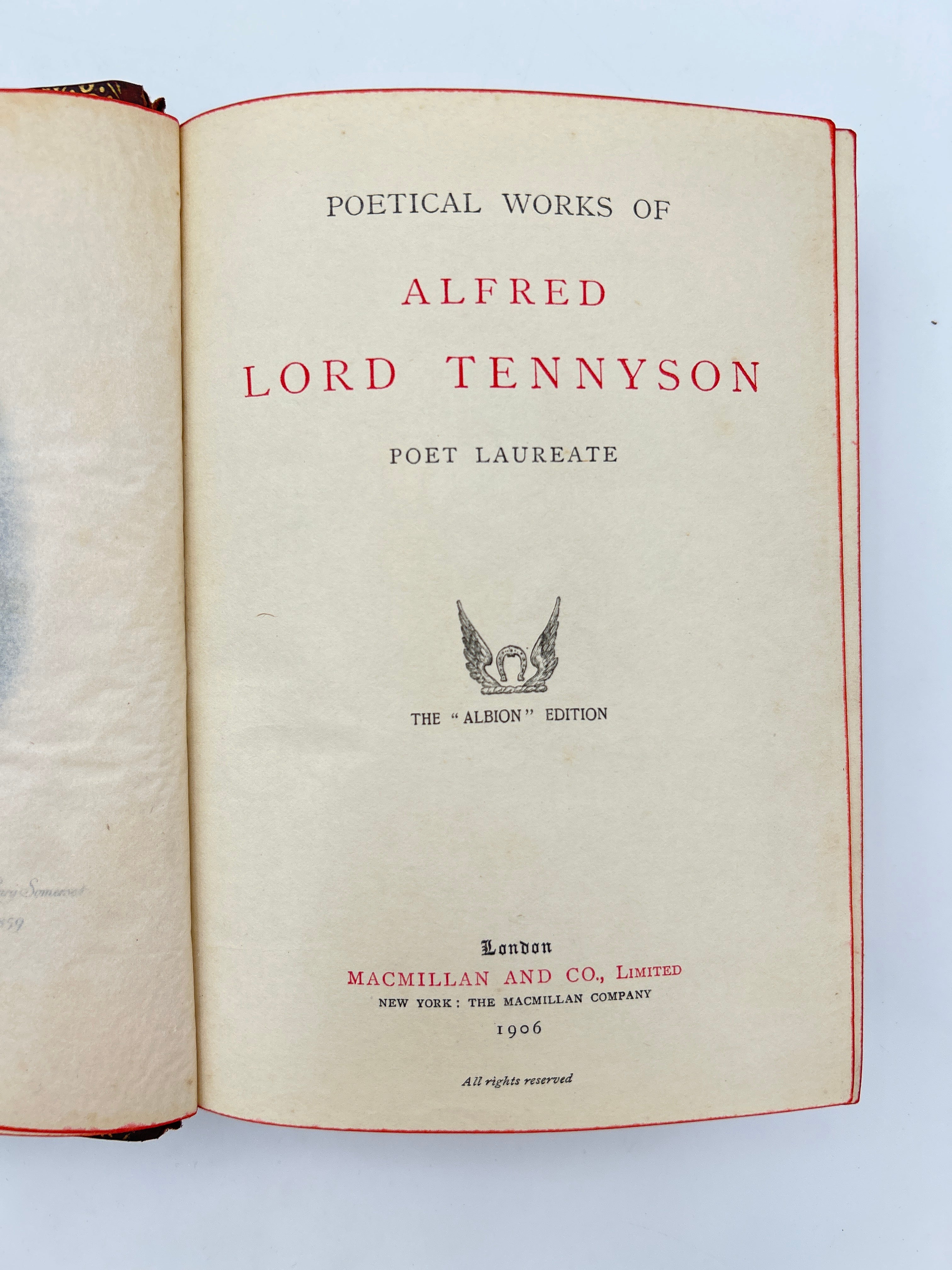 5b 1906 Alfred Lord Tennyson, spine titled "Tennyson's Poetical Works"