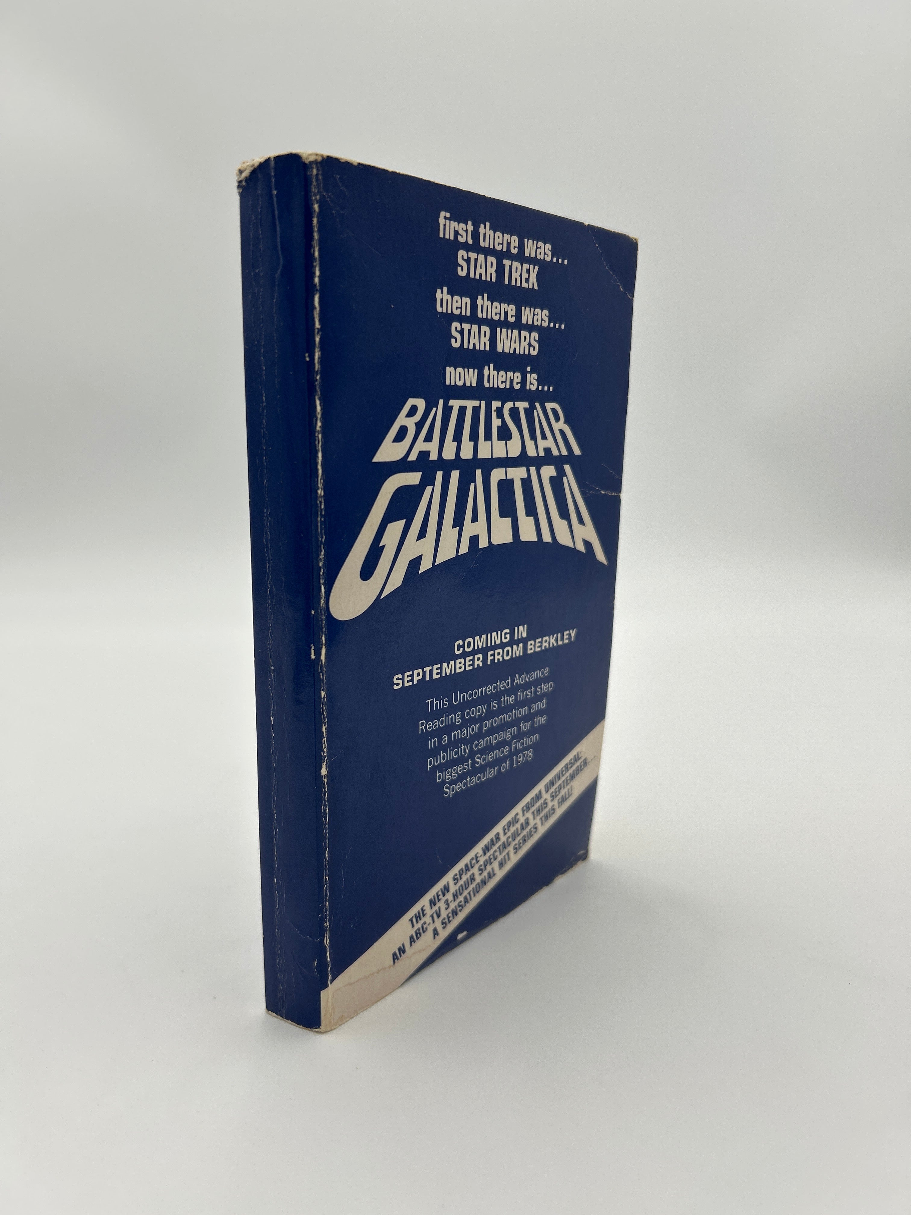Advanced Reading Copy of Battlestar Galactica by Glen A. Larson and Robert Thurston is a novelization of the 1978 television series created by Larson. The book adapts the series' pilot episode into a novel format, providing additional details and context not covered in the show. It follows the journey of the last surviving human colonies as they flee from the Cylon forces and search for the lost planet Earth. Thurston's adaptation retains the show's dramatic tension and space opera elements, offering fans an expanded view of the series' universe and its characters.