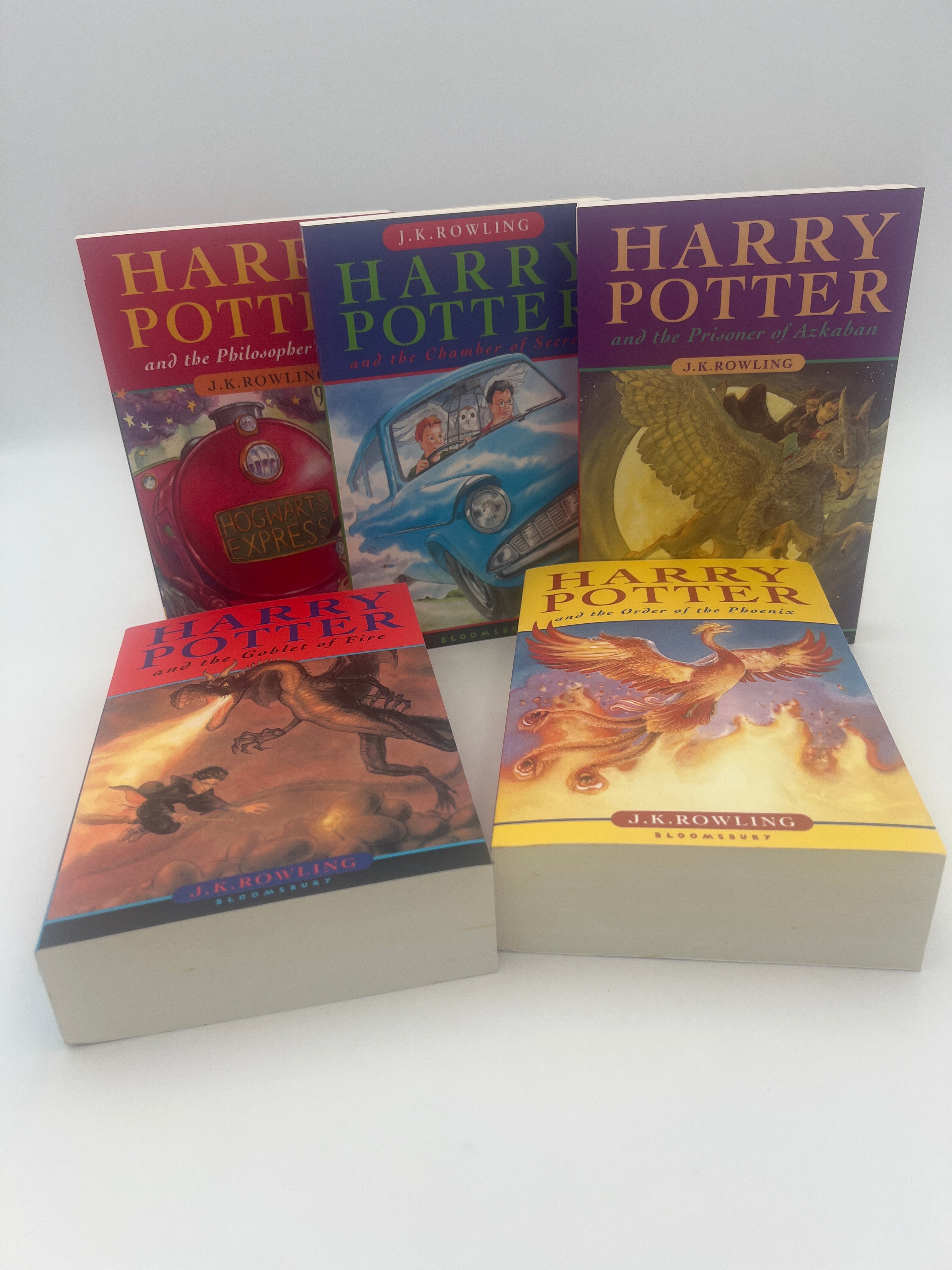 5b, 2003 by J.K. Rowling Last book First Edition Set includes: Harry Potter and the Philosopher's Stone, Harry Potter and the Chamber of Secrets, Harry Potter and the Prisoner of Azkaban, Harry Potter and the Goblet of Fire, Harry Potter and the Order of the Phoenix