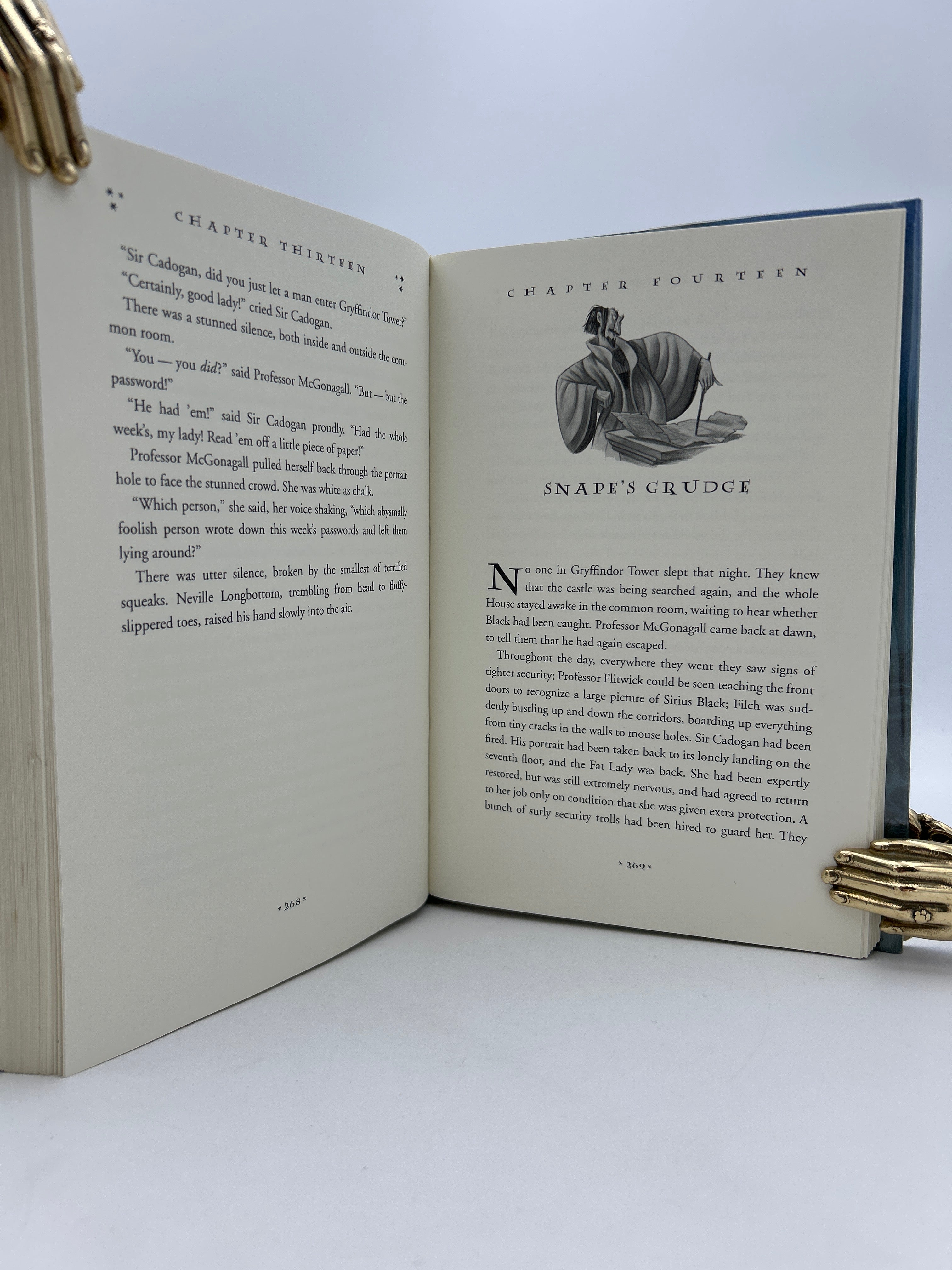 The first U.S. edition of Harry Potter and the Prisoner of Azkaban was published by Scholastic under the Arthur A. Levine Books imprint on September 8, 1999. Designed by Mary GrandPré, the cover art features a dramatic image of Harry and Hermione riding Buckbeak, the hippogriff. This edition followed the success of the first two books, with an initial print run of 500,000 copies—indicative of the growing Harry Potter phenomenon in the United States. It uses Americanized language and spellings which slightly differ from the UK edition and the dust jacket features a slightly more action-focused visual style to appeal to the US market.