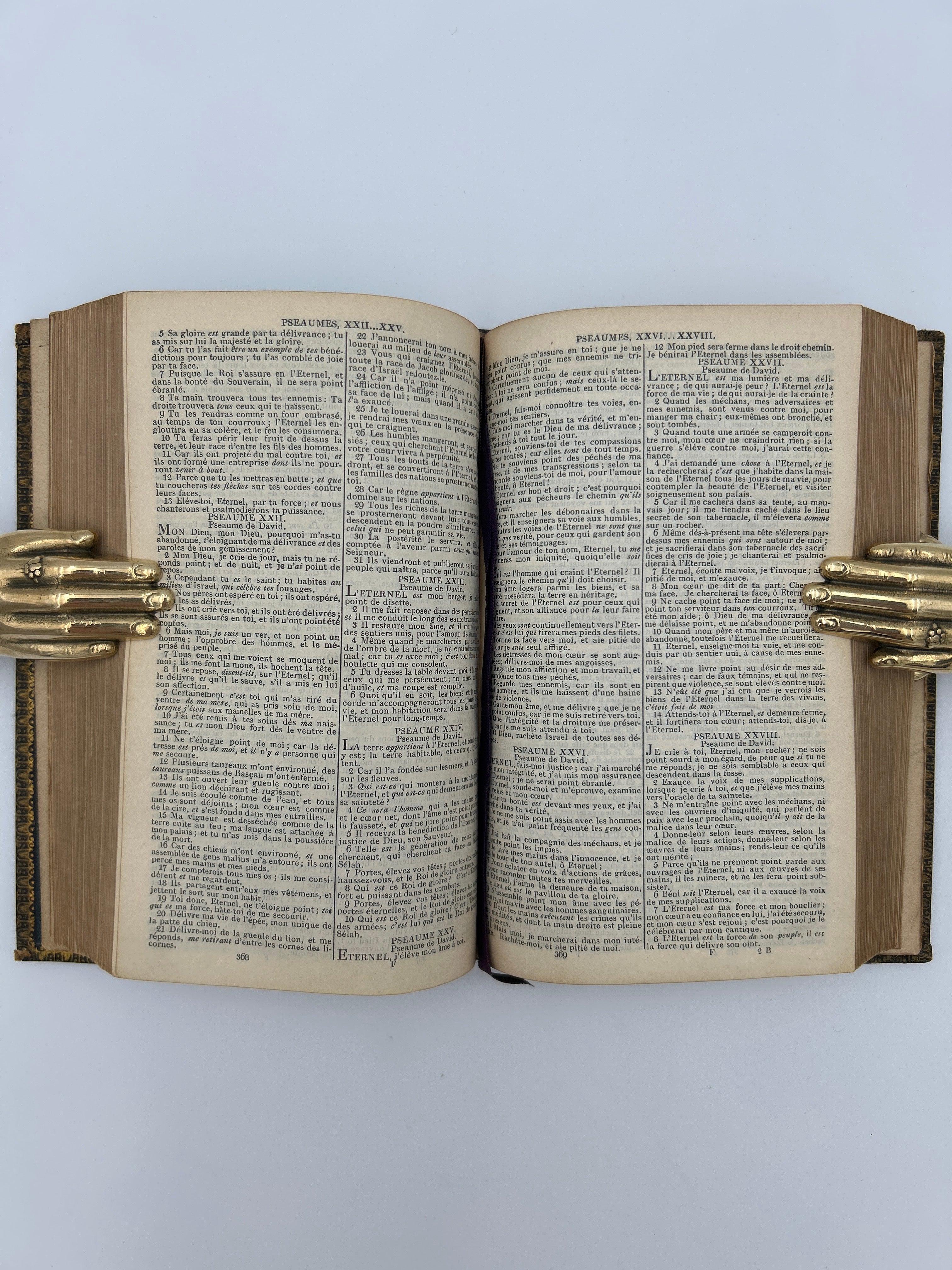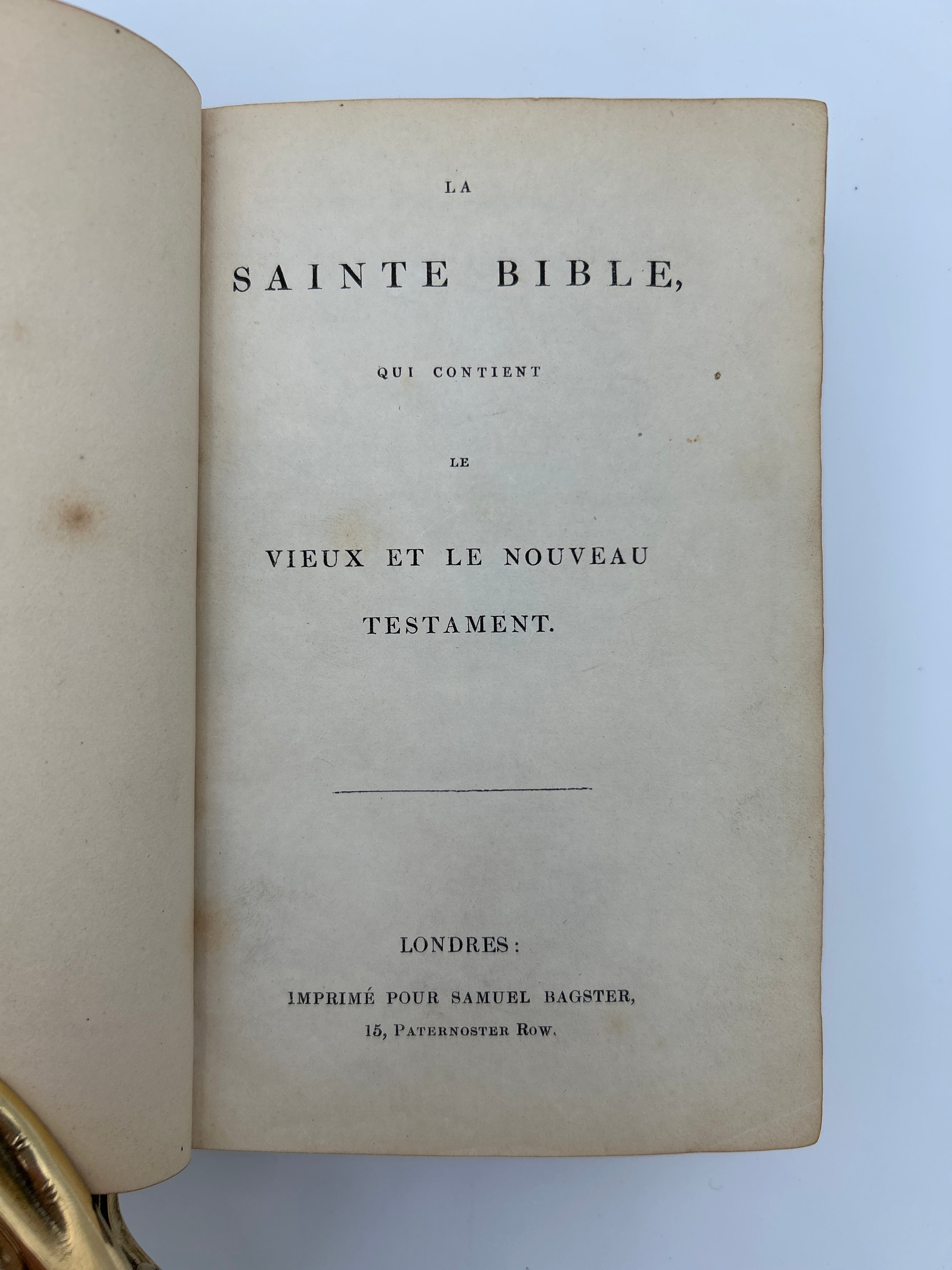 La Sainte Bible (1838) is a French translation of the Bible, often associated with the Protestant tradition. This version was typically based on earlier translations by scholars such as Jean-Frédéric Ostervald, a Swiss pastor who revised traditional Protestant translations in the 18th century to emphasize clarity and moral teaching. The 1838 edition aimed to provide a reliable and accessible version of the scriptures for French-speaking readers, reflecting the growing demand for vernacular Bibles during the 19th century. It was widely used in Protestant communities for study, worship, and personal devotion.