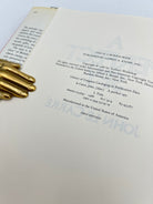 Black cloth hardcover with gold lettering on spine and front of book, original dustcover with red and yellow colors on front cover along with title. deckled edges, fine condition