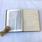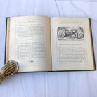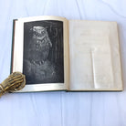 Dark green leather cover, gold illustrations and lettering on front cover and spine, illustrations through out, borders on each page.