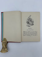 Red cloth boards with gilt illustrations on upper and lower boards and gilt lettering on the spine. Facsimile of the first edition.