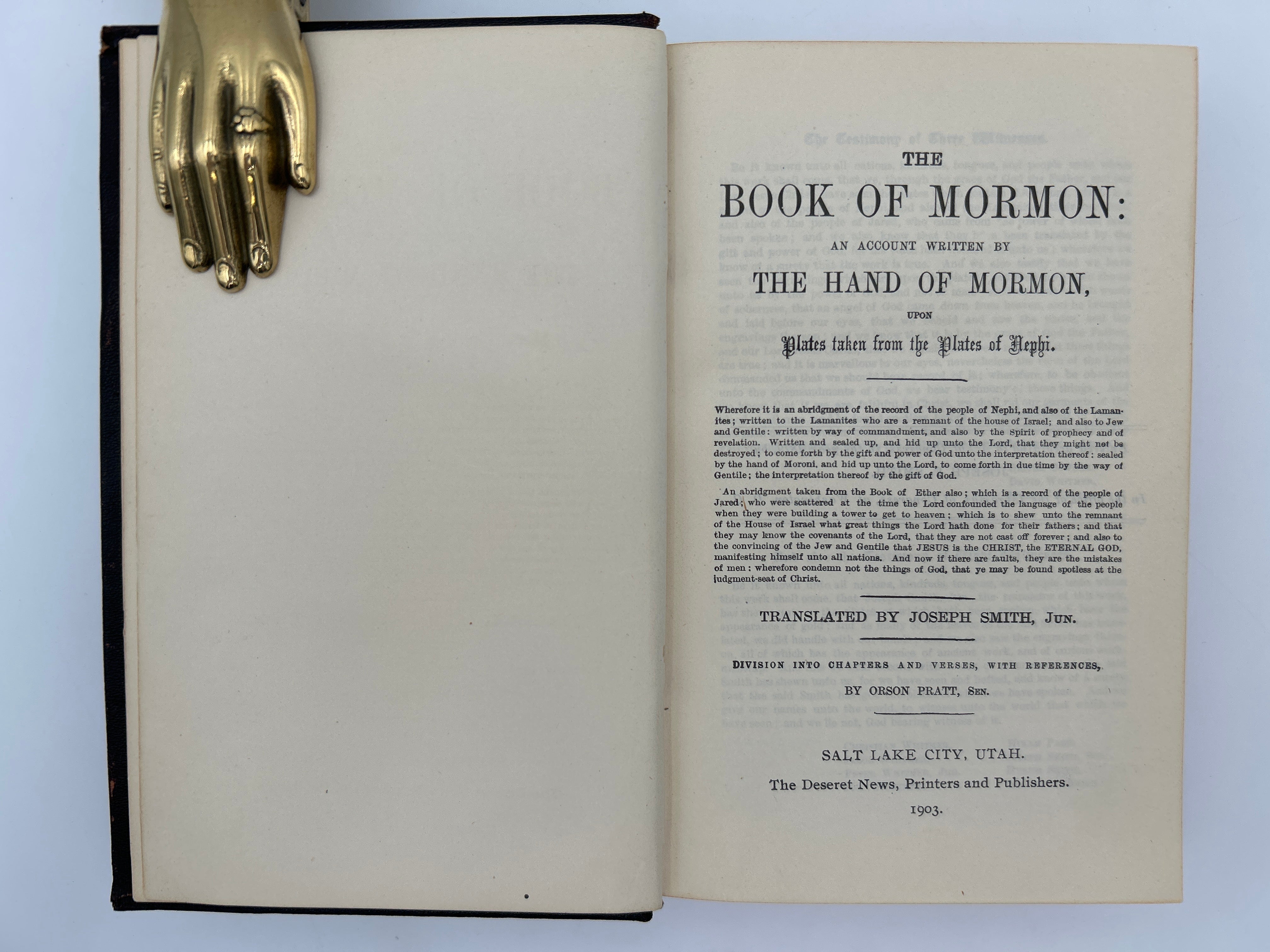Discover the origins of the Church of Jesus Christ of Latter-day Saints with the Book of Mormon 1903. This historical text provides a unique look into the beliefs and teachings of the Mormon faith through its original printed version 1830.