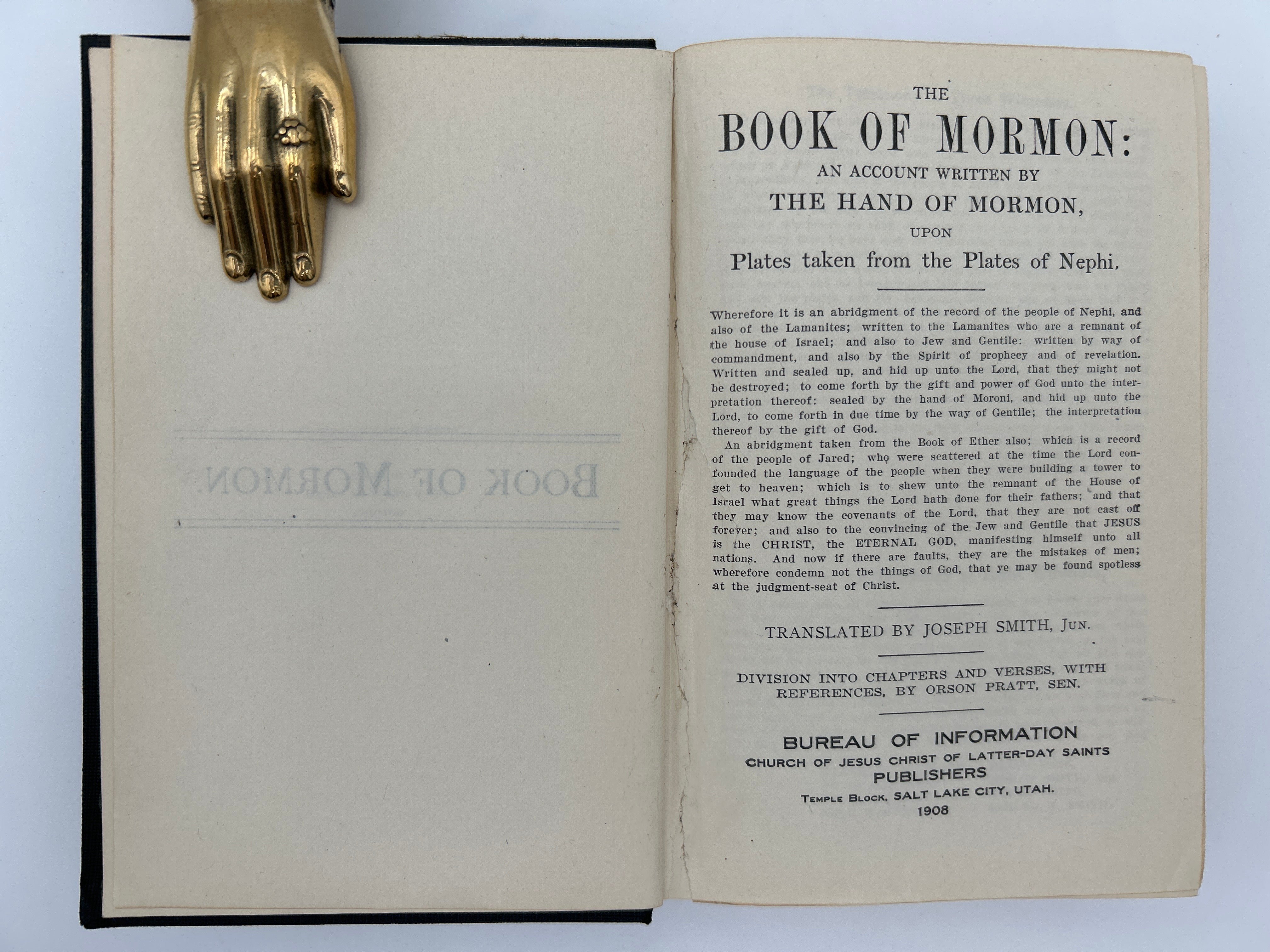 The "Book of Mormon" is a sacred text of the Latter-day Saint movement, first published in 1830 by Joseph Smith Jr. The book is considered scripture by adherents of the movement and tells the story of ancient prophets who lived on the American continent. It purports to be a record of God's dealings with the ancient inhabitants of the Americas, compiled by prophets including Nephi, Mormon, and Moroni. The book addresses themes of faith, redemption, and the gospel of Jesus Christ as taught to these ancient peoples. Its publication marked a significant event in the religious history of the United States, contributing to the formation and growth of the Church of Jesus Christ of Latter-day Saints.