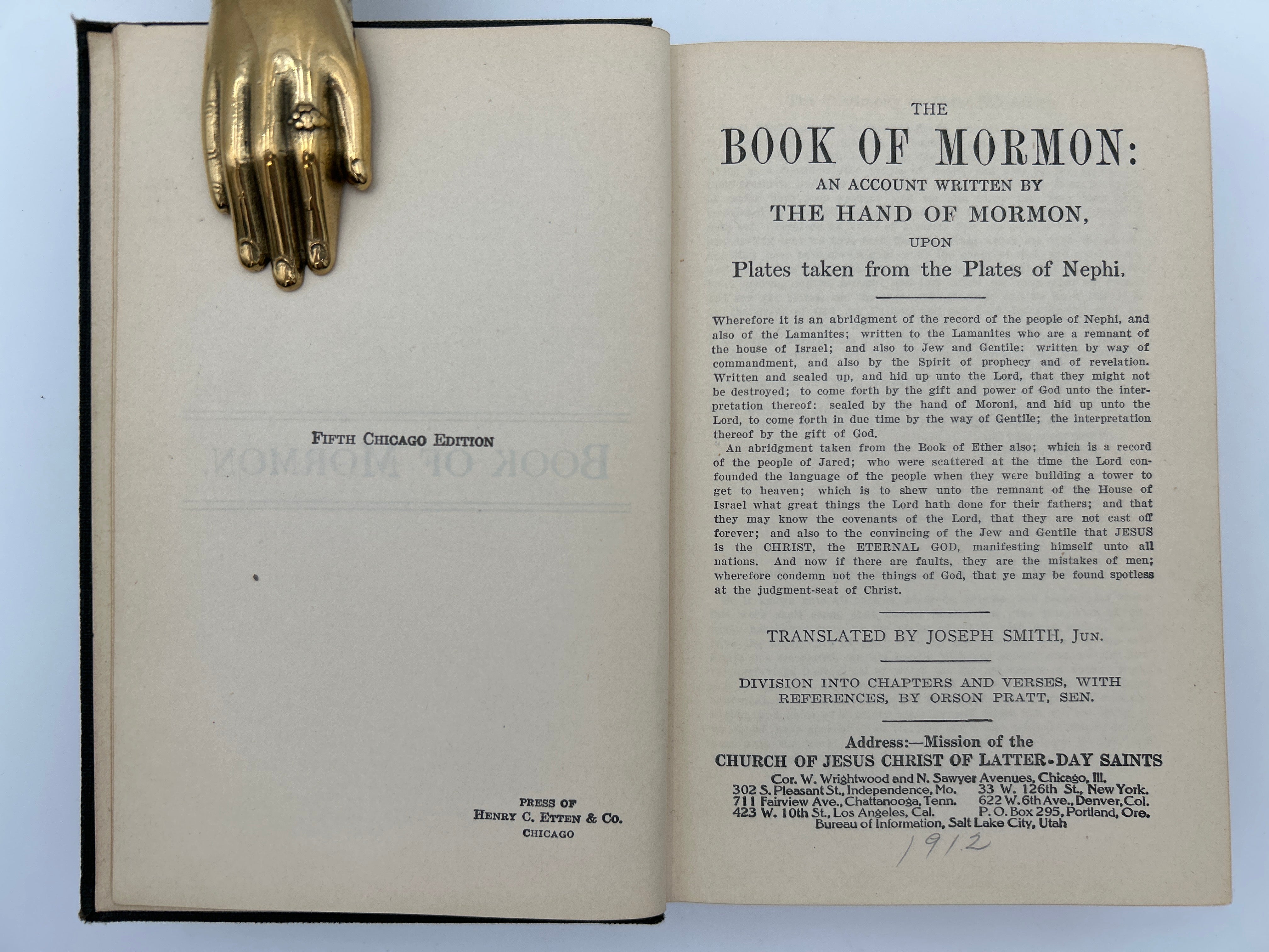 The "Book of Mormon" is a sacred text of the Latter-day Saint movement, first published in 1830 by Joseph Smith Jr. The book is considered scripture by adherents of the movement and tells the story of ancient prophets who lived on the American continent. It purports to be a record of God's dealings with the ancient inhabitants of the Americas, compiled by prophets including Nephi, Mormon, and Moroni. The book addresses themes of faith, redemption, and the gospel of Jesus Christ as taught to these ancient peoples. Its publication marked a significant event in the religious history of the United States, contributing to the formation and growth of the Church of Jesus Christ of Latter-day Saints.