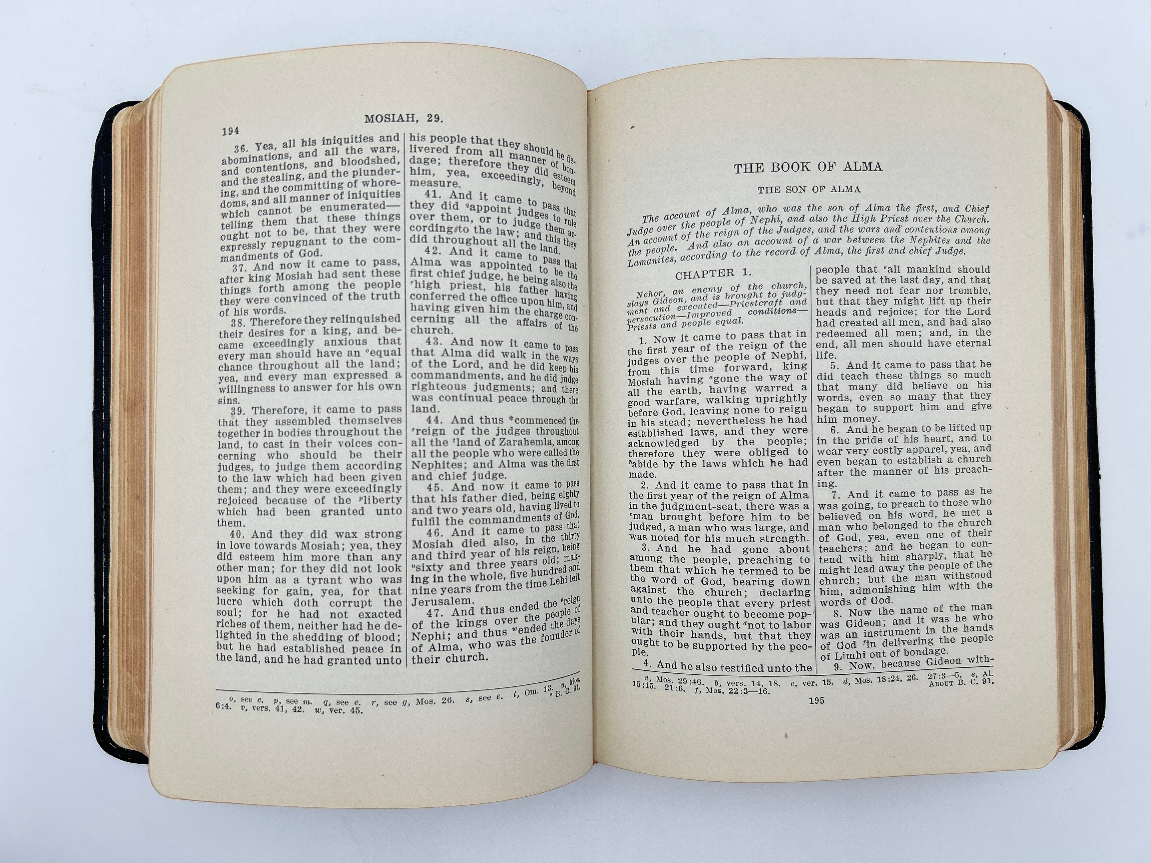 The 1921 printing of the Book of Mormon was a significant milestone in the history of the text, as it marked the first major revision since its original publication in 1830. This edition was produced under the direction of the Church of Jesus Christ of Latter-day Saints and included changes to clarify language, improve grammar, and standardize the text. One of the most notable aspects of the 1921 edition was the removal of the "lectures on faith," a series of doctrinal essays that had been included in earlier editions but were no longer considered central to the church’s teachings. The revision aimed to make the Book of Mormon more accessible and aligned with the evolving theological understanding within the LDS Church, reflecting a more polished and modernized version of the text. The 1921 printing helped solidify the Book of Mormon as the central scripture for Latter-day Saints, ensuring its clarity and consistency in doctrinal teaching and broadening its accessibility to members worldwide.