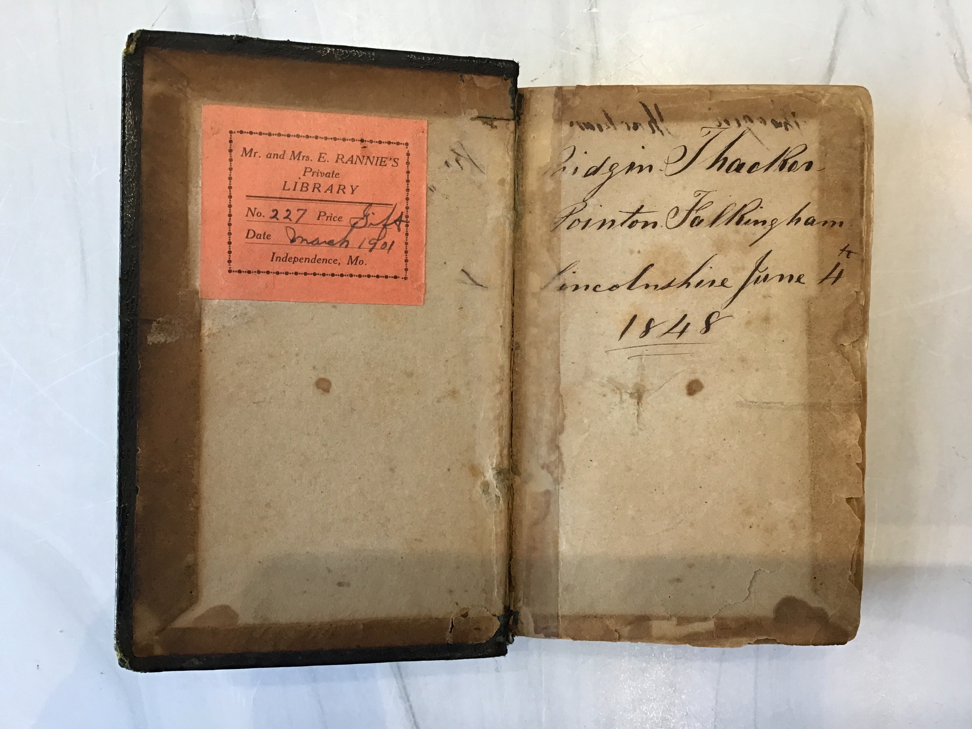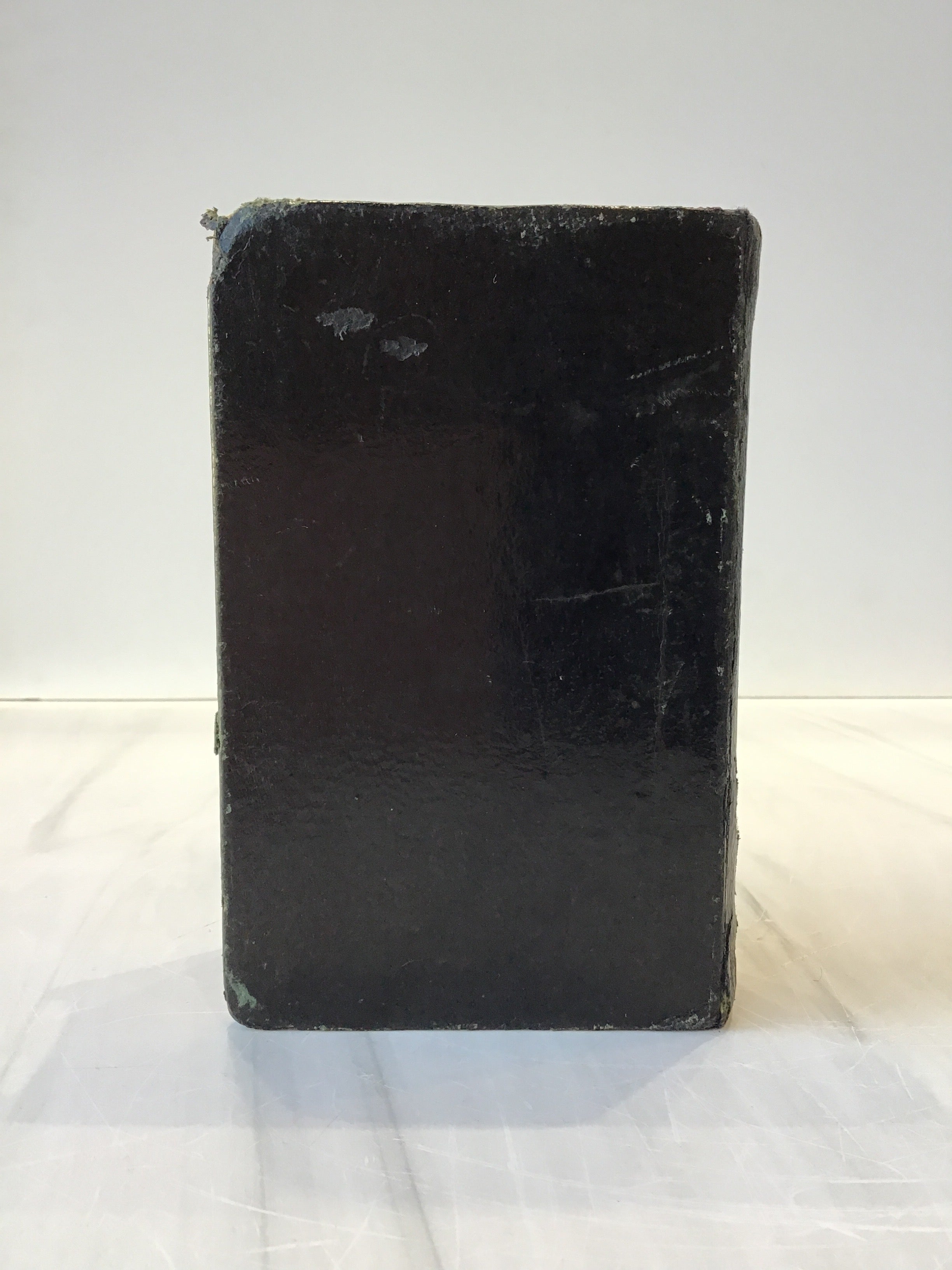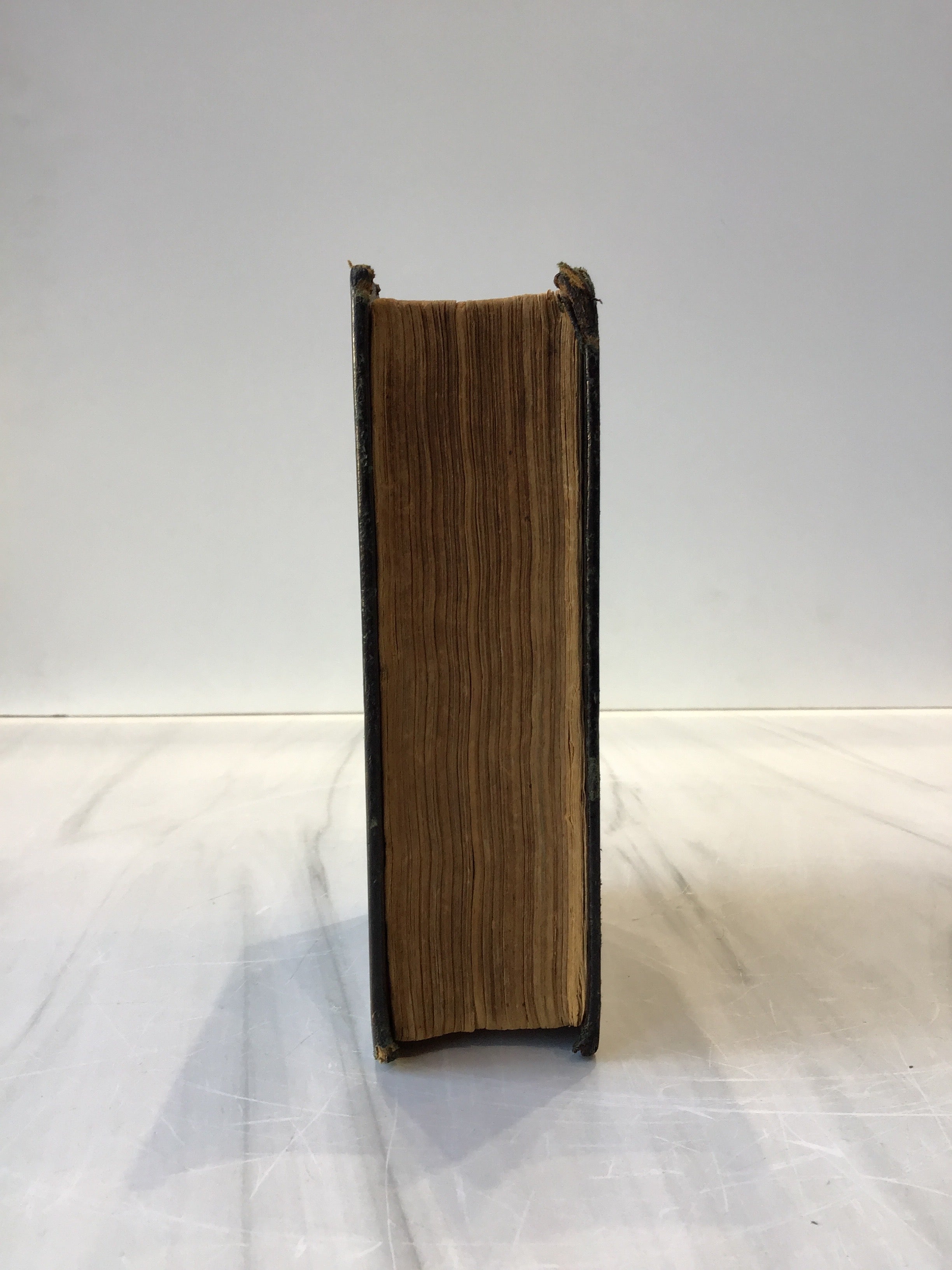 Original black calf leather binding. Vertical creases in leather spine from wear. Gilt lettering on spine. Chipping to all edges of the first three pages. Chipping to the four corners of the boards with most significant damage to the upper left corner of the back board. Leather has deteriorated here about a half inch in either direction. Two small cuts in the leather on the back board as well one about two inches in length on the lower section of the spine and minimal scuffing on all sides. Ownership inscription in ink on the first page and salmon colored book plate on the interior of the front board. Quite clean on the interior with very minimal foxing—as compared to most other copies. Shadow staining on two interior pages, 306 and 307 where a card or paper must have been placed over a long period of time. Wonderful condition for the age of the book.
