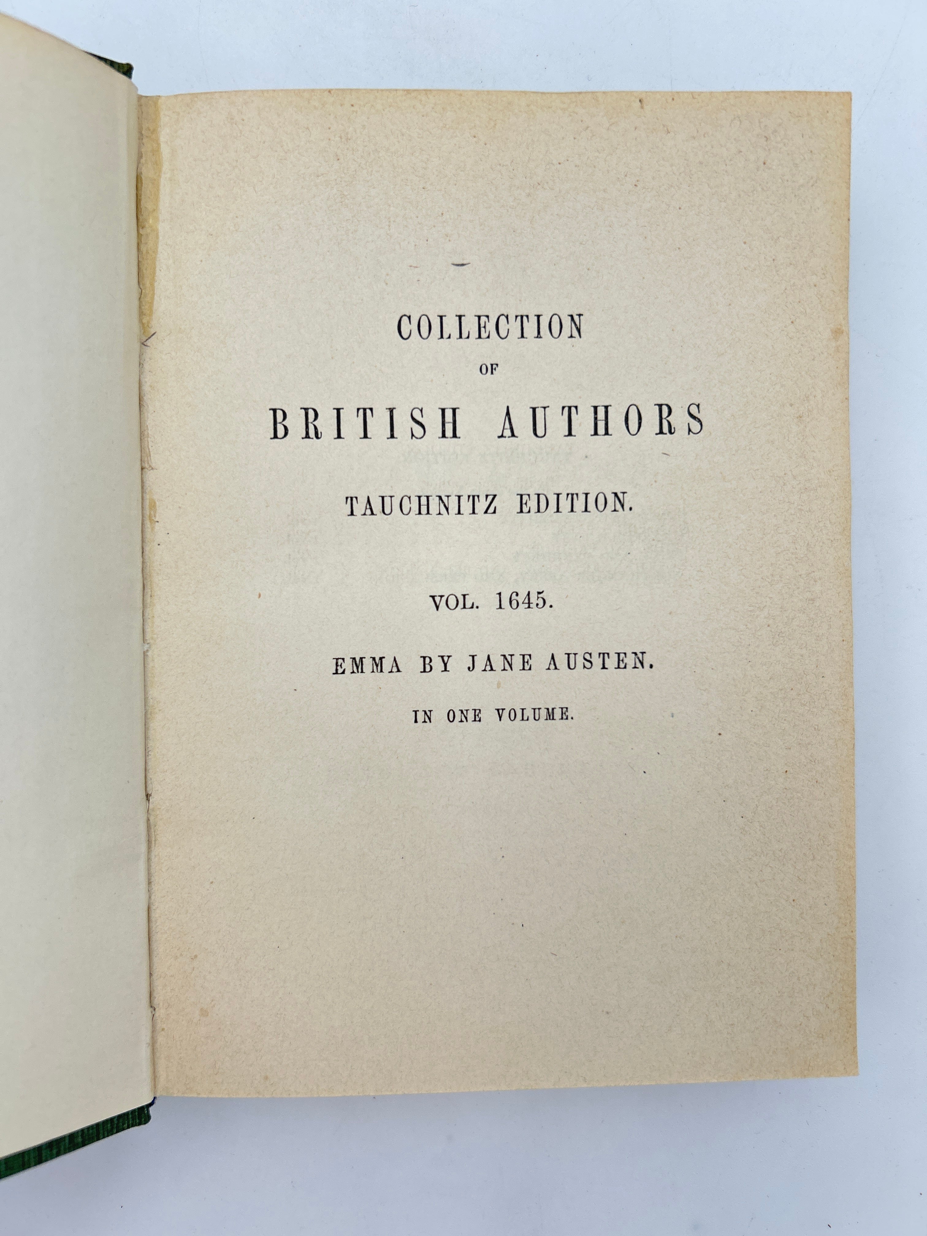 Pocket edition, green cloth binding with gold embossing on cover, excellent condition with slight damage to spine.