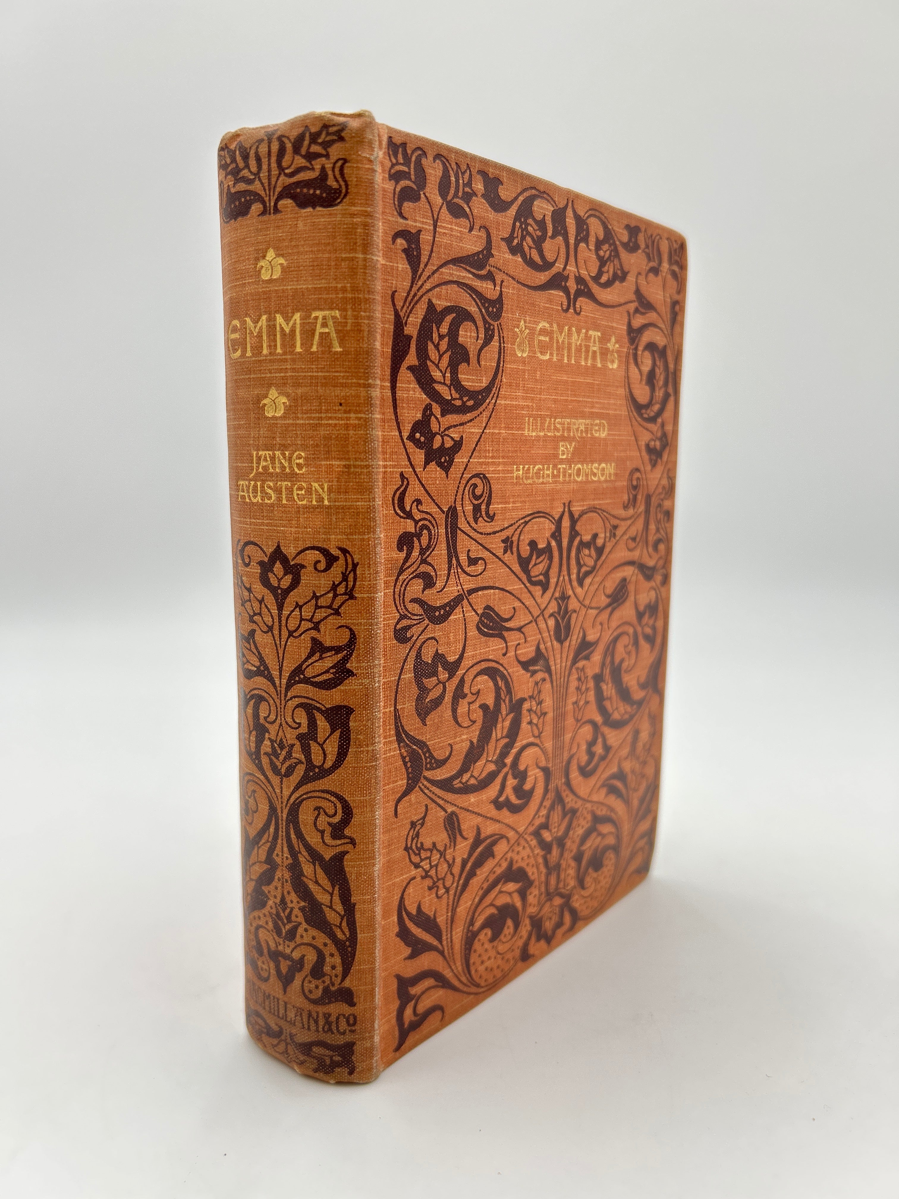 Salmon cloth hardcover with burgundy filigree on front and spine