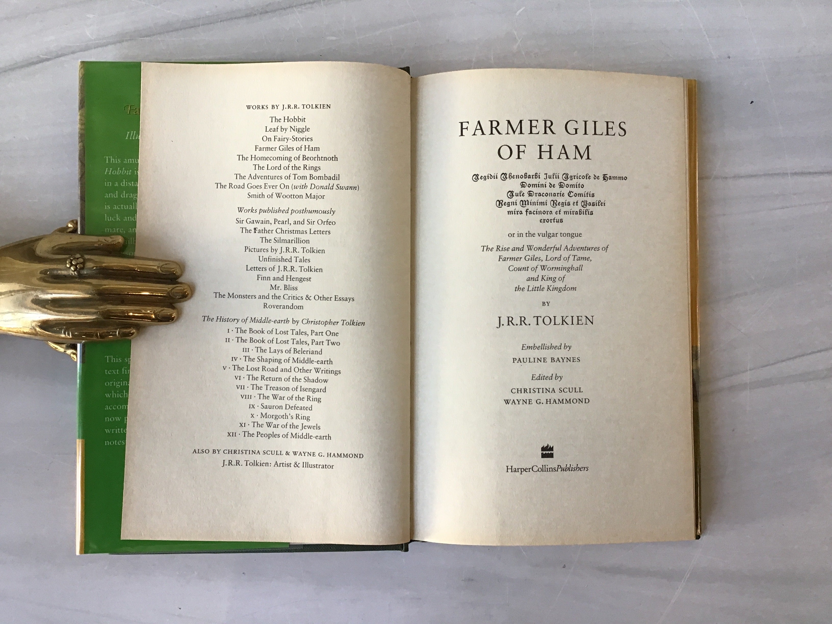 Farmer Giles of Ham is a comic medieval tale by J.R.R. Tolkien, first published in 1949. It follows the adventures of an unlikely hero, Farmer Giles, who lives a quiet life in the village of Ham until a giant accidentally stumbles into his fields. Giles becomes a local hero after scaring the giant away, and soon he is called upon to face a dragon named Chrysophylax. Through wit and luck, Giles outsmarts the dragon, earning both treasure and fame. The story is filled with humor, parodying traditional heroic tales while reflecting Tolkien's love of language and folklore.