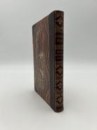 Brown 3/4 leather with marble front, burgundy spine with gold embossing and lettering, intact, three edge marbling, good condition.