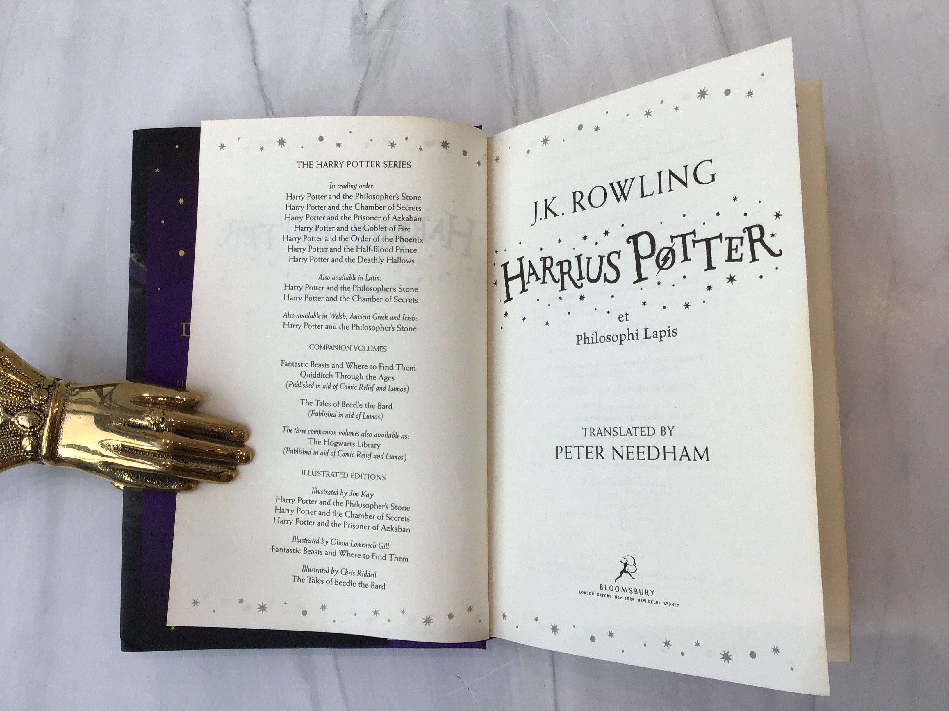 Later printing of Harry Potter & The Philosopher's Stone in Latin on purple cloth board binding with illustrated dust jacket in excellent condition. A very fine copy.
