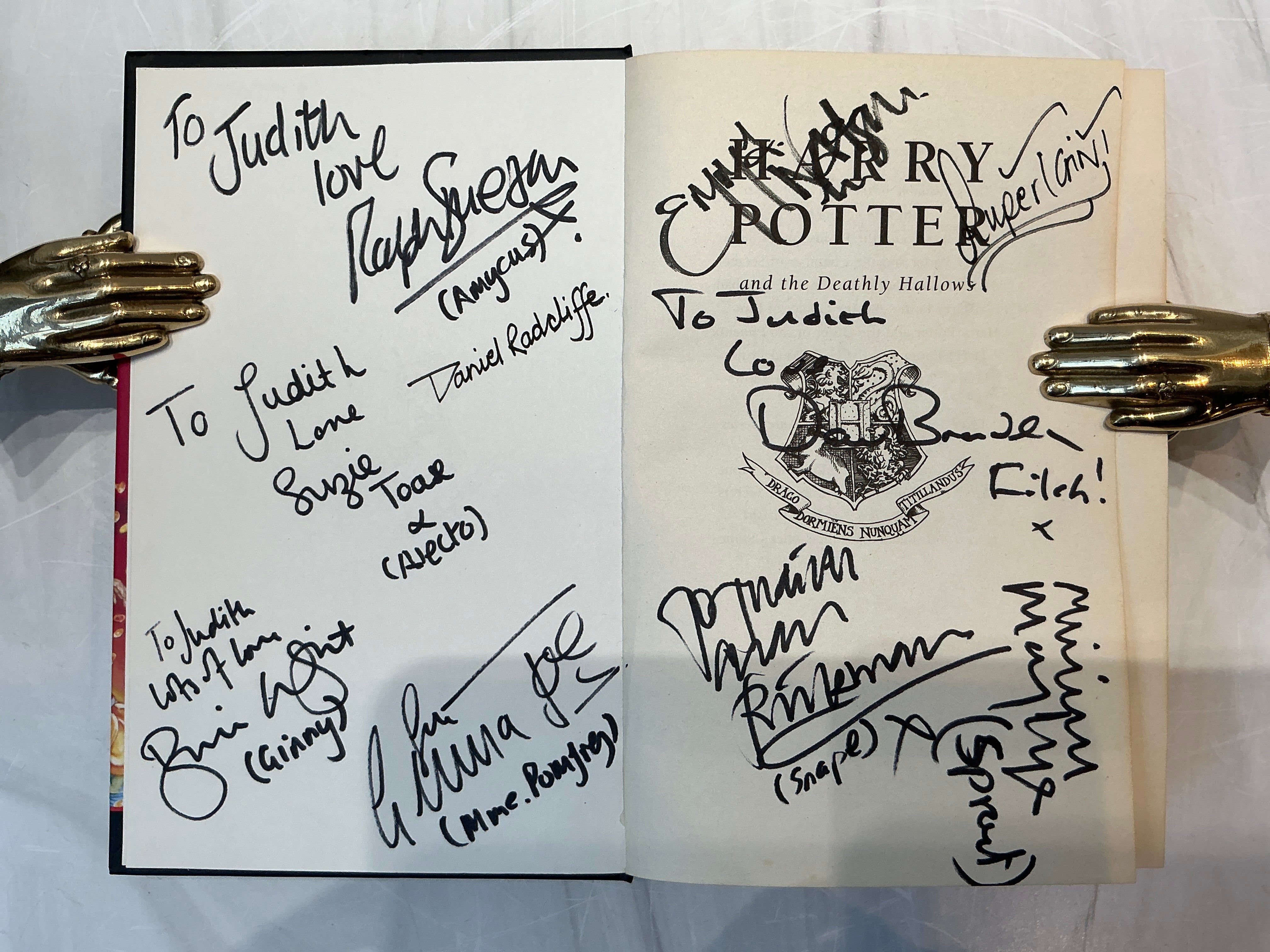 Hardback with dust jacket, SIGNED by cast members, pristine condition.