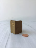 The 1899 Miniature Bible is a remarkable relic, encapsulating the essence of a bygone era within its diminutive form. Produced during a time when miniature books were crafted as symbols of refinement and devotion, this pocket-sized Bible embodies both practicality and reverence. Its meticulous craftsmanship, often adorned with intricate bindings and delicate illustrations, reflects the artisanal skill of its creators. Despite its small size, the 1899 Miniature Bible contains the profound wisdom and timeless narratives of biblical scripture, serving as a cherished keepsake for those who possess it, and a testament to the enduring power of faith and literature throughout history.