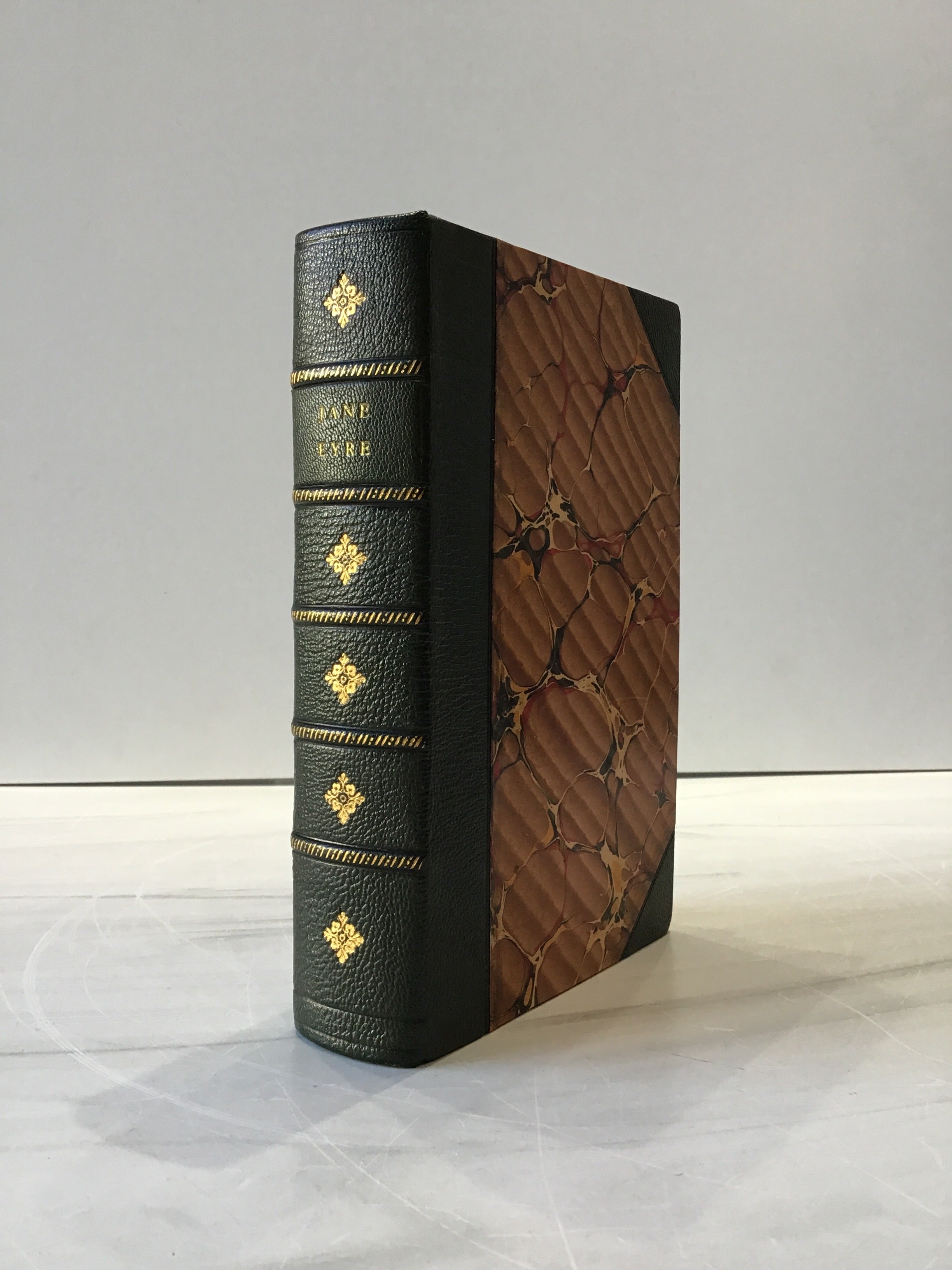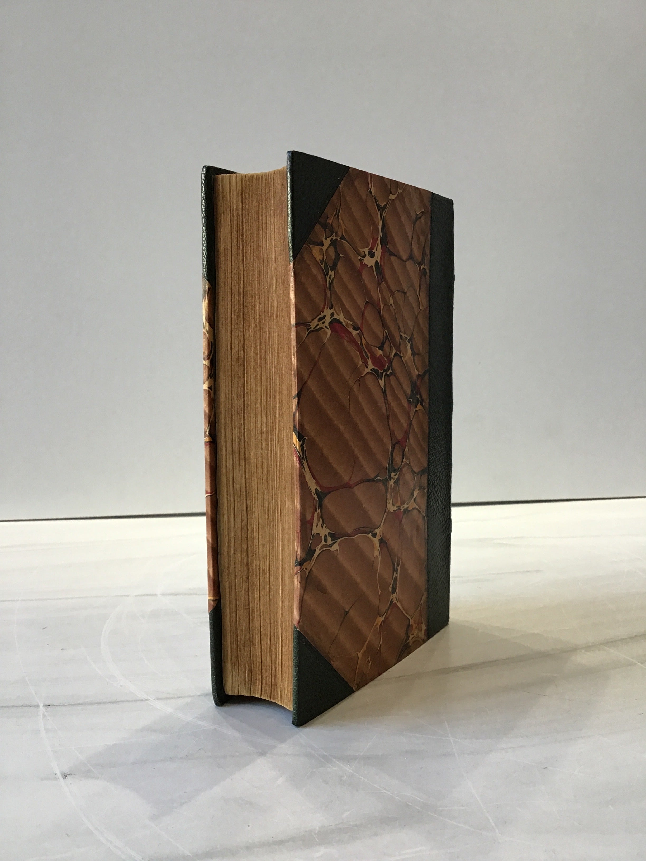 Beautiful pocket edition 3/4 marble and green leather, five raised bands, gold toolin gon spine, beautiful condition.