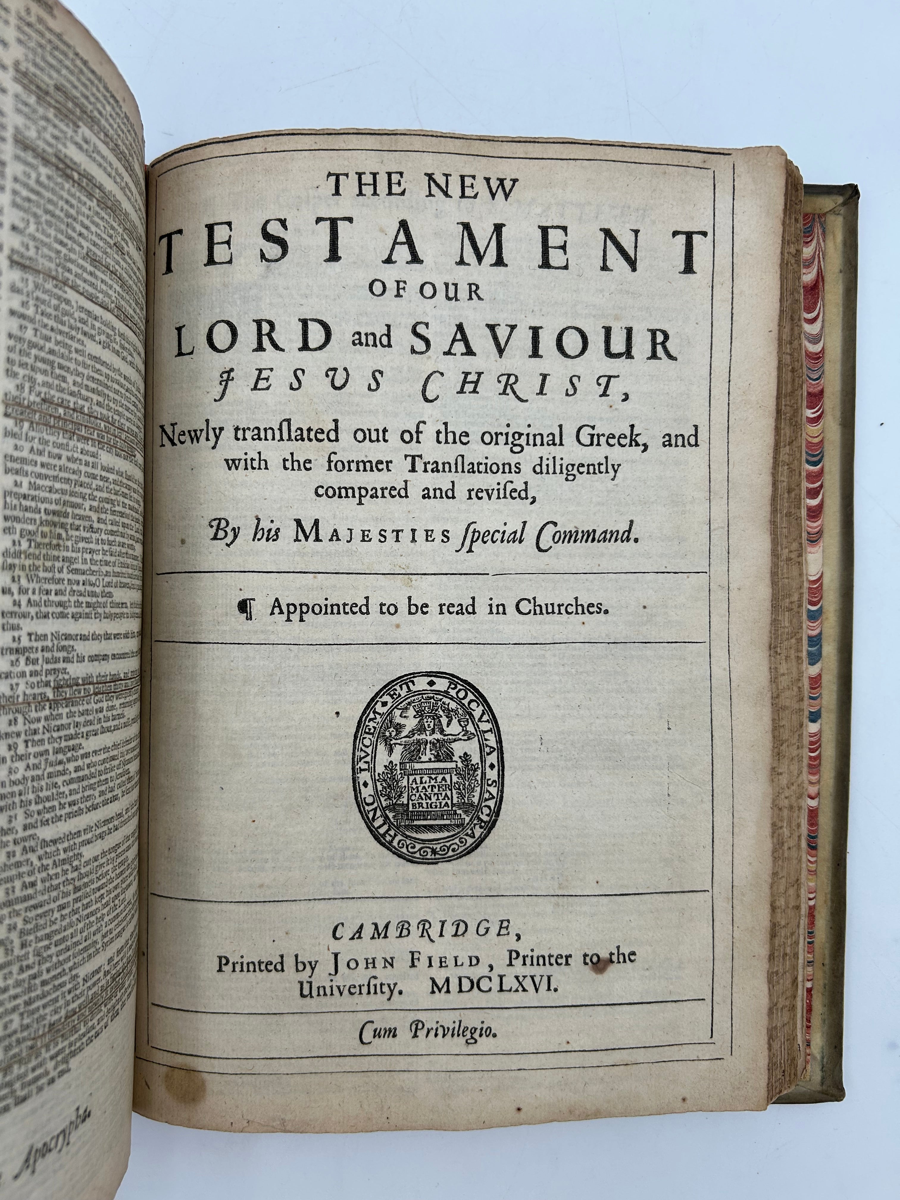 6B Holy Bible bound with The Whole Book of Psalms. Cambridge: John Field, 1668.