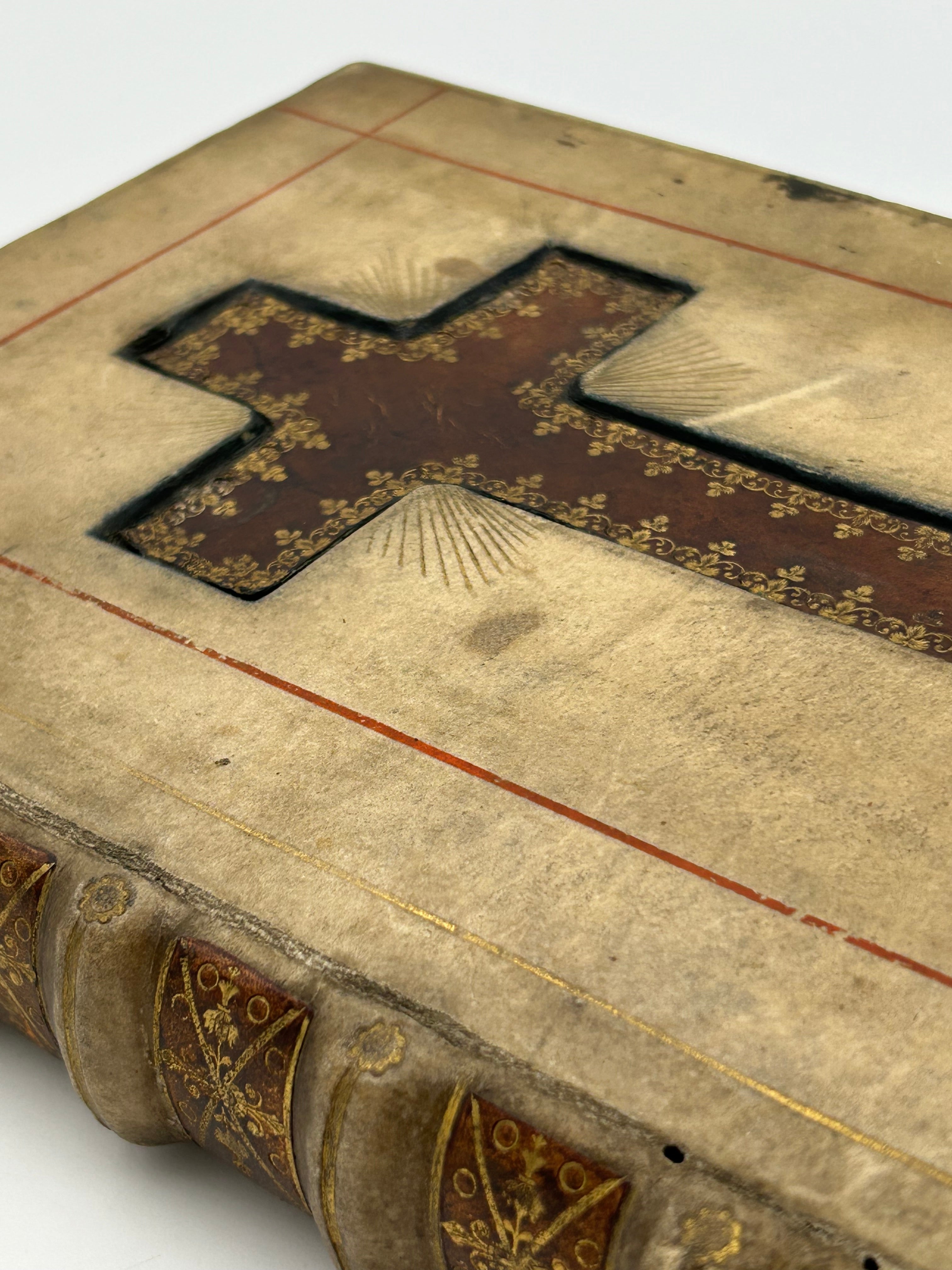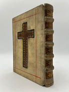 Attractively bound in nineteenth century vellum, red morocco inset cross tooled in gilt.Spine with five raised bands, marbled endpapers, gauffred edges.Some slight rubbing and marking and three tiny worm tracks to upper joints. Internally very good but with some browning.