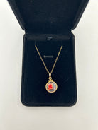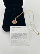 Housed in a silver or gold clasp locket. It is recommended not to wear the necklace in water as there is potential that moisture could make its way through the metal seal around the glass.