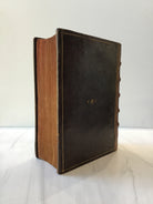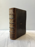 18th Century binding, fully intact, brown leather with five raised bands on spine, gold tooling label "Biblia Sacra", gold tooling on front, good condition